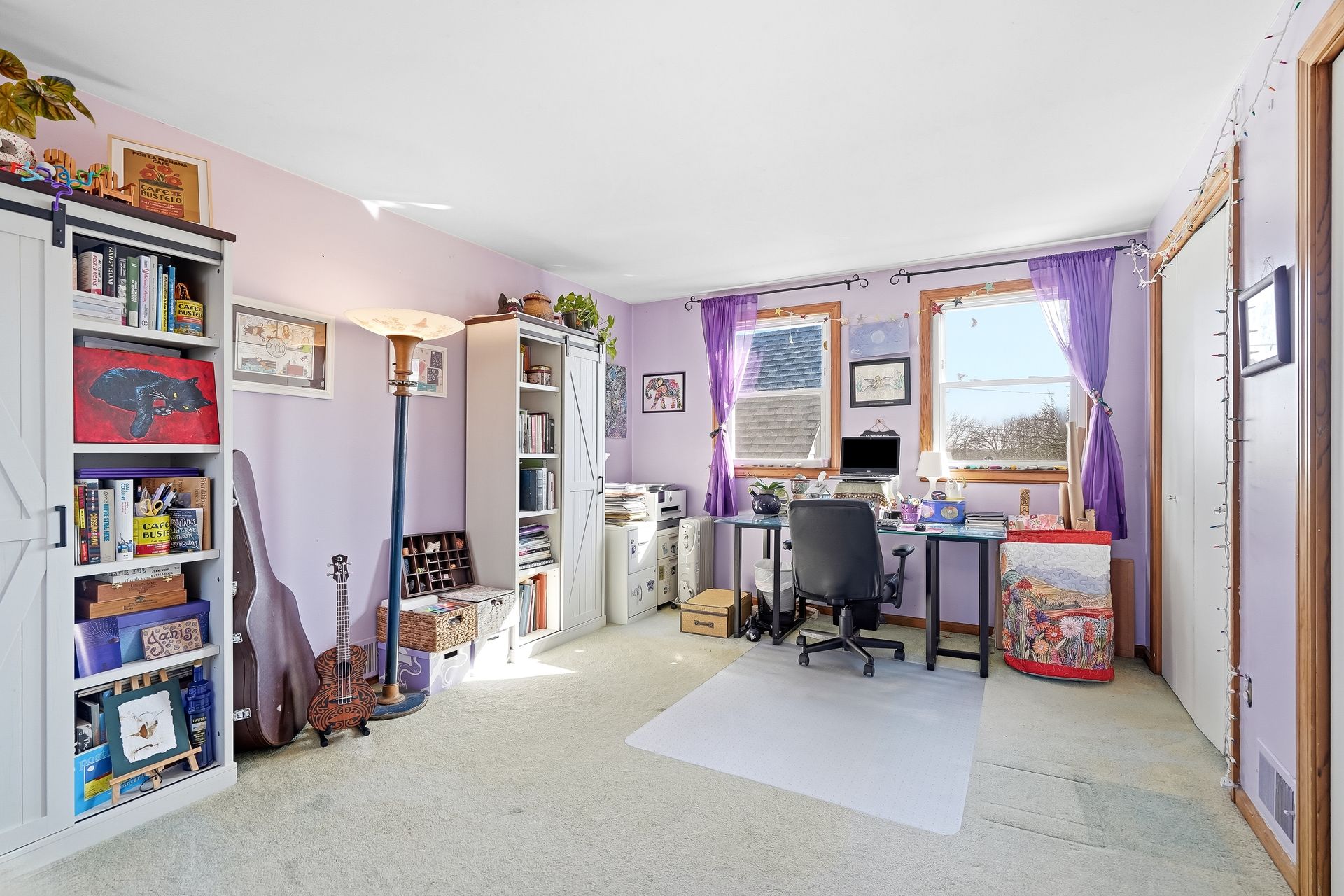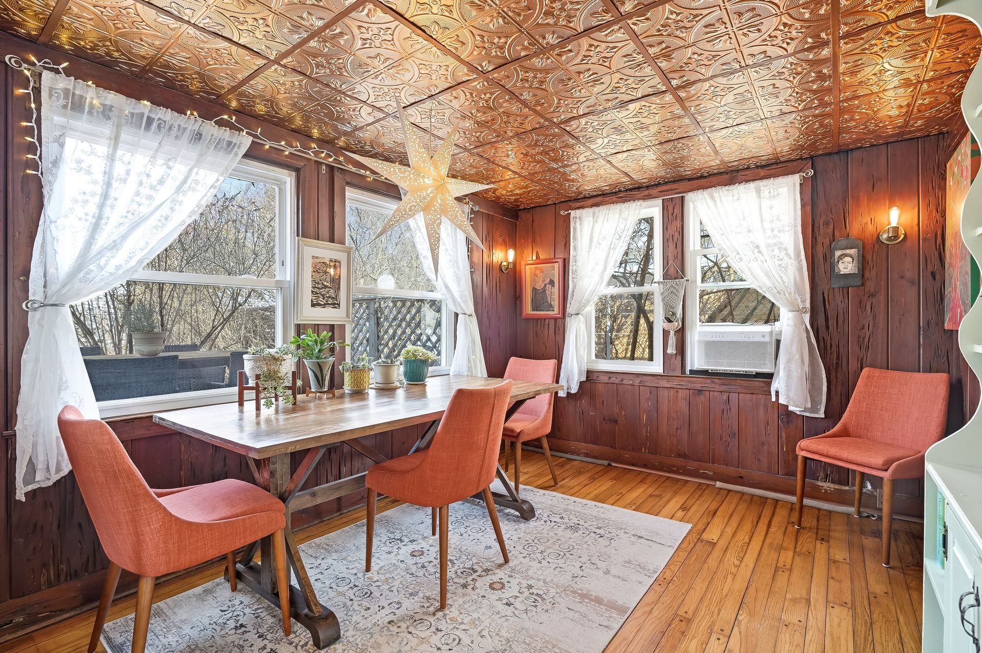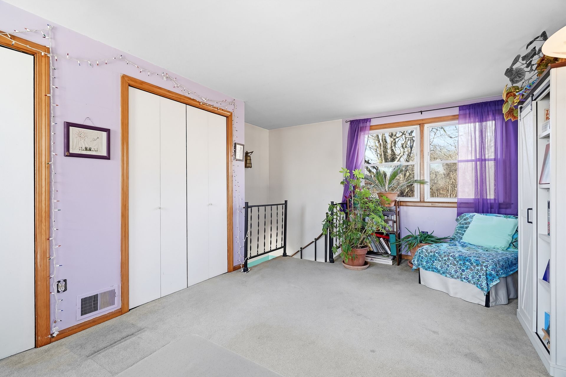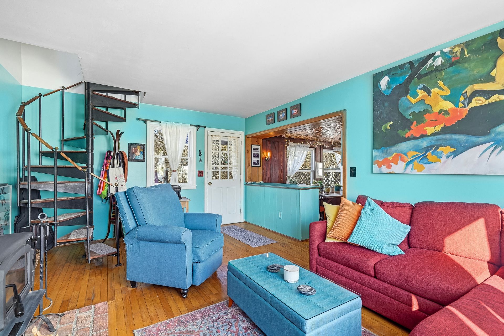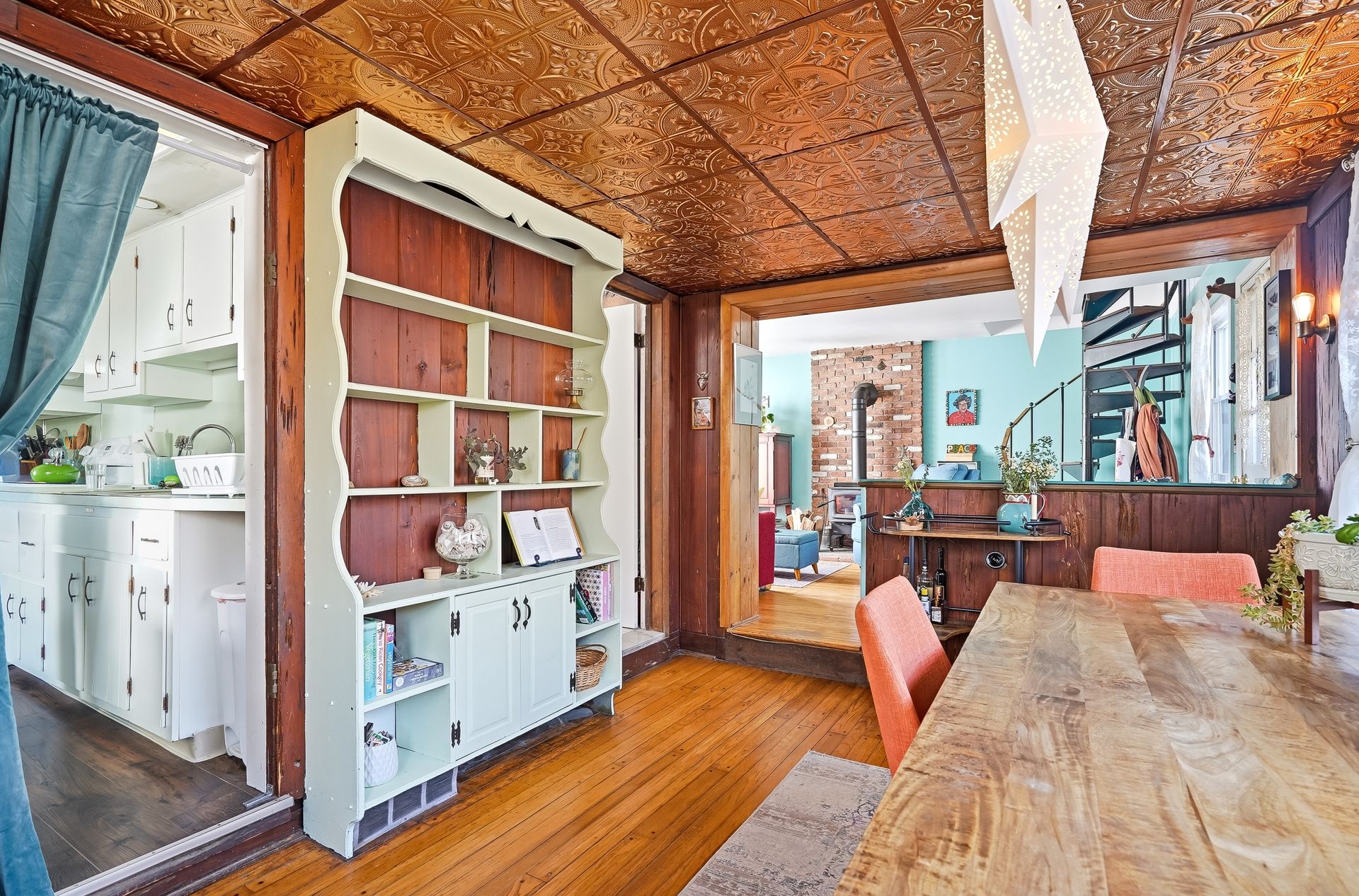 This one-of-a-kind property offers character and flexibility. Both bedrooms are located on the second floor, each accessed separately — one via a staircase from the living room and the other via a spiral staircase from the den. There is no connecting hallway between the bedrooms, creating a unique setup that may be ideal for creative space use, guest quarters, home office separation, or flexible living arrangements.