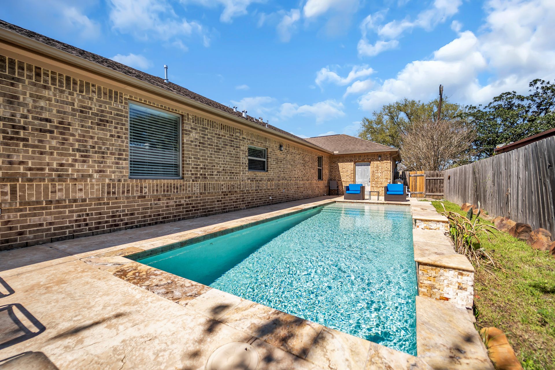 The exterior is equally impressive. Enjoy a covered patio, outdoor kitchen, private backyard, and a stunning in‑ground pool —perfect for warm Texas summers. Also included is a three‑car attached garage providing abundant parking and storage.