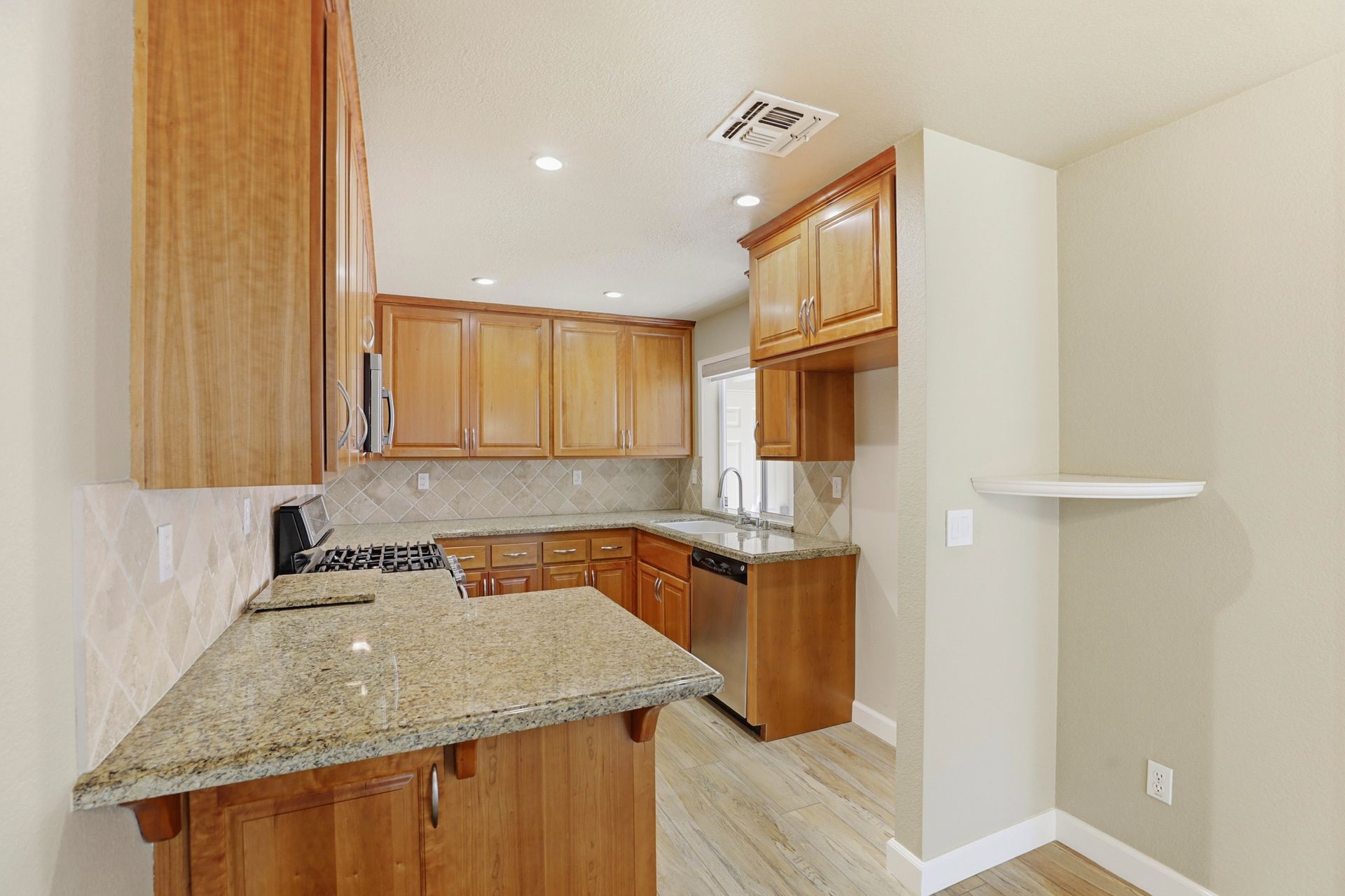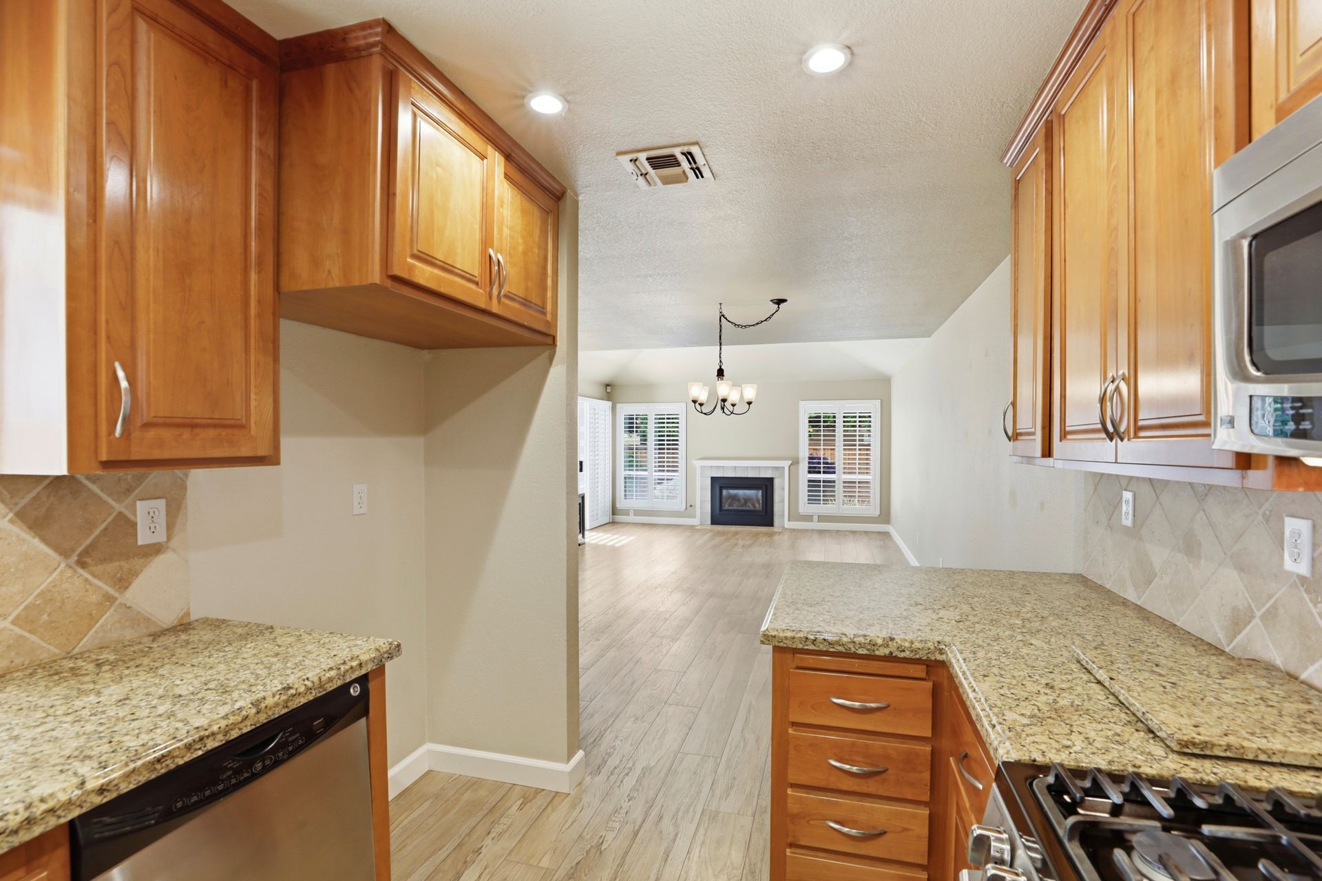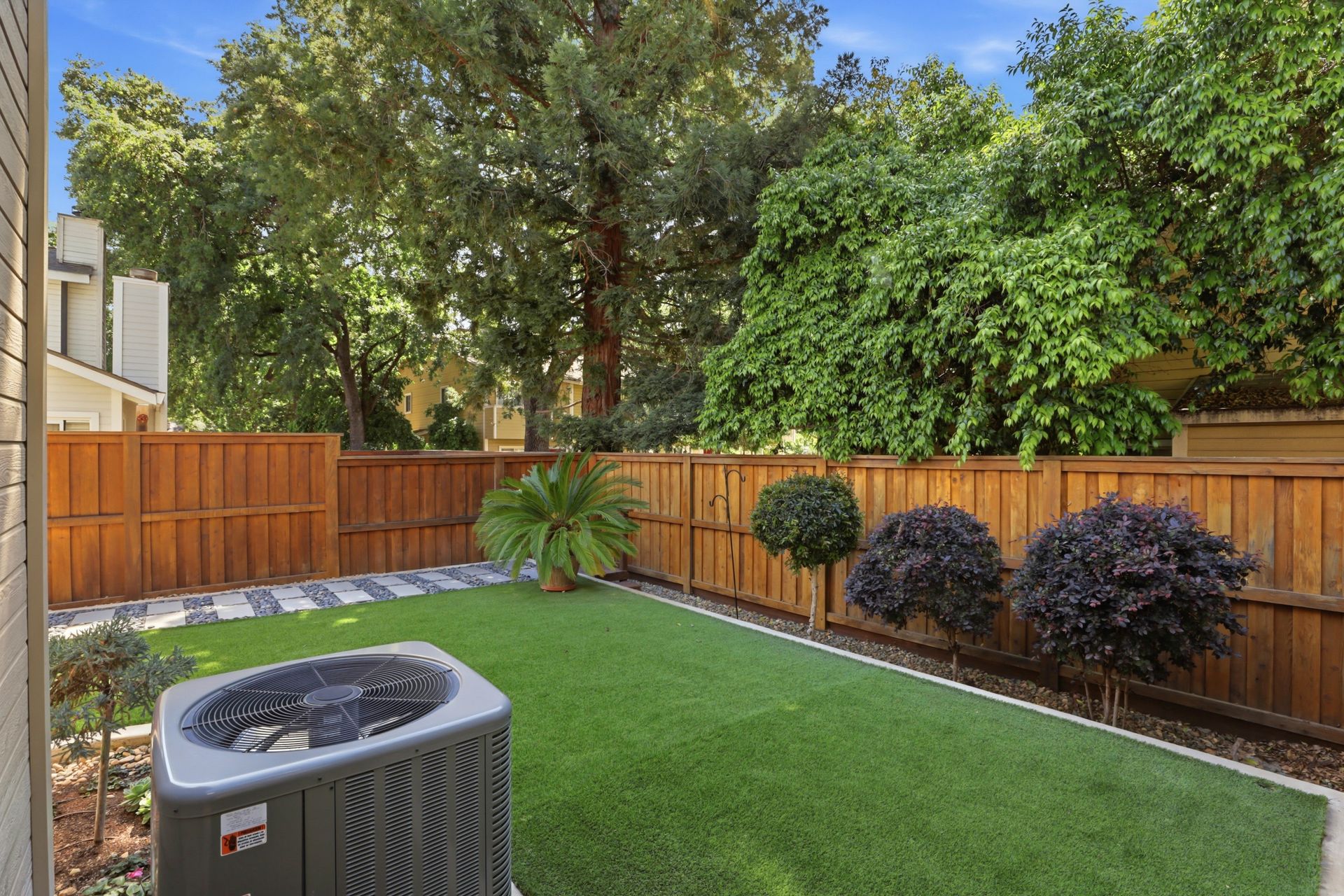 Beautifully remodeled 3-bedroom, 2.5-bath half-plex offering comfort, style, and low-maintenance living in a convenient location. Thoughtfully designed floor plan features an open living space, dual-pane windows, plantation shutters, and a sliding glass door that opens to the private backyard. The well-positioned kitchen overlooks the living and dining areas and is equipped with granite countertops, quality cabinetry, stainless steel gas range, microwave, and dishwasherideal for both everyday living and entertaining. A tastefully updated half bath and convenient indoor laundry closet complete the downstairs. Durable and attractive luxury vinyl plank flooring, installed in 2018, enhances the main level, while a modern fireplace creates a warm and inviting focal point. Upstairs, you'll find comfortable carpeting throughout and a spacious primary suite with a large closet and beautifully remodeled en-suite bathroom featuring dual sinks and a generous walk-in shower with sleek European-style glass enclosure. Two additional bedrooms and an updated hall bathroom provide flexibility for family, guests, or home office needs. Additional highlights include a finished two-car garage with extra storage and well-designed front and backyard spaces featuring artificial turf for easy upkeep. Major system updates include a newer roof (2019), HVAC (2020), water heater (2011), and exterior paint (2020). No HOA. Ideally located near shopping, dining, and local favorites including The Farmer's Wife, Milagro Centre, and Ancil Hoffman Park. Enjoy close proximity to the American River Parkway with its scenic trails and natural beauty. A fantastic opportunity to own a move-in ready home at an exceptional value.