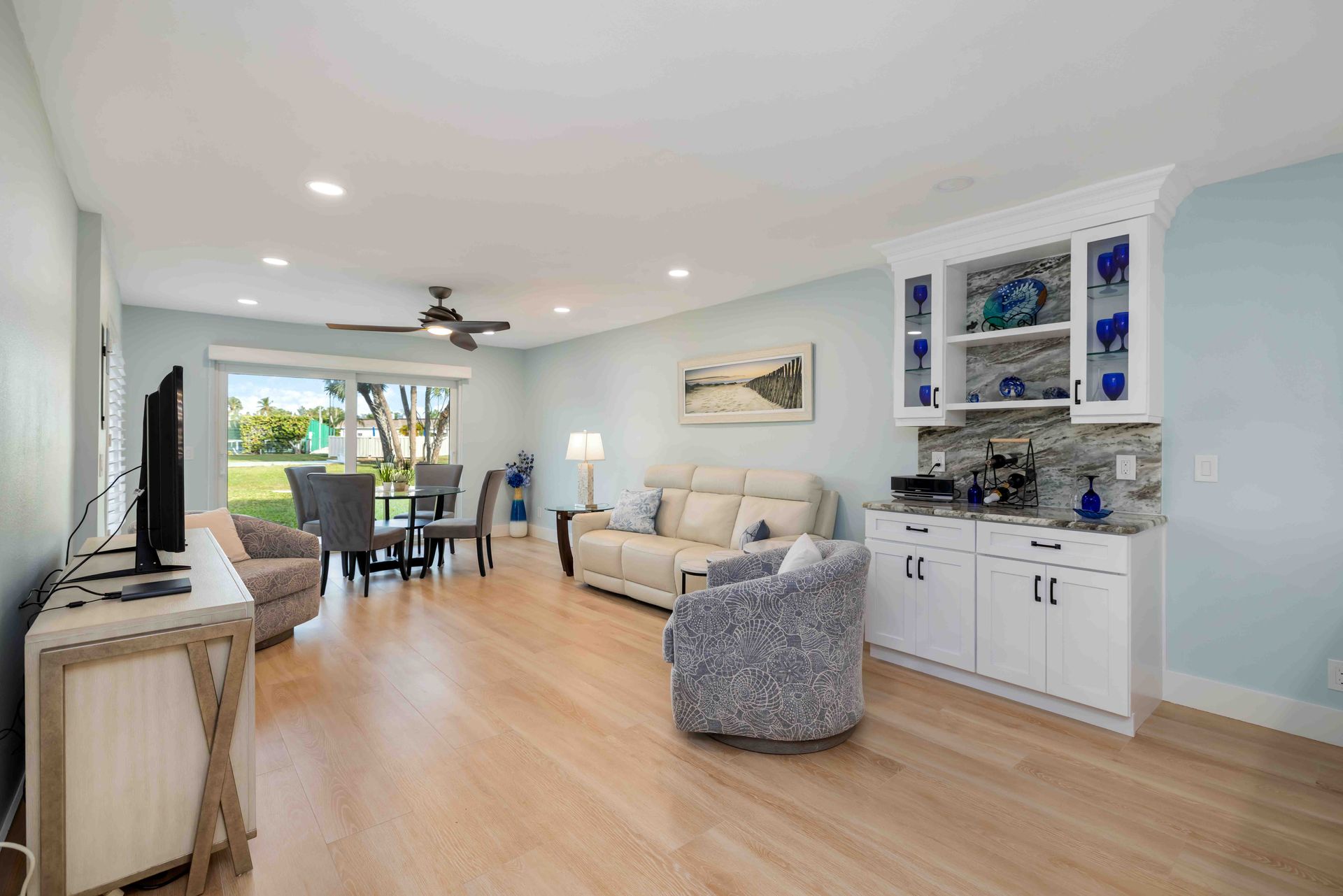 This exquisite turnkey furnished 2-bed, 2-bath villa has been fully and meticulously renovated—not a detail overlooked, not an expense spared. Step inside and instantly feel the difference: an open-concept layout, a serene neutral palette, elegant recessed LED lighting, solid core doors with iron hardware, and luxury vinyl plank flooring throughout for a sleek, modern, allergen-free environment.
