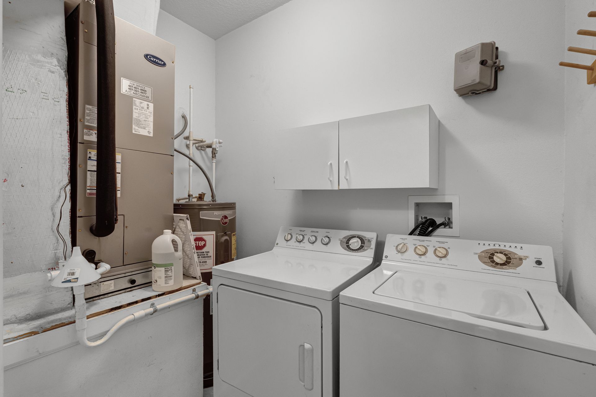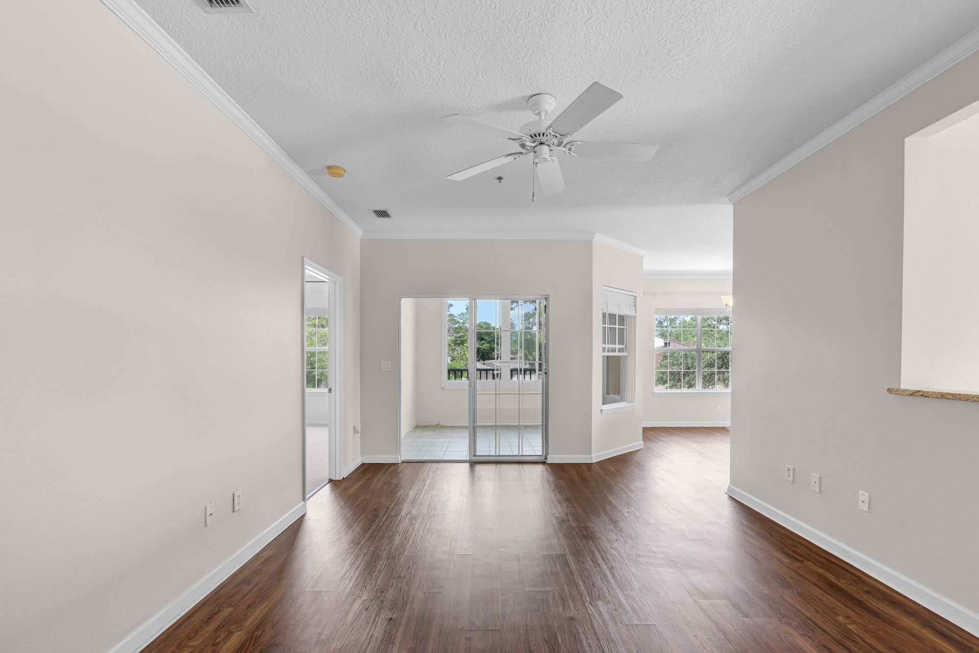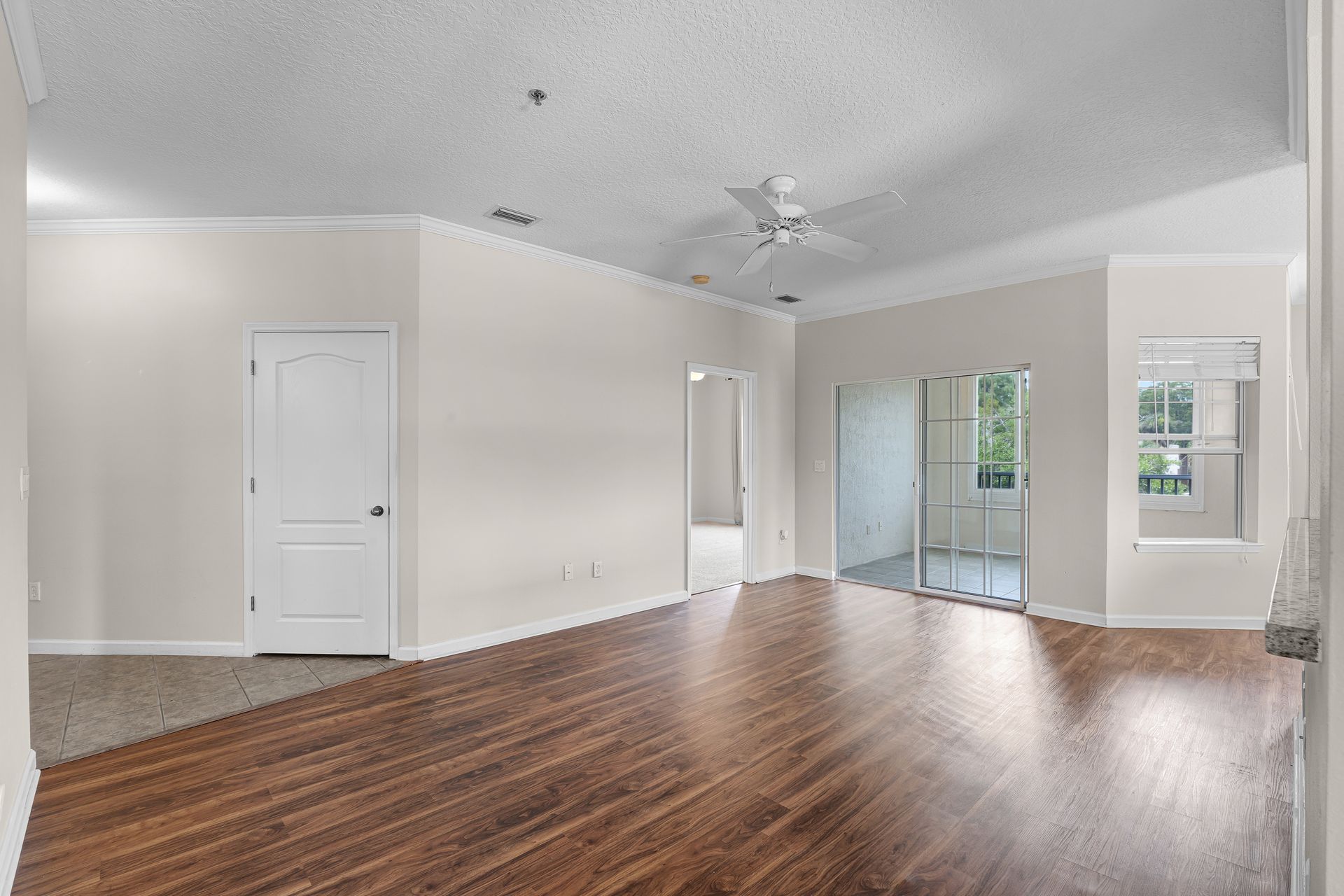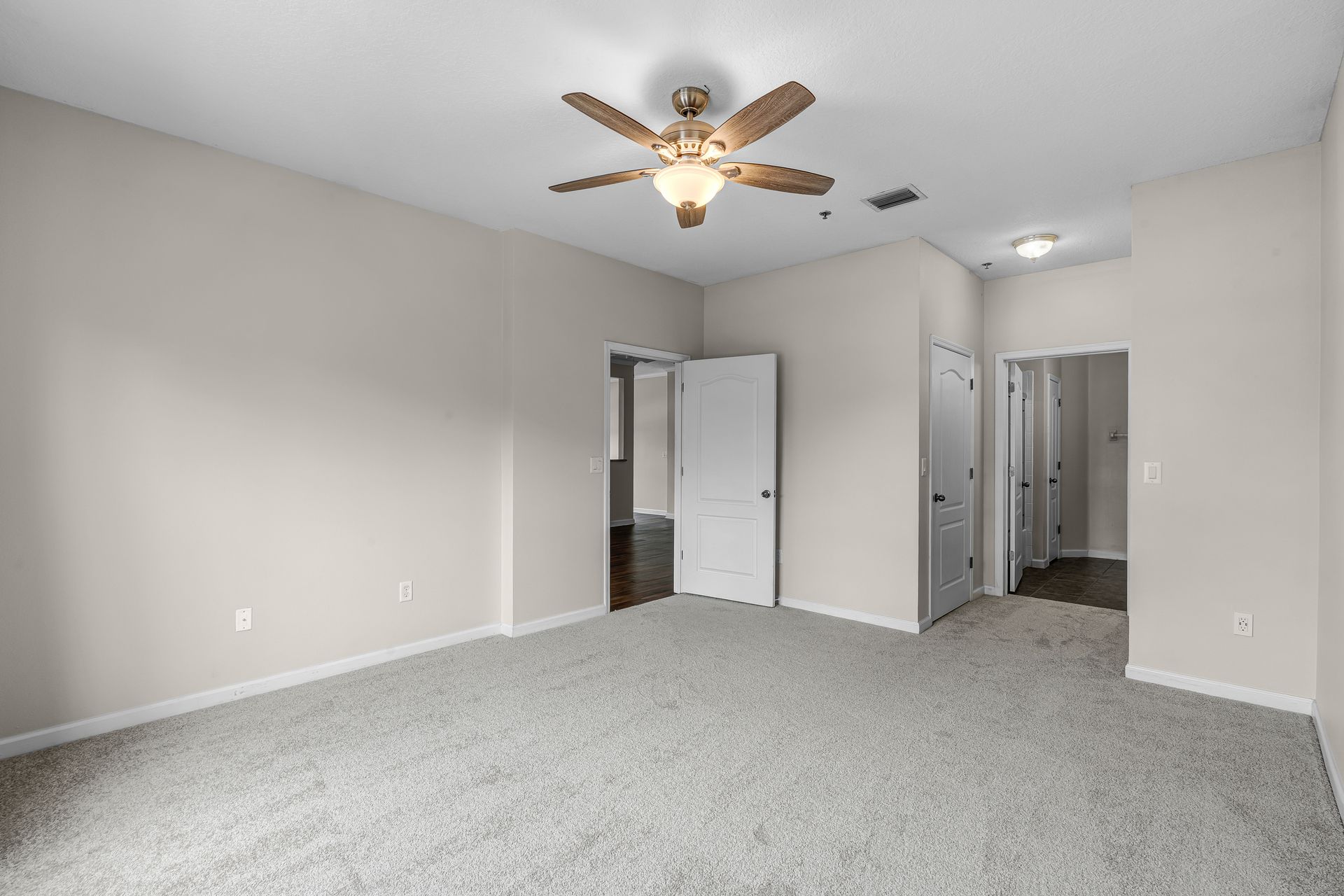 This two-bedroom, two-bathroom condominium/ offers approximately 1,405 square feet of living space. The spacious exterior leads you to a thoughtfully designed layout with abundant natural light. Hardwood flooring throughout the main living areas complements the neutral decor, while ceiling fans provide comfortable airflow. The functional floor plan includes ample storage space, including a storage closet conveniently located next to the entrance.