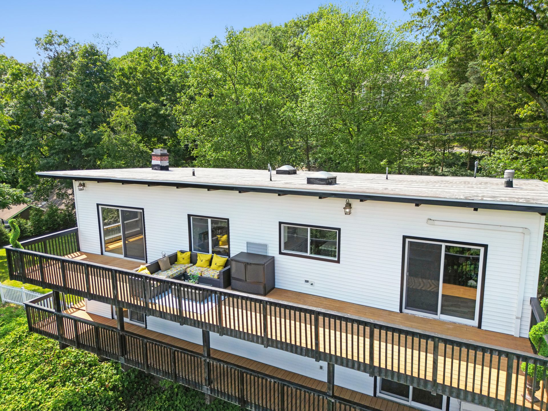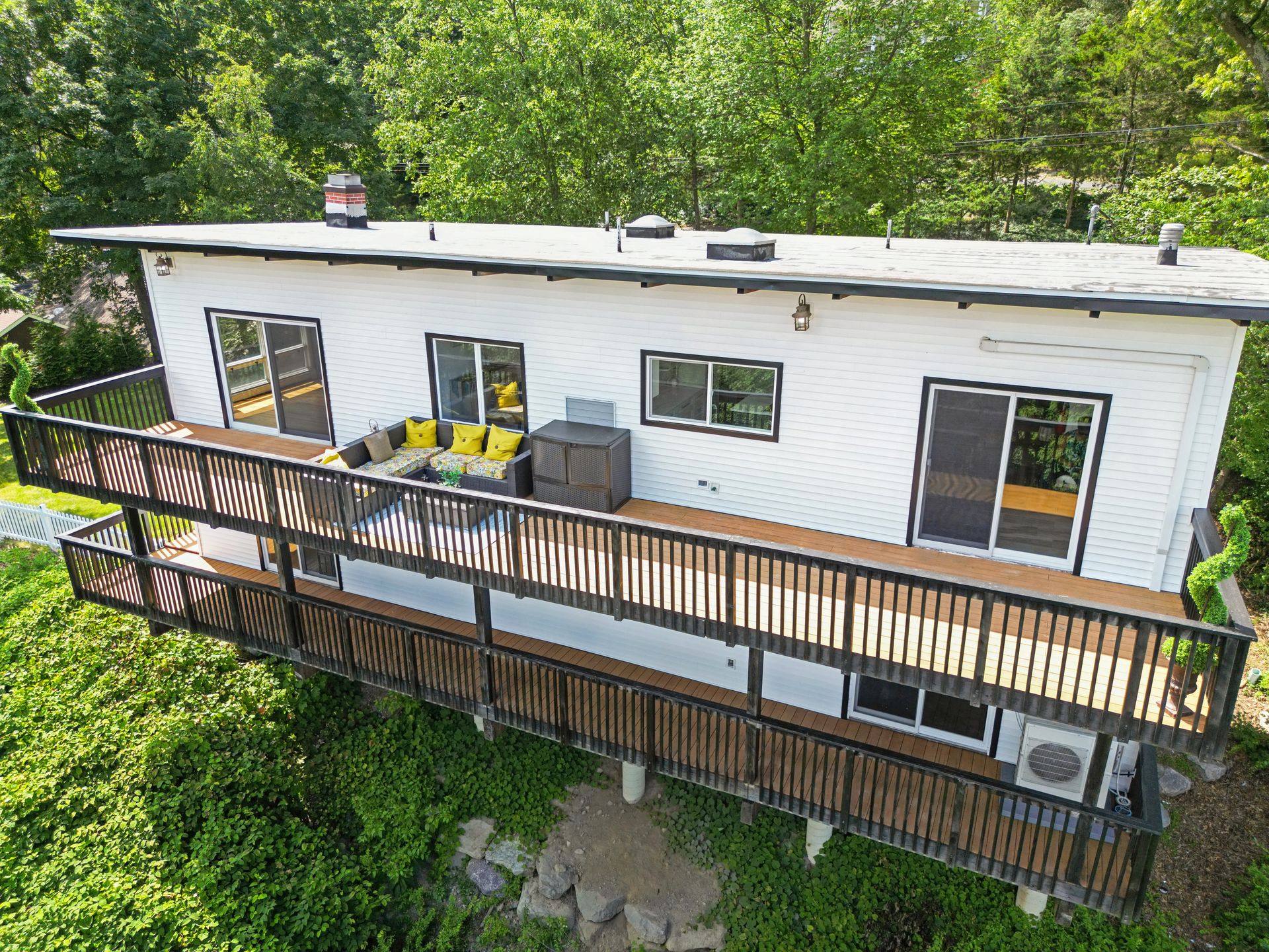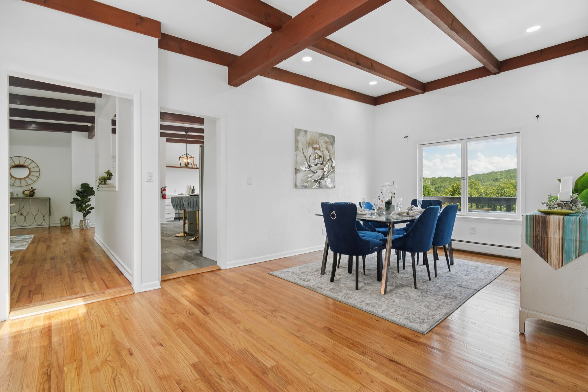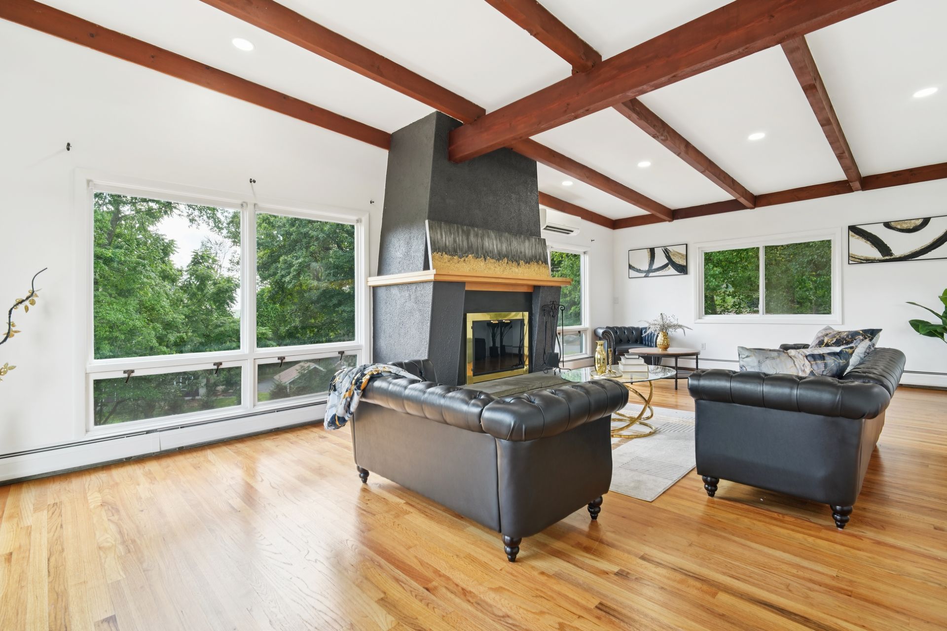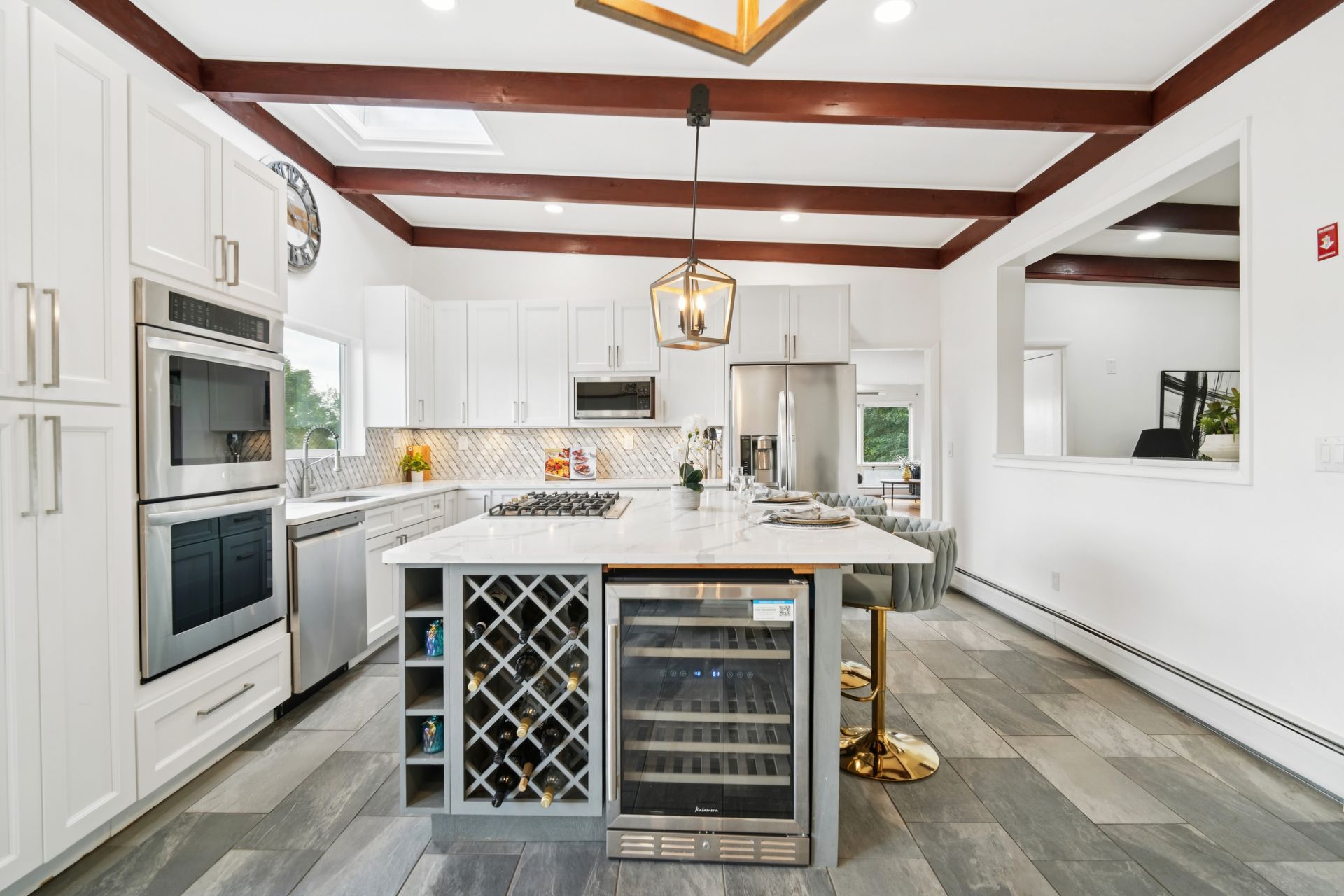 Perched atop a private hill with sweeping, year-round mountain views, this custom-designed gem blends elevated living with everyday comfort. Set in a sought-after township of Kinnelon known for its high-ranking schools and vibrant community association, residents enjoy access to seasonal pools, playgrounds and year-round events that bring neighbors together. Step inside to discover a fully renovated masterpiece featuring vaulted ceilings, skylights and restored hardwood floors that flow seamlessly throughout the home. The newly reimagined living room and formal dining room has a chef's kitchen outfitted with a center island. Enjoy a large family room with a wood-burning fireplace and sliders that open up where you can soak in hilltop sunsets or host under the stars. Boasting five bedrooms on the first floor, including two private suites, this home offers incredible flexibility. The spacious primary suite features a double vanity, stall shower and private deck access. The secondary suite is complete with its own stall shower, walk-in closet, A third hallway bath, featuring heated flooring, a jetted soaking tub and a separate shower stall. Recent upgrades include new siding, roof, select windows and LED recessed lighting throughout, plus exterior and vanity lighting enhancements. Freshly painted inside and out, this home blends contemporary style with classic warmth. Perfect home location for those seeking tranquility, privacy and a dead-end street. Welcome to elevated living. This one won't last long.