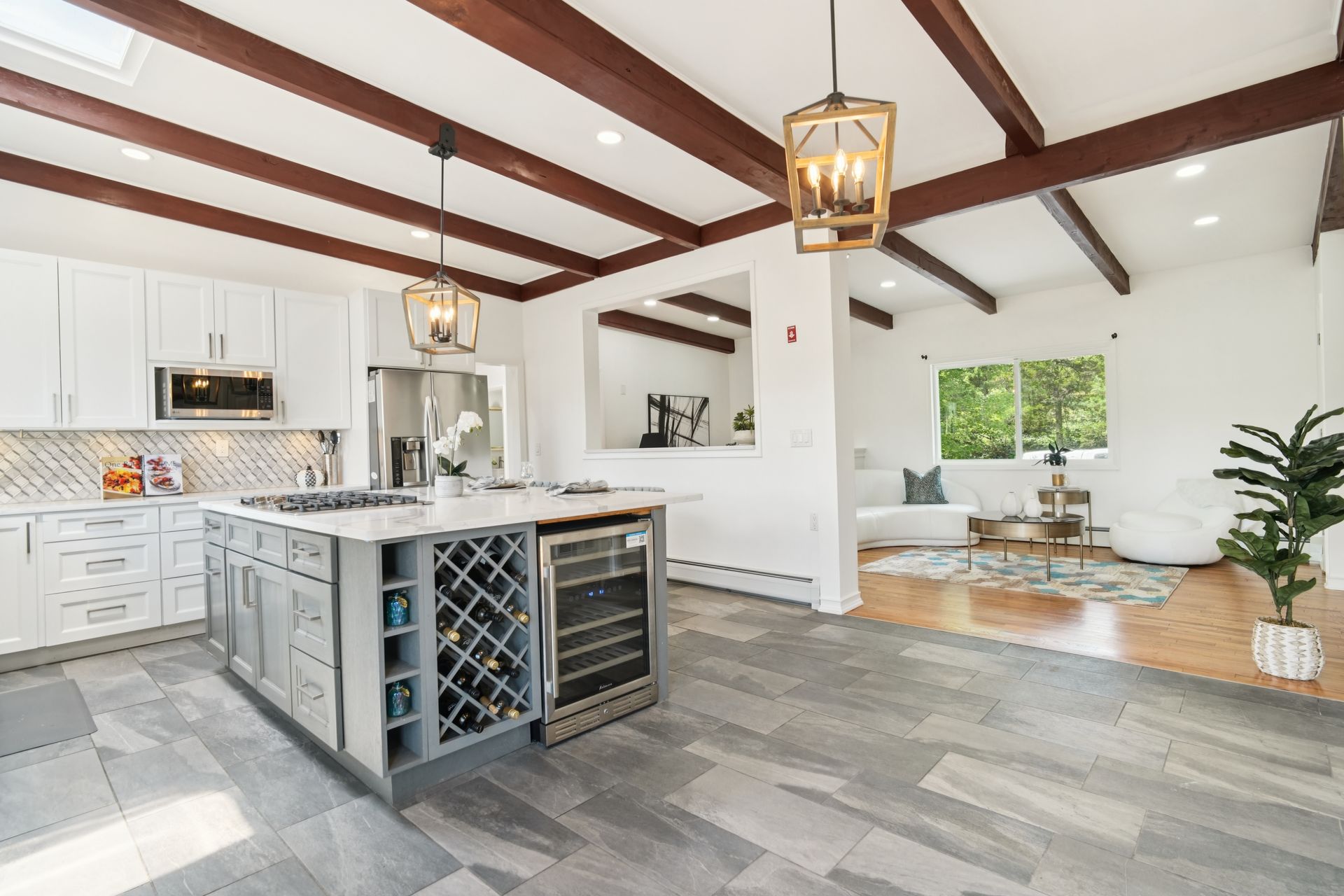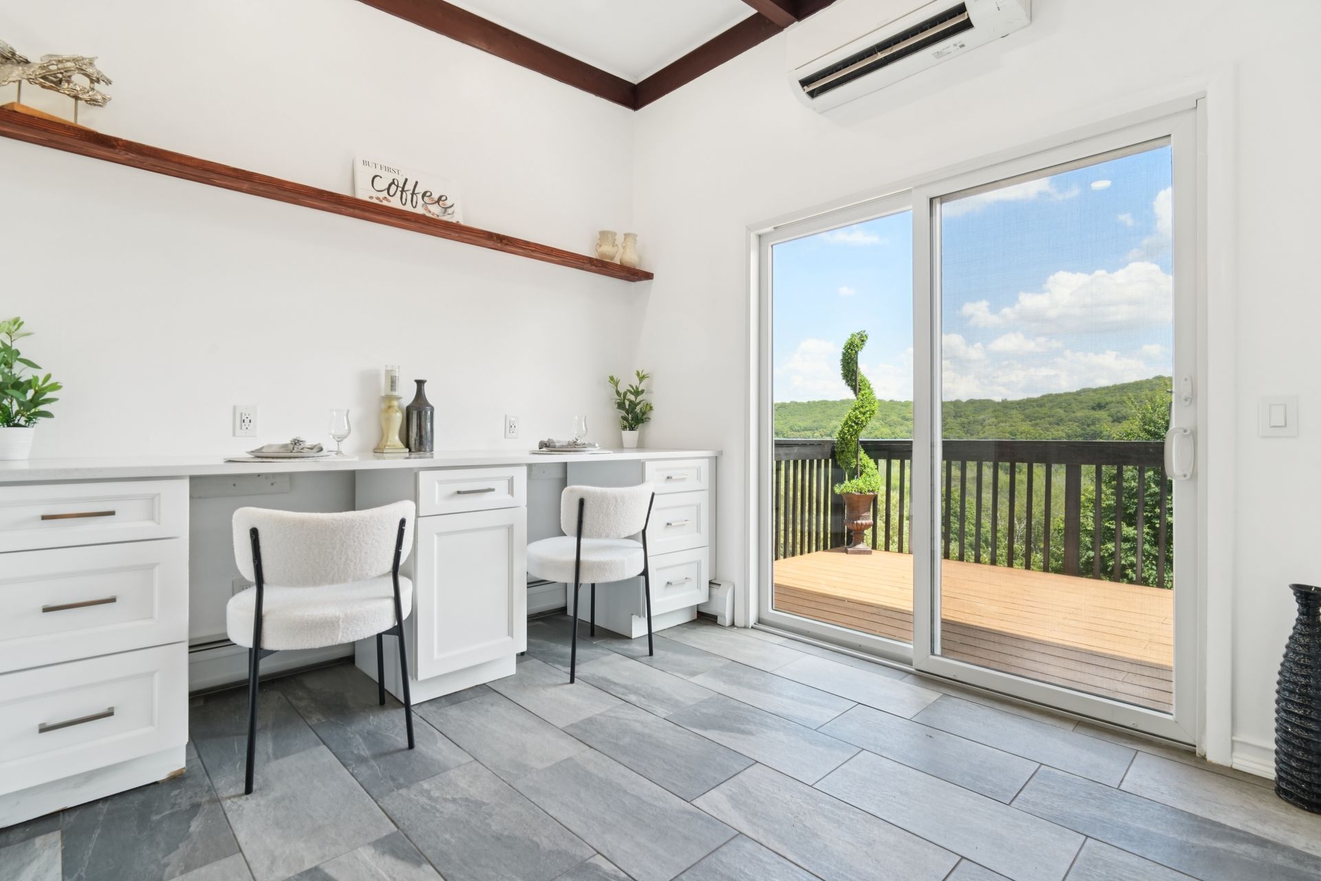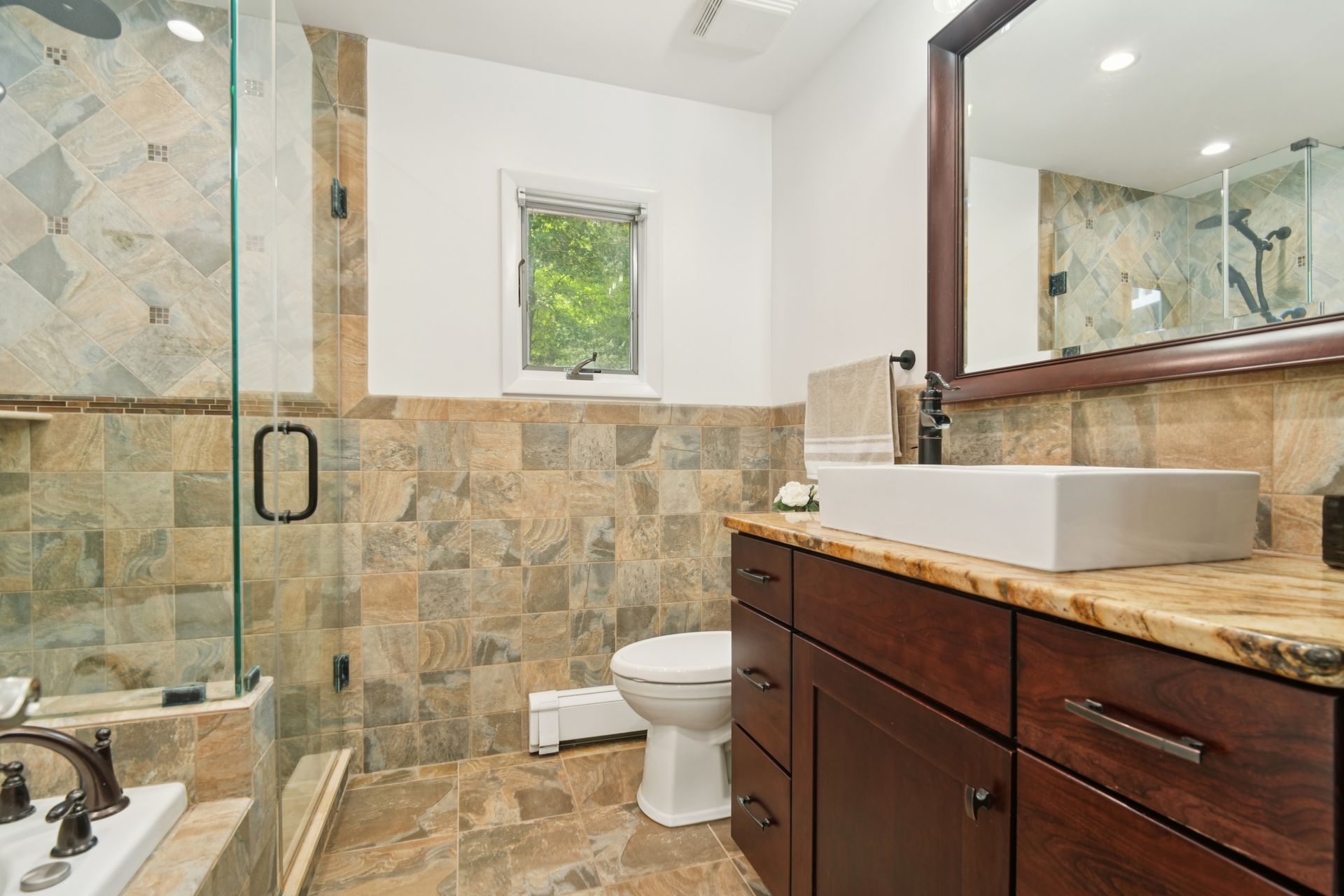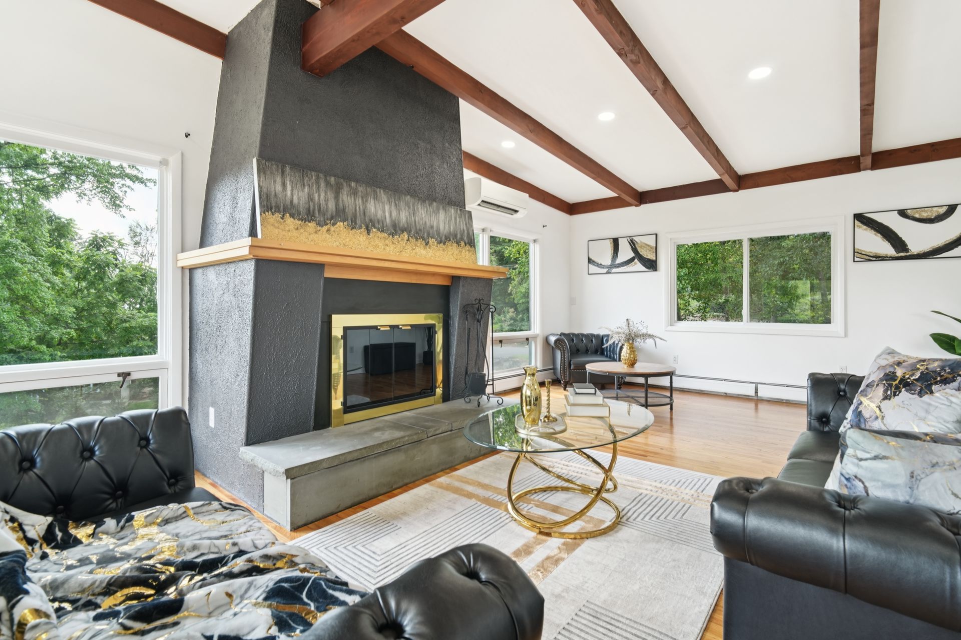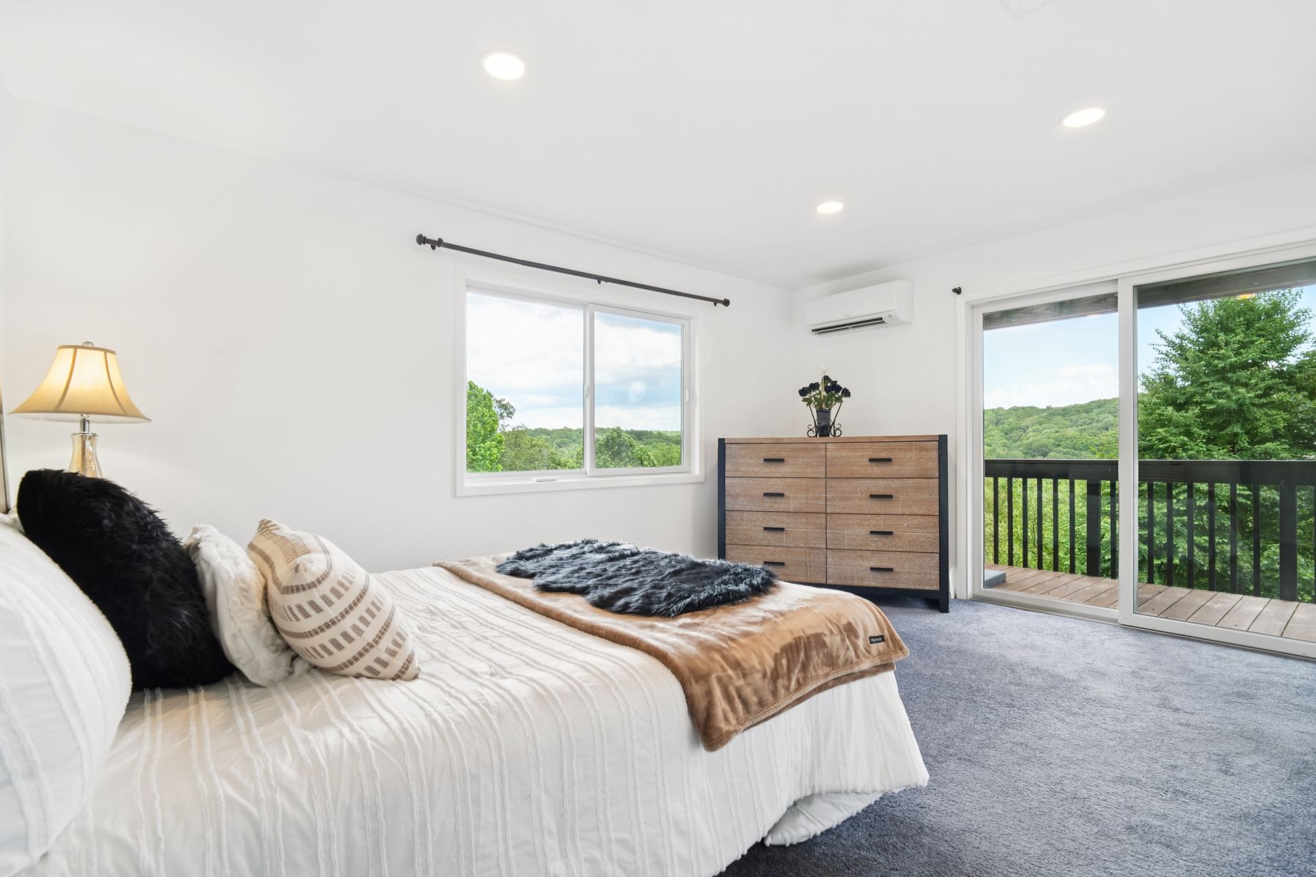 Perched atop a private hill with sweeping, year-round mountain views, this custom-designed gem blends elevated living with everyday comfort. Set in a sought-after township of Kinnelon known for its high-ranking schools and vibrant community association, residents enjoy access to seasonal pools, playgrounds and year-round events that bring neighbors together. Step inside to discover a fully renovated masterpiece featuring vaulted ceilings, skylights and restored hardwood floors that flow seamlessly throughout the home. The newly reimagined living room and formal dining room has a chef's kitchen outfitted with a center island. Enjoy a large family room with a wood-burning fireplace and sliders that open up where you can soak in hilltop sunsets or host under the stars. Boasting five bedrooms on the first floor, including two private suites, this home offers incredible flexibility. The spacious primary suite features a double vanity, stall shower and private deck access. The secondary suite is complete with its own stall shower, walk-in closet, A third hallway bath, featuring heated flooring, a jetted soaking tub and a separate shower stall. Recent upgrades include new siding, roof, select windows and LED recessed lighting throughout, plus exterior and vanity lighting enhancements. Freshly painted inside and out, this home blends contemporary style with classic warmth. Perfect home location for those seeking tranquility, privacy and a dead-end street. Welcome to elevated living. This one won't last long.