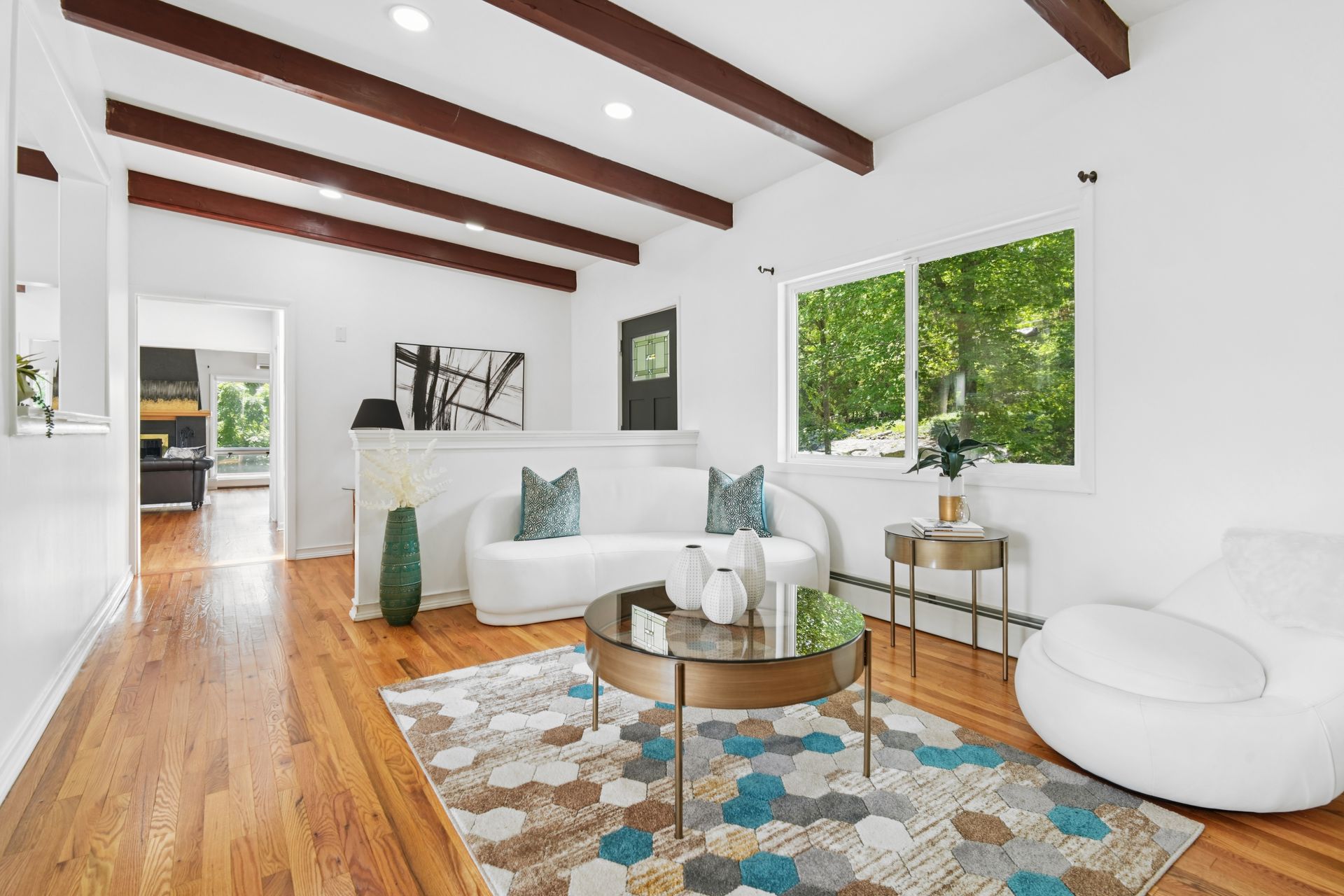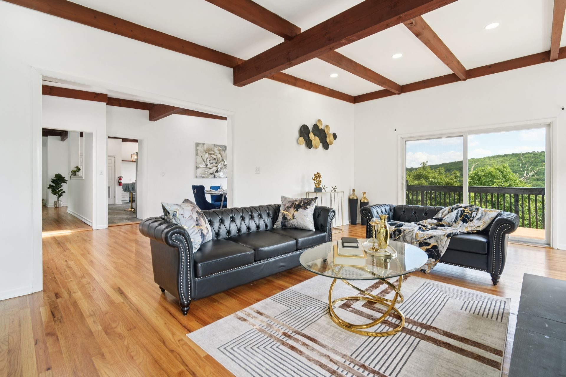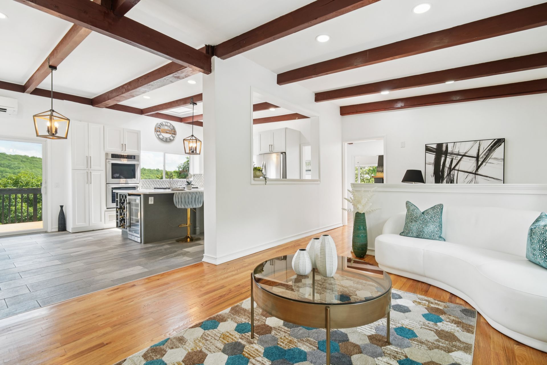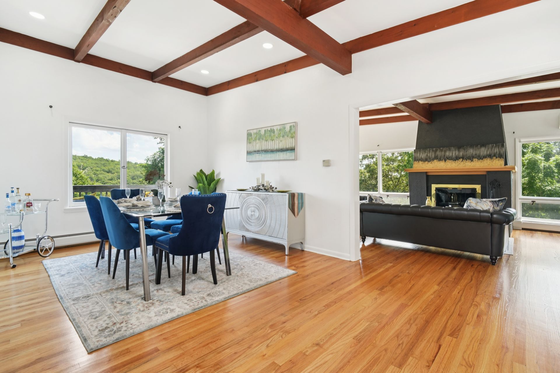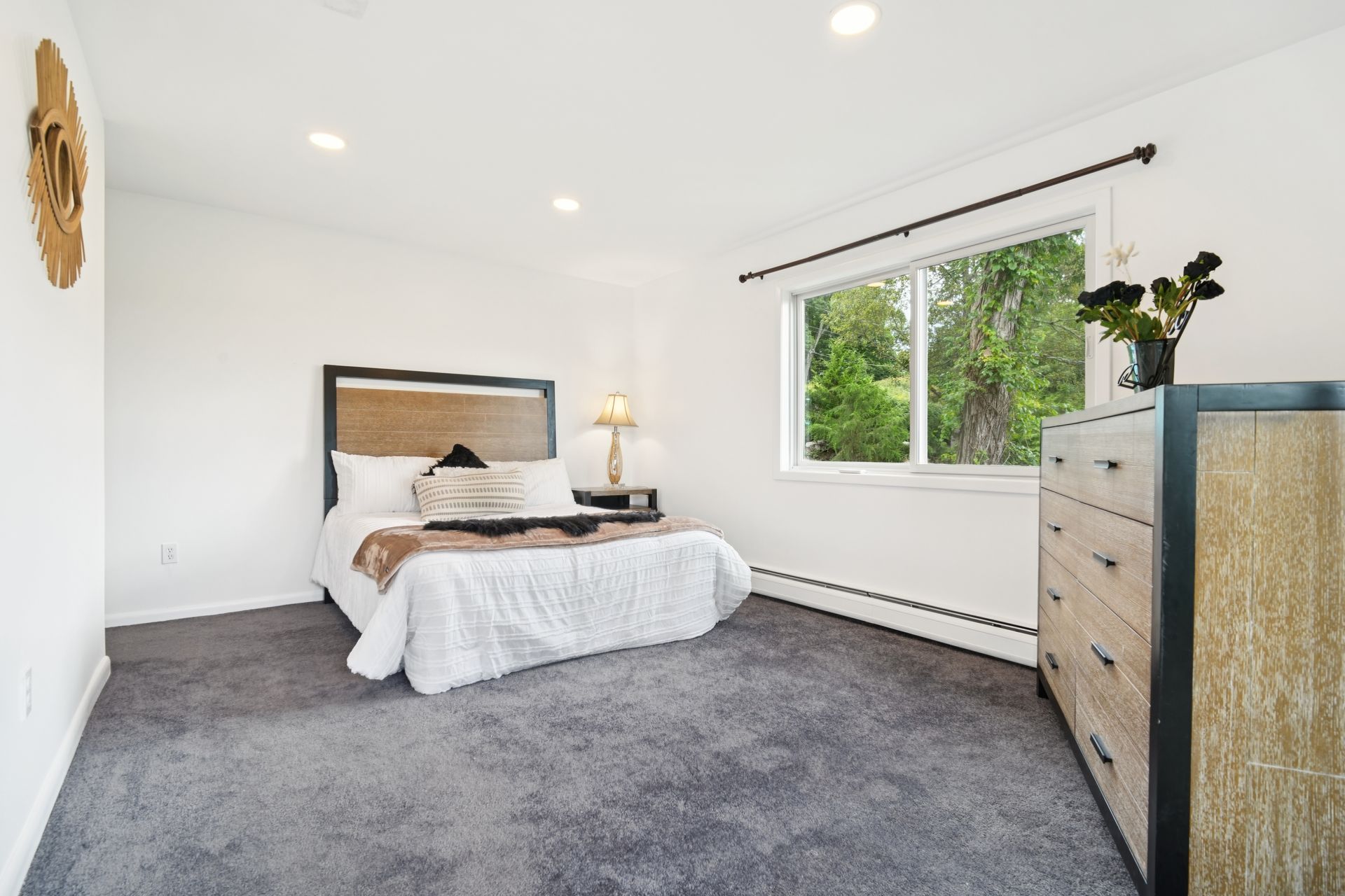 Perched atop a private hill with sweeping, year-round mountain views, this custom-designed gem blends elevated living with everyday comfort. Set in a sought-after township of Kinnelon known for its high-ranking schools and vibrant community association, residents enjoy access to seasonal pools, playgrounds and year-round events that bring neighbors together. Step inside to discover a fully renovated masterpiece featuring vaulted ceilings, skylights and restored hardwood floors that flow seamlessly throughout the home. The newly reimagined living room and formal dining room has a chef's kitchen outfitted with a center island. Enjoy a large family room with a wood-burning fireplace and sliders that open up where you can soak in hilltop sunsets or host under the stars. Boasting five bedrooms on the first floor, including two private suites, this home offers incredible flexibility. The spacious primary suite features a double vanity, stall shower and private deck access. The secondary suite is complete with its own stall shower, walk-in closet, A third hallway bath, featuring heated flooring, a jetted soaking tub and a separate shower stall. Recent upgrades include new siding, roof, select windows and LED recessed lighting throughout, plus exterior and vanity lighting enhancements. Freshly painted inside and out, this home blends contemporary style with classic warmth. Perfect home location for those seeking tranquility, privacy and a dead-end street. Welcome to elevated living. This one won't last long.