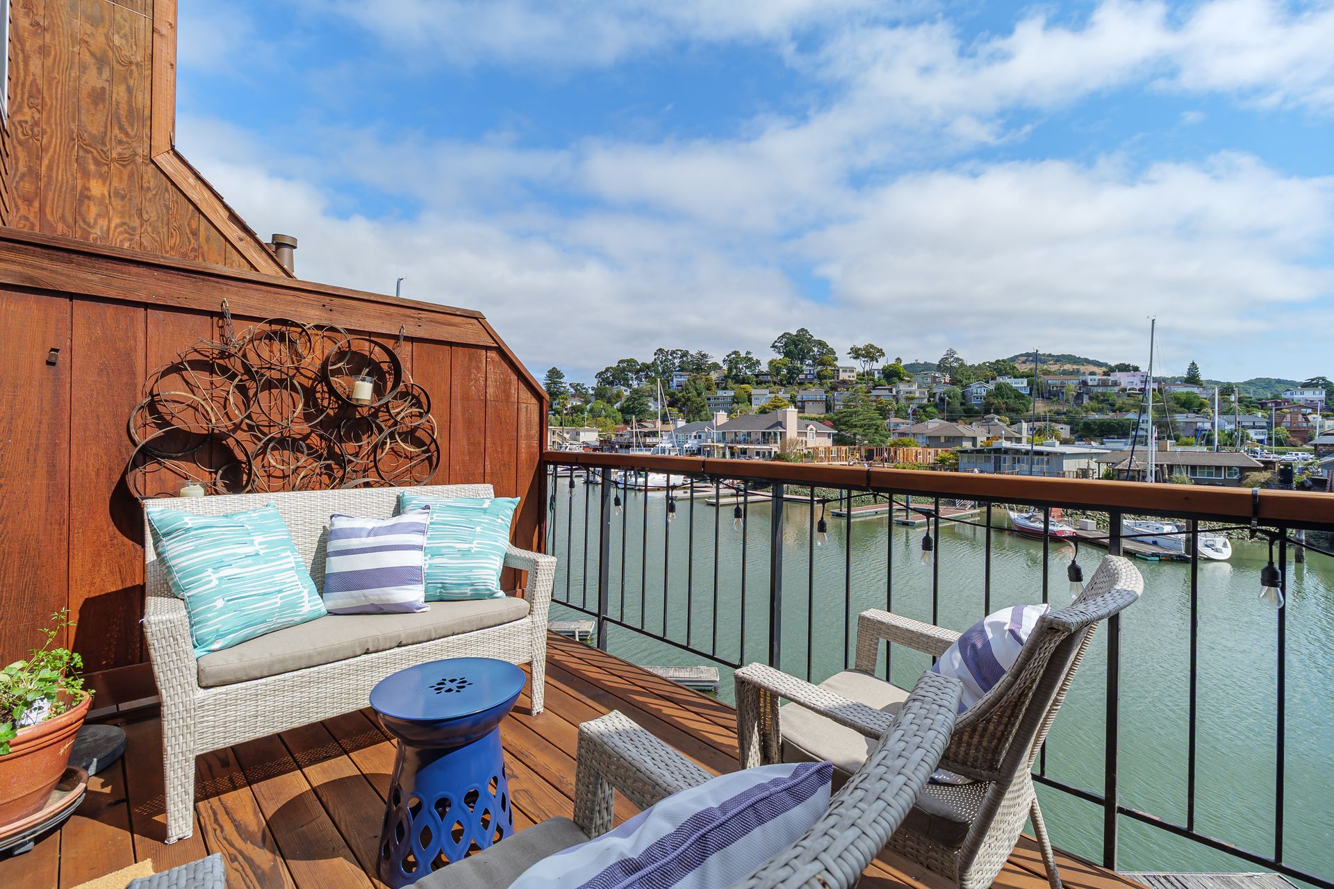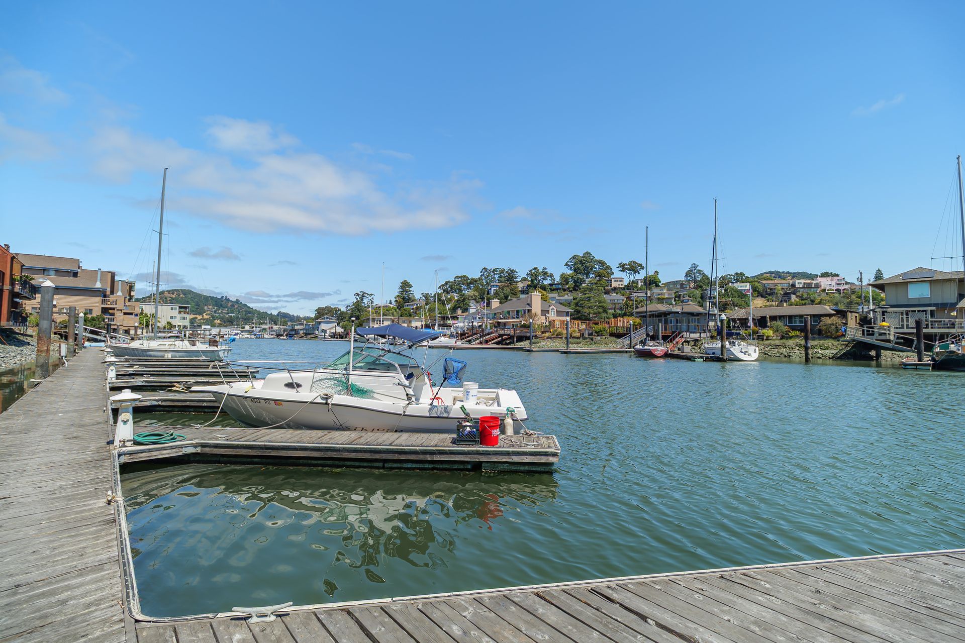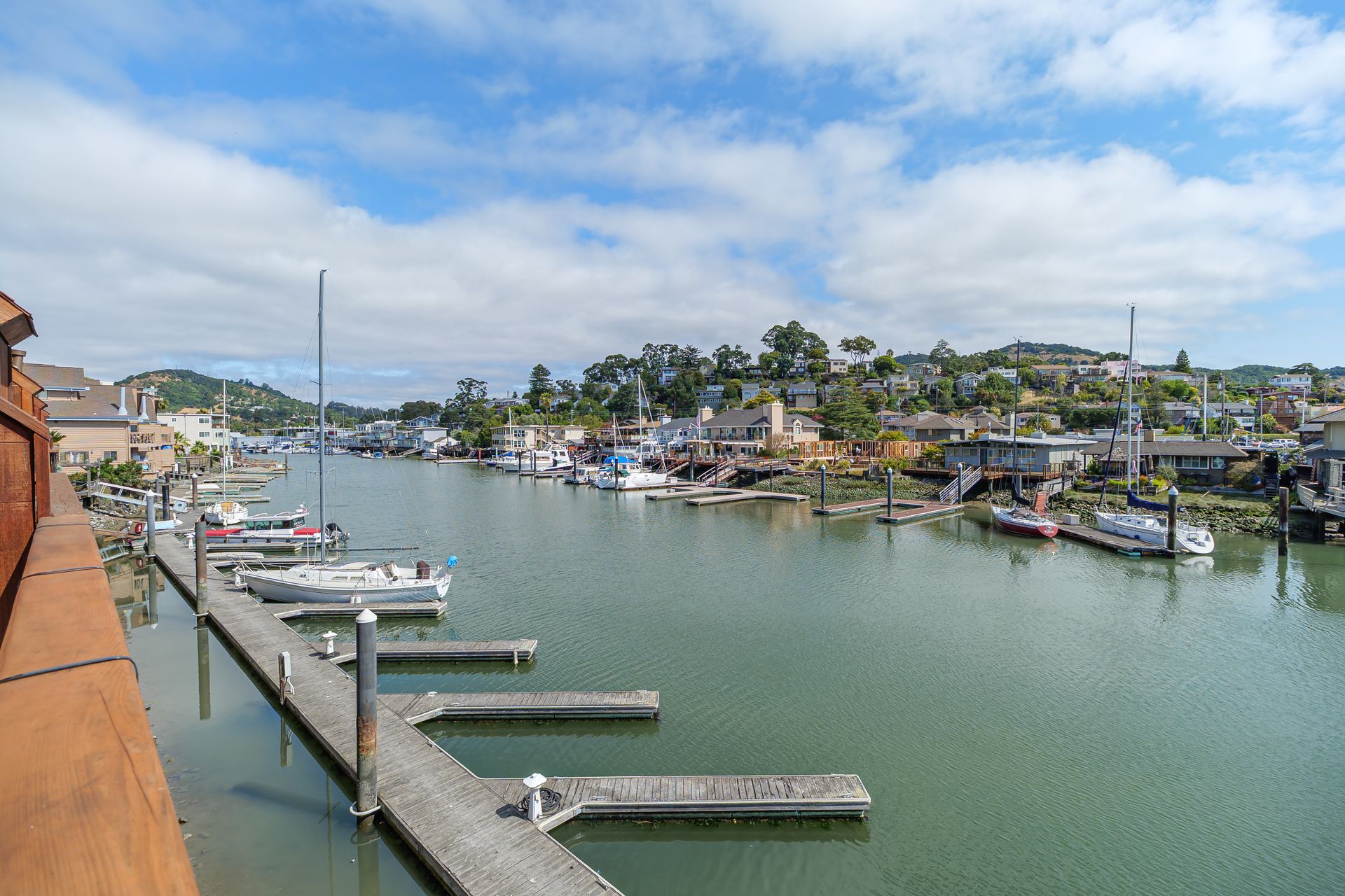 Located in the gated and private Sabriski Cove, Unit 19 is an elevated and light filled two bedroom, one and a half bath townhouse with breathtaking water views and your very own boat slip, for sailing or kayaking. All updated with a spacious living room that extends out on to the private sun-drenched deck overlooking the boats, kayaks and paddleboarders, not to mention the wonderful bird life on the water together with occasional sea lions and otters. Remodeled quartz kitchen with top of the line appliances inc. wine/beverage cooler and a view of Mt. Tam. Upstairs, the primary bedroom has a view of the water and the vanity was custom built with new white quartz single slab and an Italian double basin. The secondary bedroom with a private balcony has city and Mt. Tam views and lovely south facing light, plus an extra custom built vanity sink. Washer & dryer, fireplace, lovely powder room on the main level - this home is move in ready and perfect for someone with a busy lifestyle. Close to downtown San Rafael with its great restaurants and shops, plus an easy commute to the city or wine country. Make this the one to see!!!