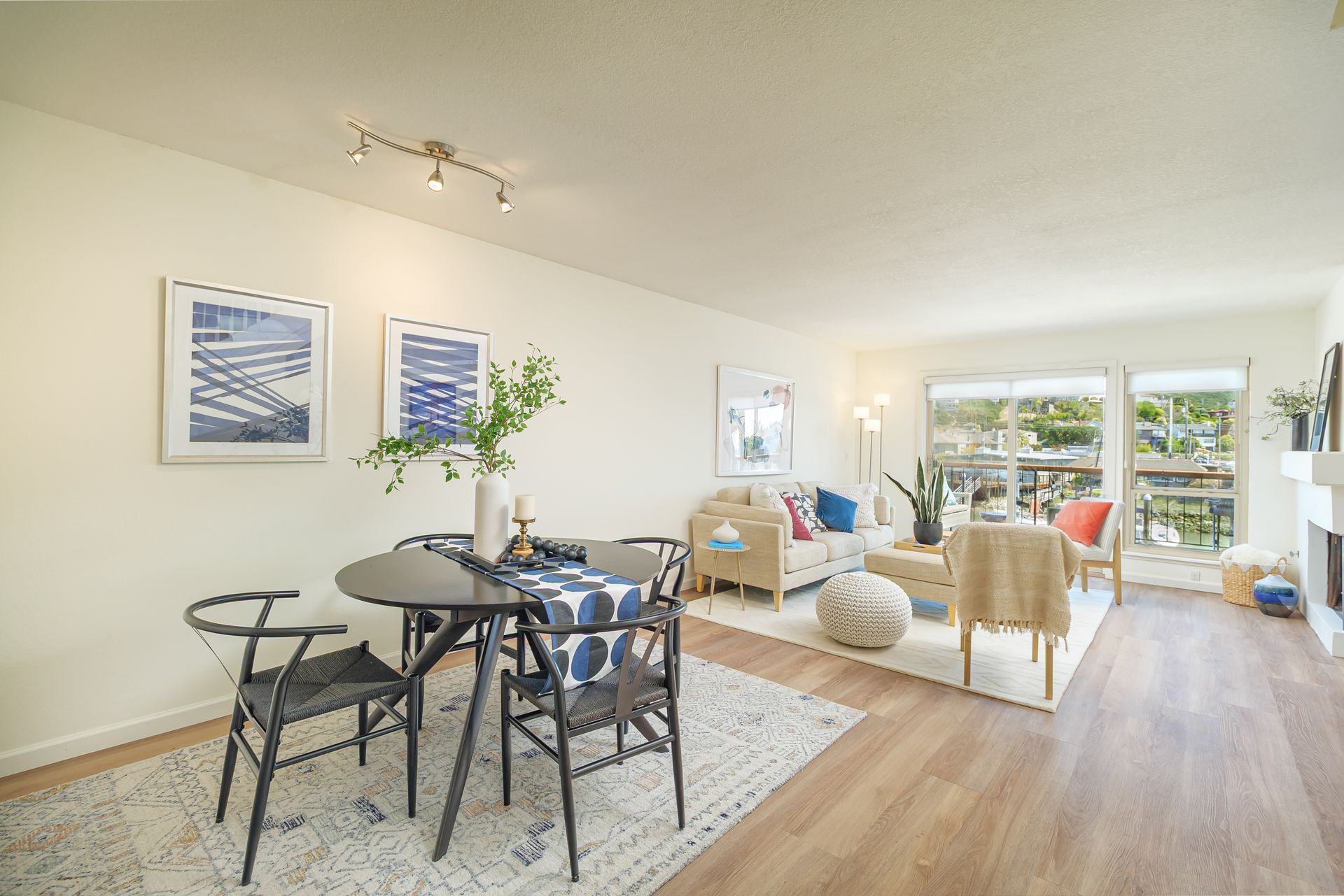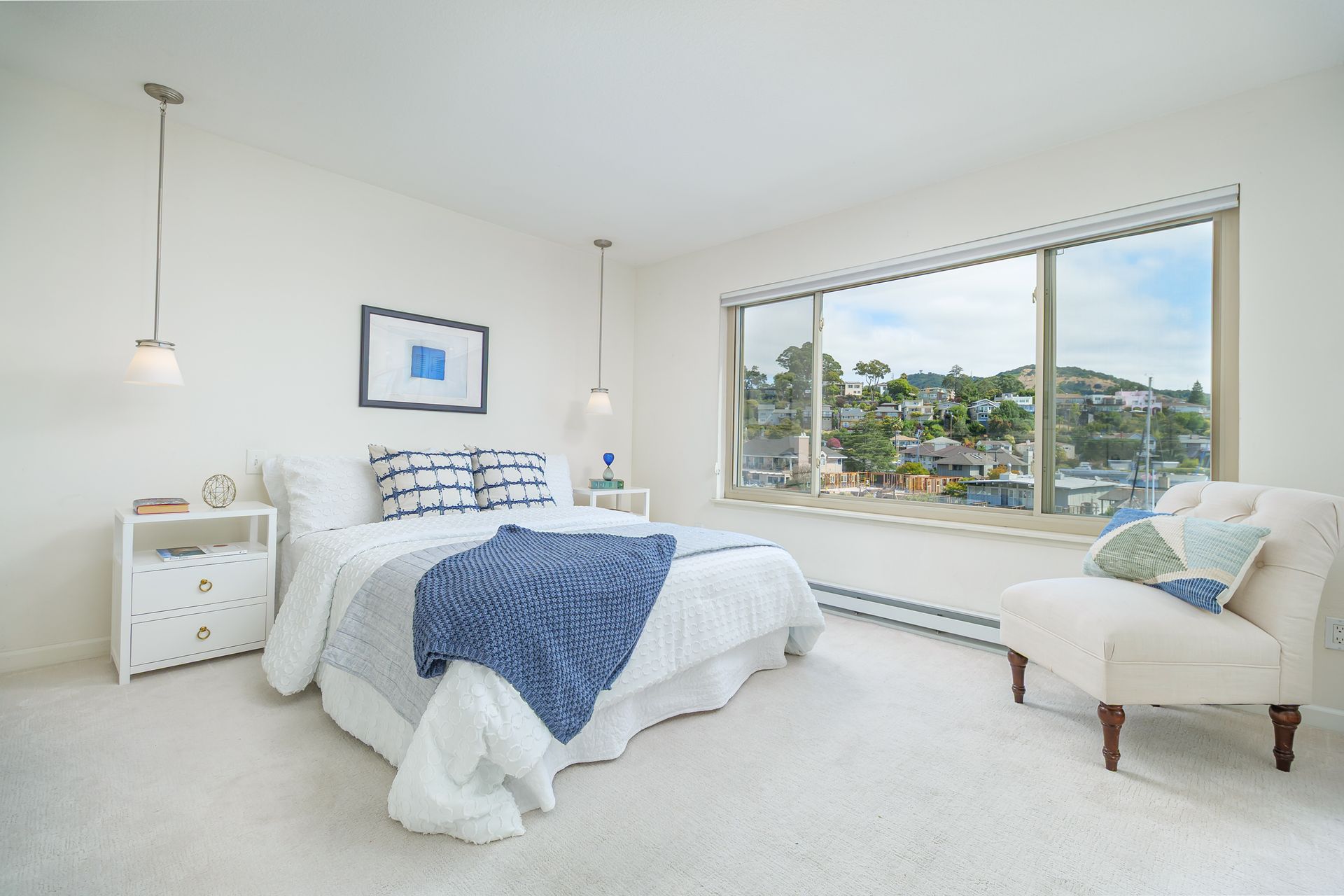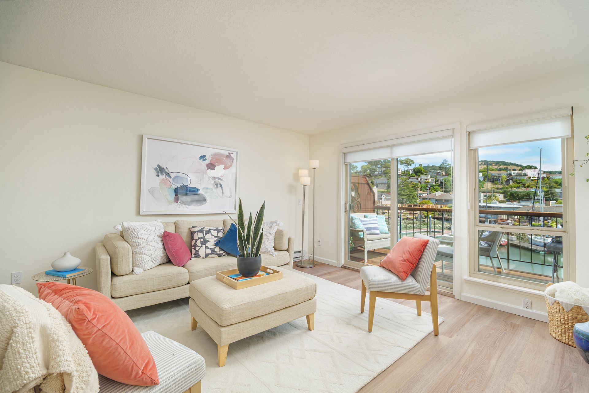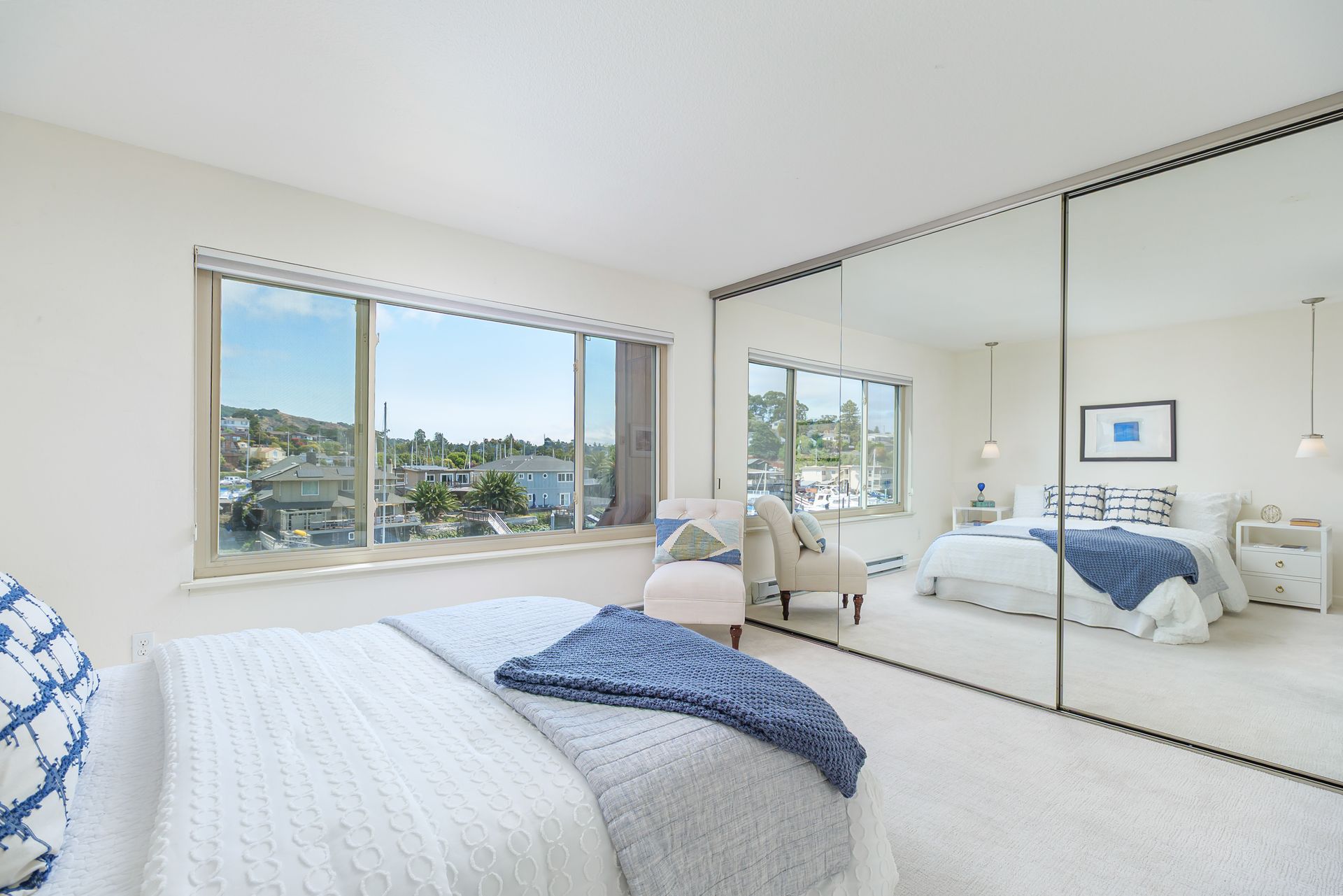 Located in the gated and private Sabriski Cove, Unit 19 is an elevated and light filled two bedroom, one and a half bath townhouse with breathtaking water views and your very own boat slip, for sailing or kayaking. All updated with a spacious living room that extends out on to the private sun-drenched deck overlooking the boats, kayaks and paddleboarders, not to mention the wonderful bird life on the water together with occasional sea lions and otters. Remodeled quartz kitchen with top of the line appliances inc. wine/beverage cooler and a view of Mt. Tam. Upstairs, the primary bedroom has a view of the water and the vanity was custom built with new white quartz single slab and an Italian double basin. The secondary bedroom with a private balcony has city and Mt. Tam views and lovely south facing light, plus an extra custom built vanity sink. Washer & dryer, fireplace, lovely powder room on the main level - this home is move in ready and perfect for someone with a busy lifestyle. Close to downtown San Rafael with its great restaurants and shops, plus an easy commute to the city or wine country. Make this the one to see!!!