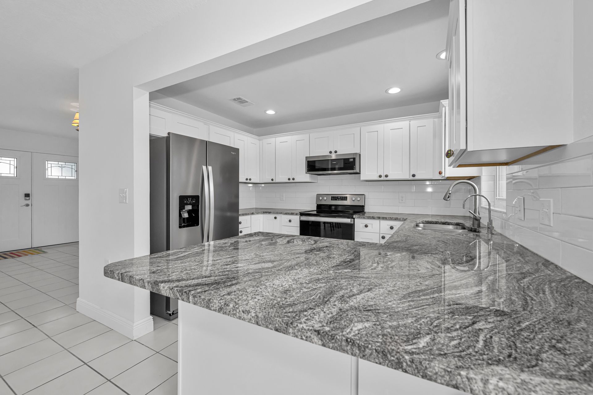 Wake up to peaceful waterfront views in this fully renovated, move-in-ready three-bedroom, two-bath coastal retreat in one of Port Richey’s most desirable waterfront pockets—Harbor Isles. Updated with the latest finishes, this home blends comfort, sophistication, and true Florida living. Enjoy all-new hurricane-impact windows, hurricane-rated exterior doors, a new HVAC system, and two years of prepaid flood insurance (GFIP), offering exceptional peace of mind and outstanding value. All hurricane-related renovations were fully permitted and professionally completed. Inside, a bright, open floor plan features luxury flooring, designer fixtures, and abundant natural light. The beautifully remodeled kitchen includes soft-close cabinetry, stainless-steel appliances, and granite countertops, opening seamlessly to the dining and living areas—ideal for gatherings. The primary suite offers a tranquil escape with serene water views and an updated en suite bathroom. Two additional bedrooms provide flexibility for guests, family, or a home office. A spacious inside laundry room offers valuable overflow storage. The garage with attached storage and the oversized driveway provide ample space for vehicles, toys, or workshop needs. The sunroom blends indoor and outdoor living, framing the stunning waterfront backdrop. Outside, the sparkling pool and generous entertaining areas overlook a secluded, intercoastal-style setting that captures the relaxed charm of coastal Florida. With over 70 feet of seawall, a dock, and a 10,000-lb lift rated for a 28-ft boat, you’ll enjoy fast, no-bridge access to the Gulf. Spend your days boating, fishing, or visiting nearby waterfront restaurants and marinas. Ideally located near Gulf beaches, Tampa Bay, and Clearwater, this home offers an exceptional opportunity to enjoy Florida living at its best. Harbor Isles—where peace of mind and coastal elegance come together.