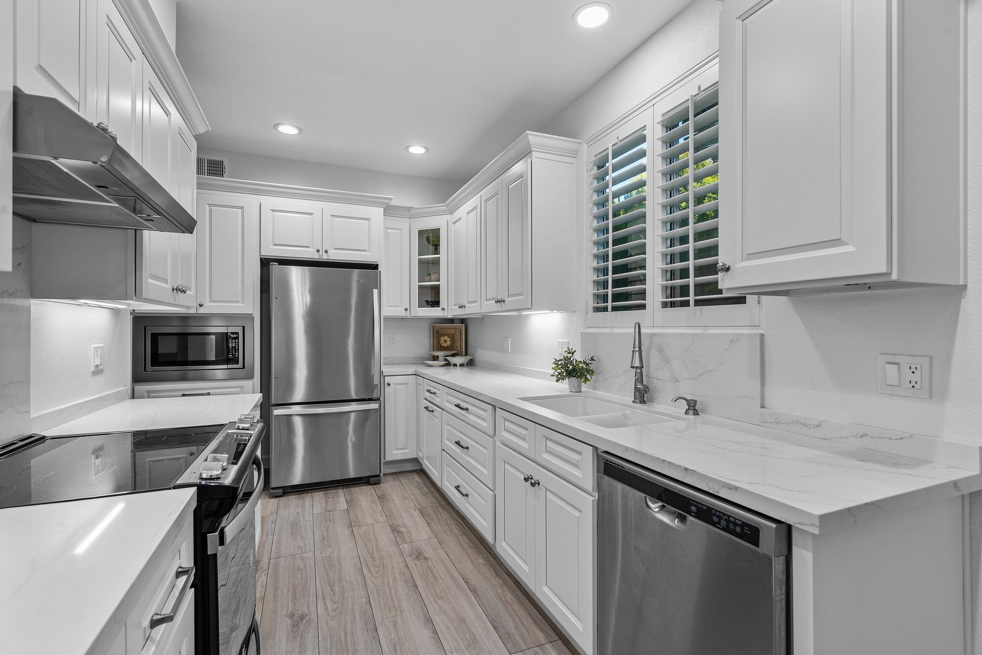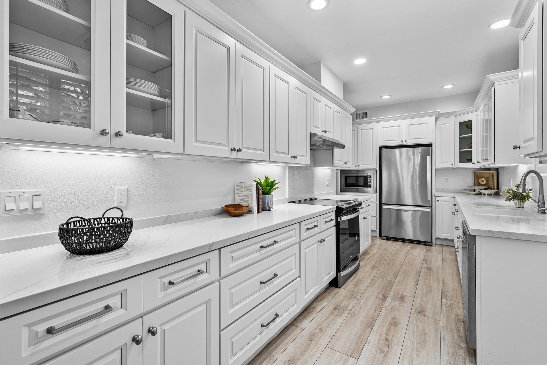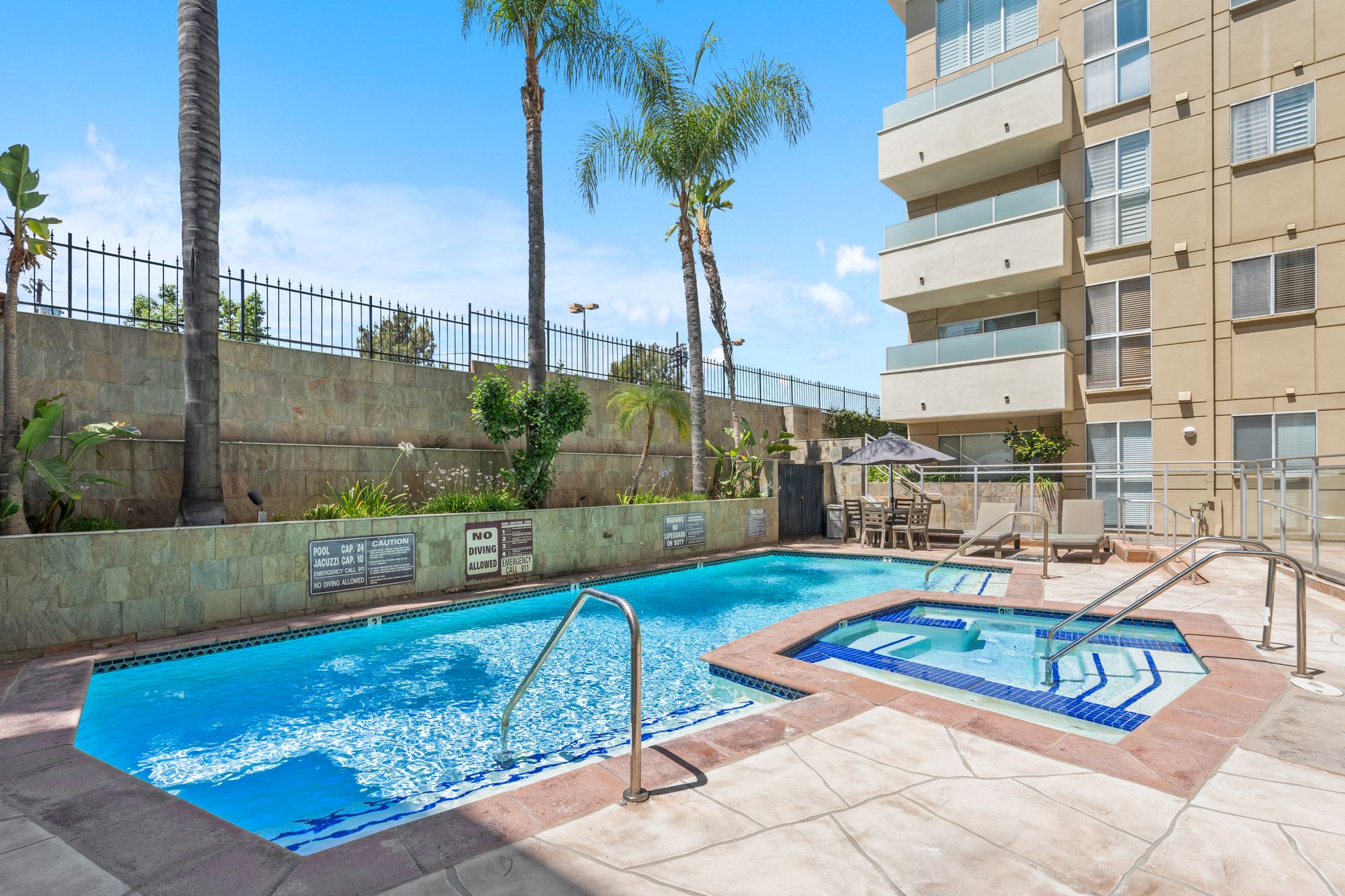Welcome to Encino Park West, a full service luxury building in the heart of Amestoy Estates in Encino. This spacious unique layout is a RARE FIND with three bedrooms. In addition, this unit has three bathrooms! The large primary ensuite bedroom has an oversized closet. The primary bathroom includes a deep relaxing bathtub as well as a standup shower. The living room is open and adjoins a dining area and an outside patio to relax and enjoy your morning coffee. The remodeled, state-of-the-art kitchen is appointed with quartz countertops, stainless steel appliances, including a LG full size washer/dryer. There is modern spacious cabinetry and an abundance of storage. The associations amenities include 24/7 front desk (concierge) security to assist owner's guests upon arrival and receive packages, etc. There is a large elegant lobby entrance, secure two space garage parking, a pool and spa, fully equipped gym and sauna, secure mail room, as well as a recreation/library and card room with a full kitchen. The HOA monthly fee includes desk, concierge, cable, internet, trash, water and earthquake insurance.