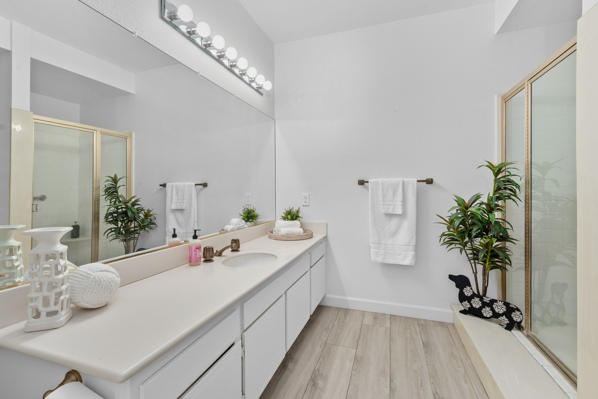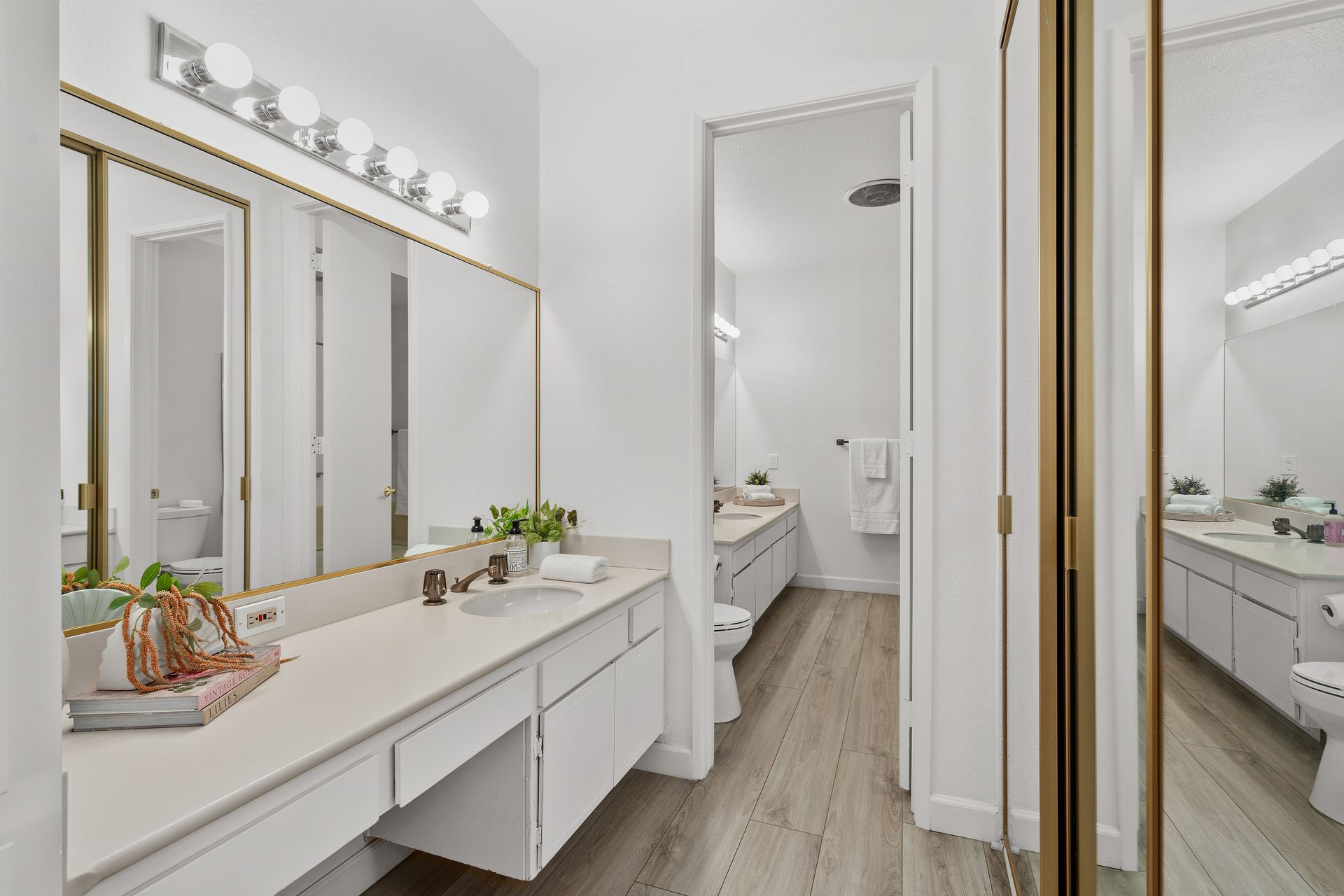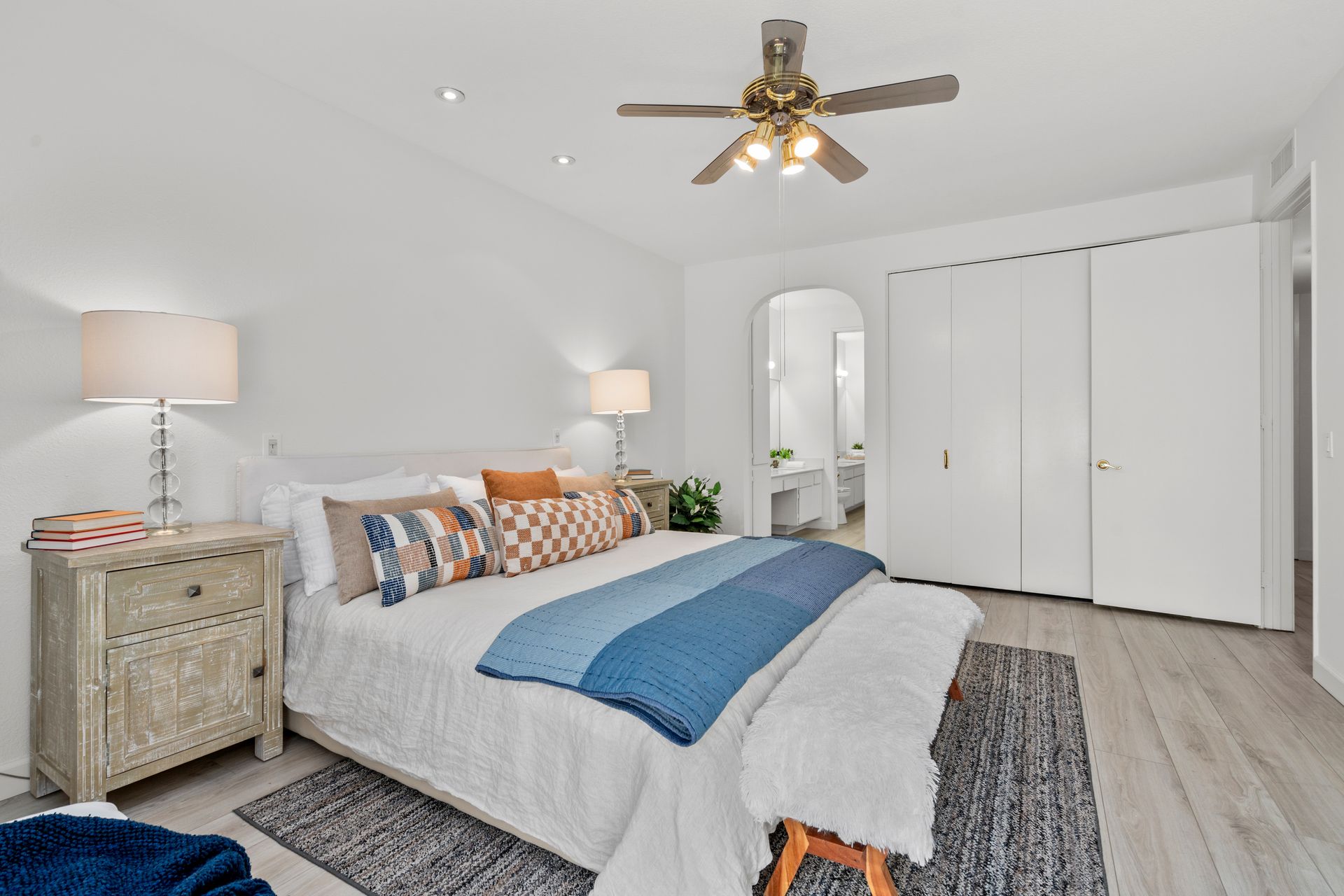 Welcome to Encino Park West, a full service luxury building in the heart of Amestoy Estates in Encino. This spacious unique layout is a RARE FIND with three bedrooms. In addition, this unit has three bathrooms! The large primary ensuite bedroom has an oversized closet. The primary bathroom includes a deep relaxing bathtub as well as a standup shower. The living room is open and adjoins a dining area and an outside patio to relax and enjoy your morning coffee. The remodeled, state-of-the-art kitchen is appointed with quartz countertops, stainless steel appliances, including a LG full size washer/dryer. There is modern spacious cabinetry and an abundance of storage. The associations amenities include 24/7 front desk (concierge) security to assist owner's guests upon arrival and receive packages, etc. There is a large elegant lobby entrance, secure two space garage parking, a pool and spa, fully equipped gym and sauna, secure mail room, as well as a recreation/library and card room with a full kitchen. The HOA monthly fee includes desk, concierge, cable, internet, trash, water and earthquake insurance.