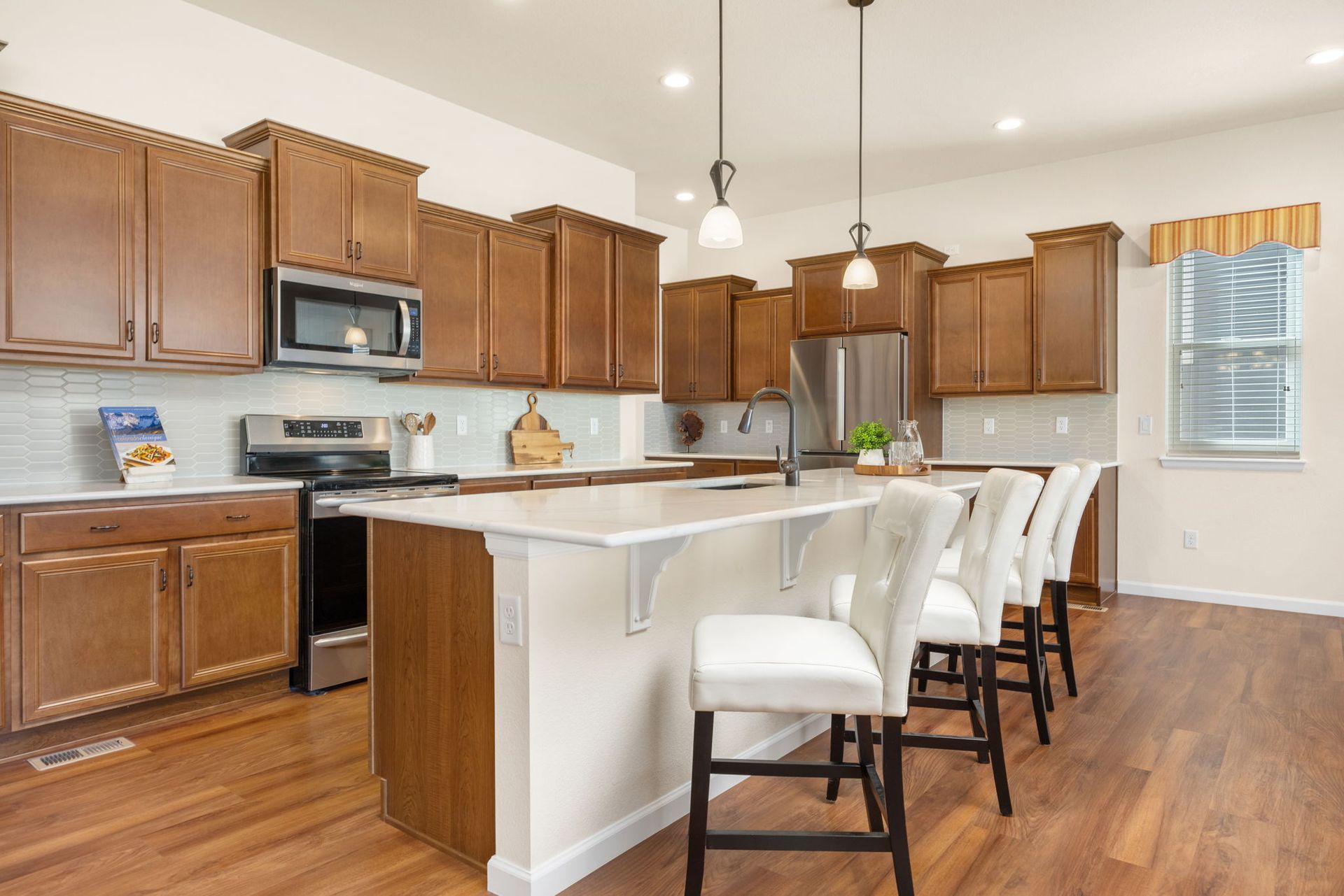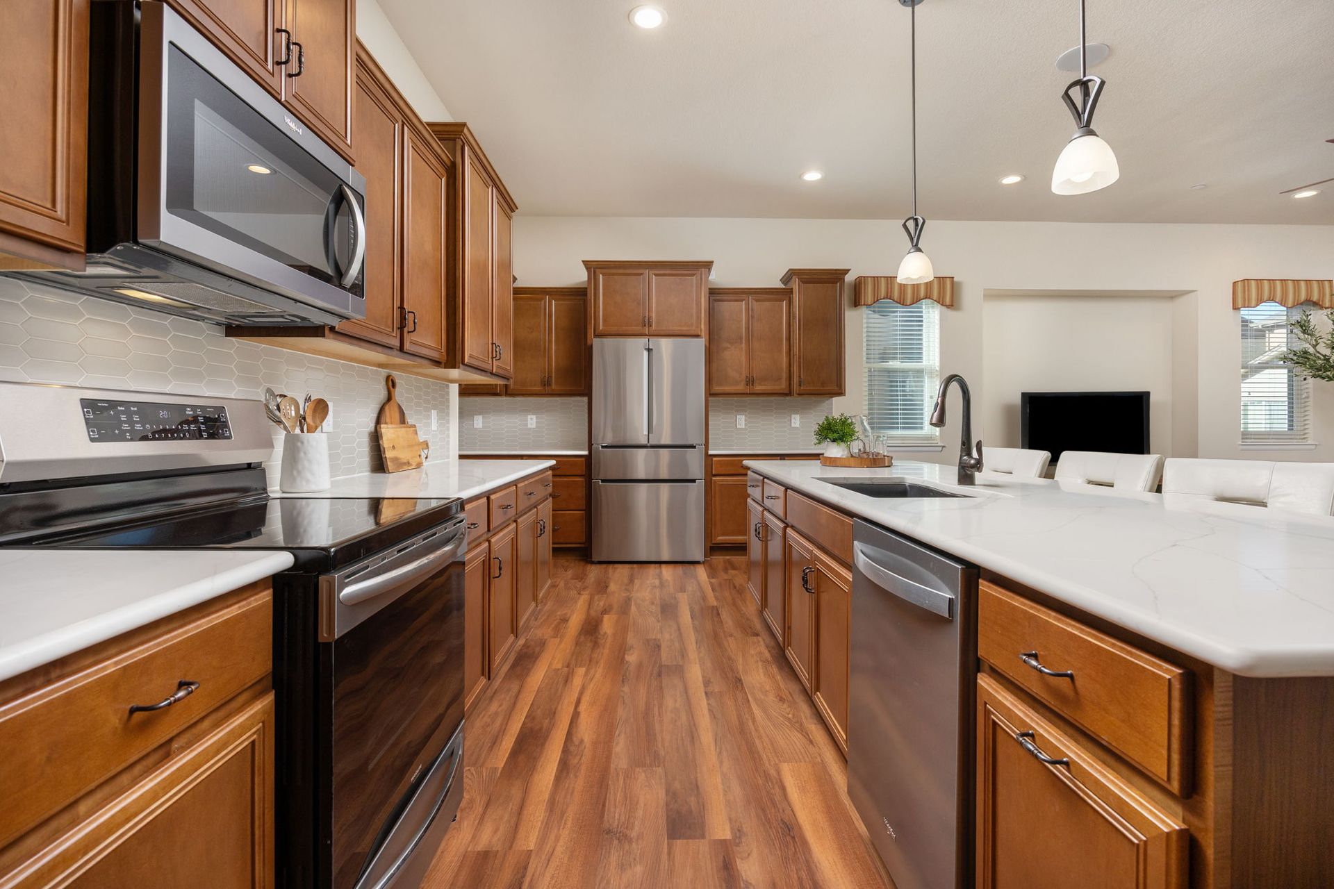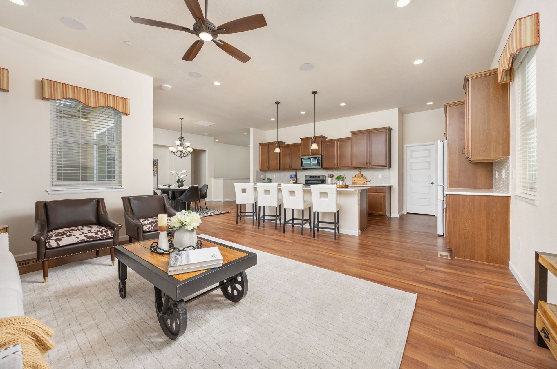 Like New, Exquisitely Maintained Ranch home in a great location. MANY UPGRADES make this home both functional & EFFICIENT - all upgrades including a SOLAR SYSTEM, were applied by sellers who are original owners - see Special Design Features for more detail!! Relax on the front porch & enjoy wine & your friendly neighbors. Upon entering, you'll admire the OPEN FLOOR PLAN & tall ceilings that flow throughout the main level. The gorgeous kitchen comes with numerous upgrades, including an INDUCTION RANGE with convection oven, an island, QUARTZ countertops, numerous CUSTOM cabinets & a pantry. The kitchen opens to the Great Room & Dining area - all with upgraded LUXURY VINYL flooring. Exit outside to your exterior living space - RELAX on the patio & enjoy your private fenced backyard. BONUS FEATURES ON MAIN FLOOR include a guest bedroom, a full bathroom, a flex/office space, clothes washer & dryer & access to the 3-car garage. The SPACIOUS lower level features MORE UNIQUE DESIGNS - a large 31x21 open rec room for gatherings/games, a 9x9 bar with custom cabinets, a 17x15 crafts room, a 15x9 flex room, a bathroom & storage. 495 W 128th is a SPECIAL, UPGRADED & LOVED HOME.