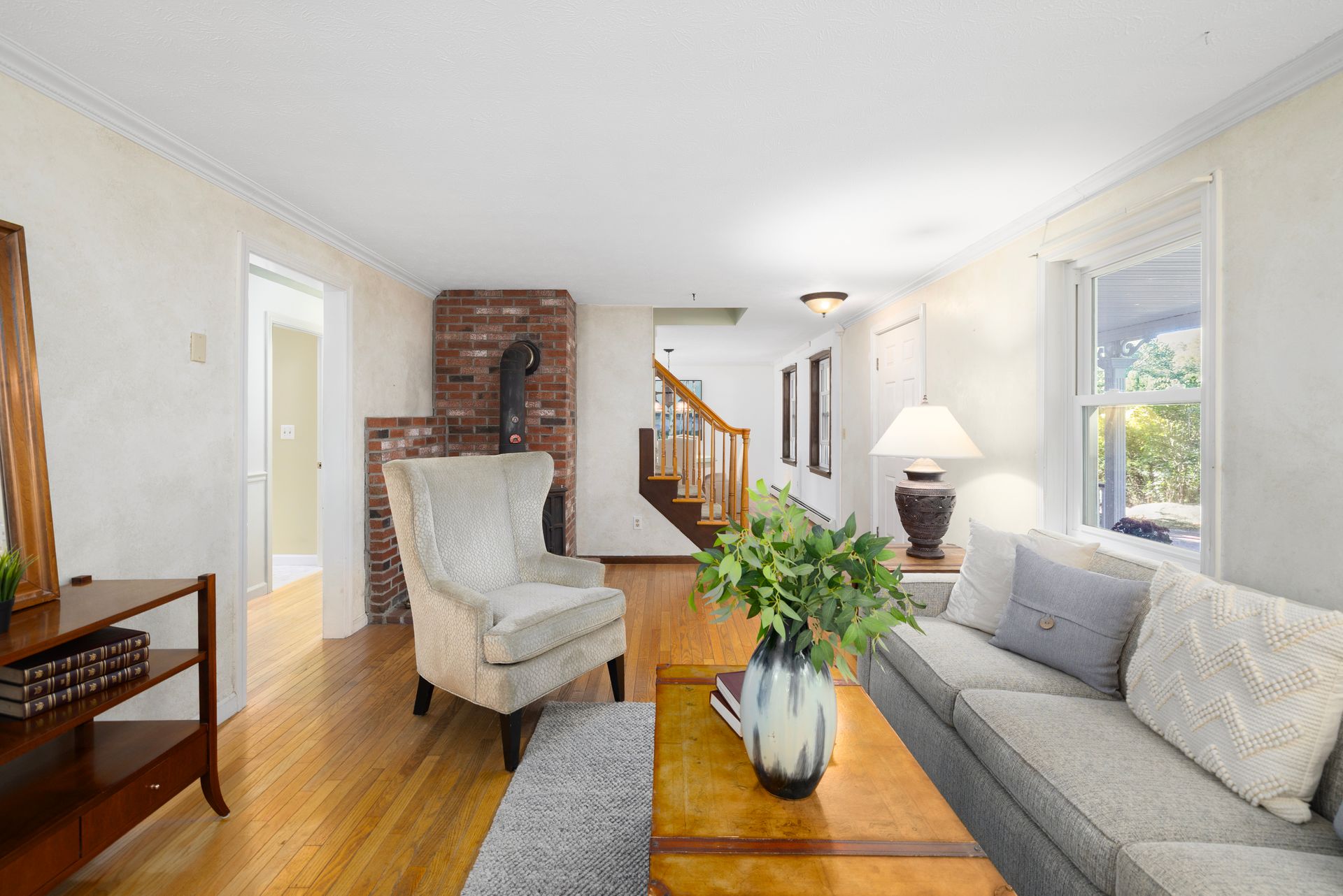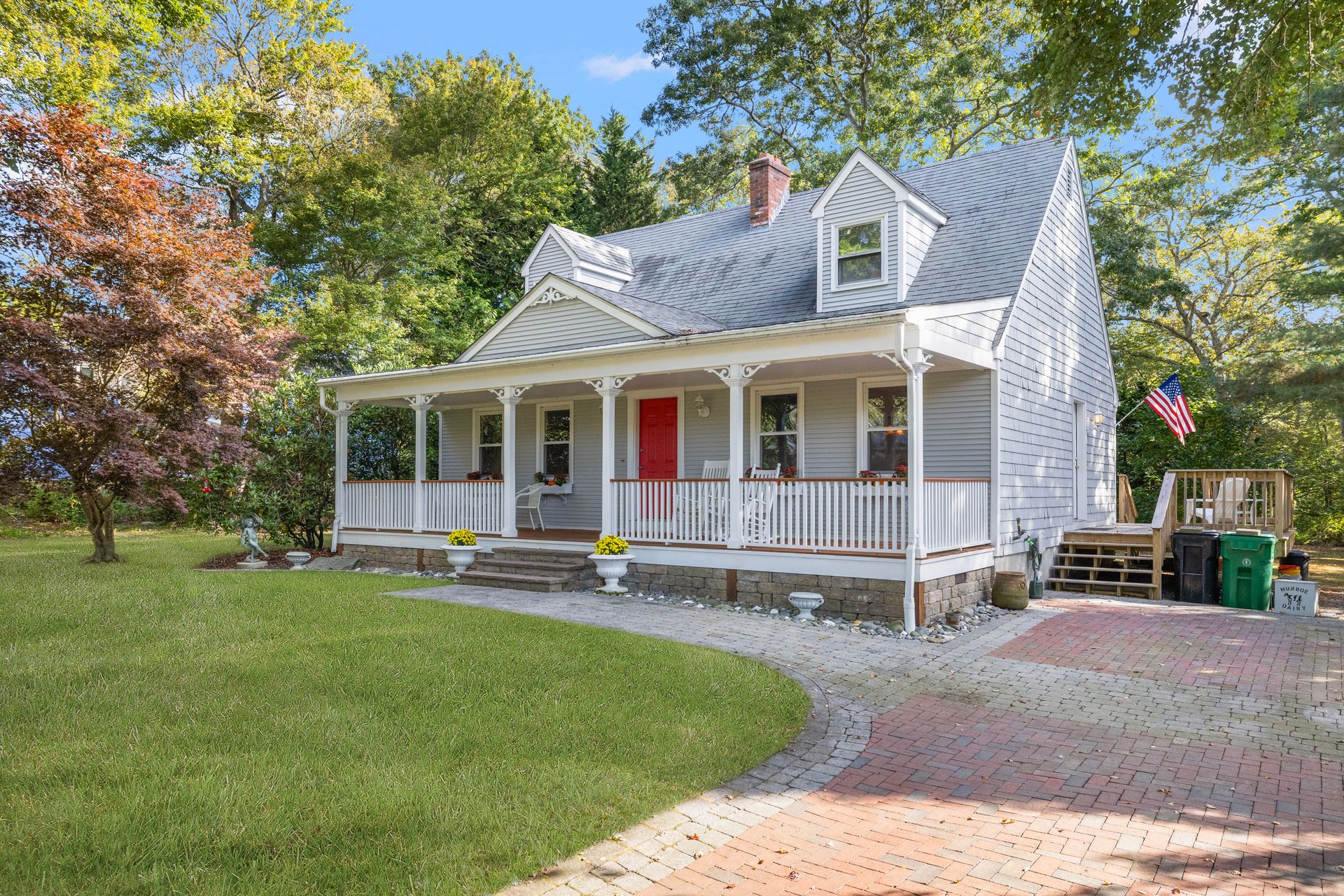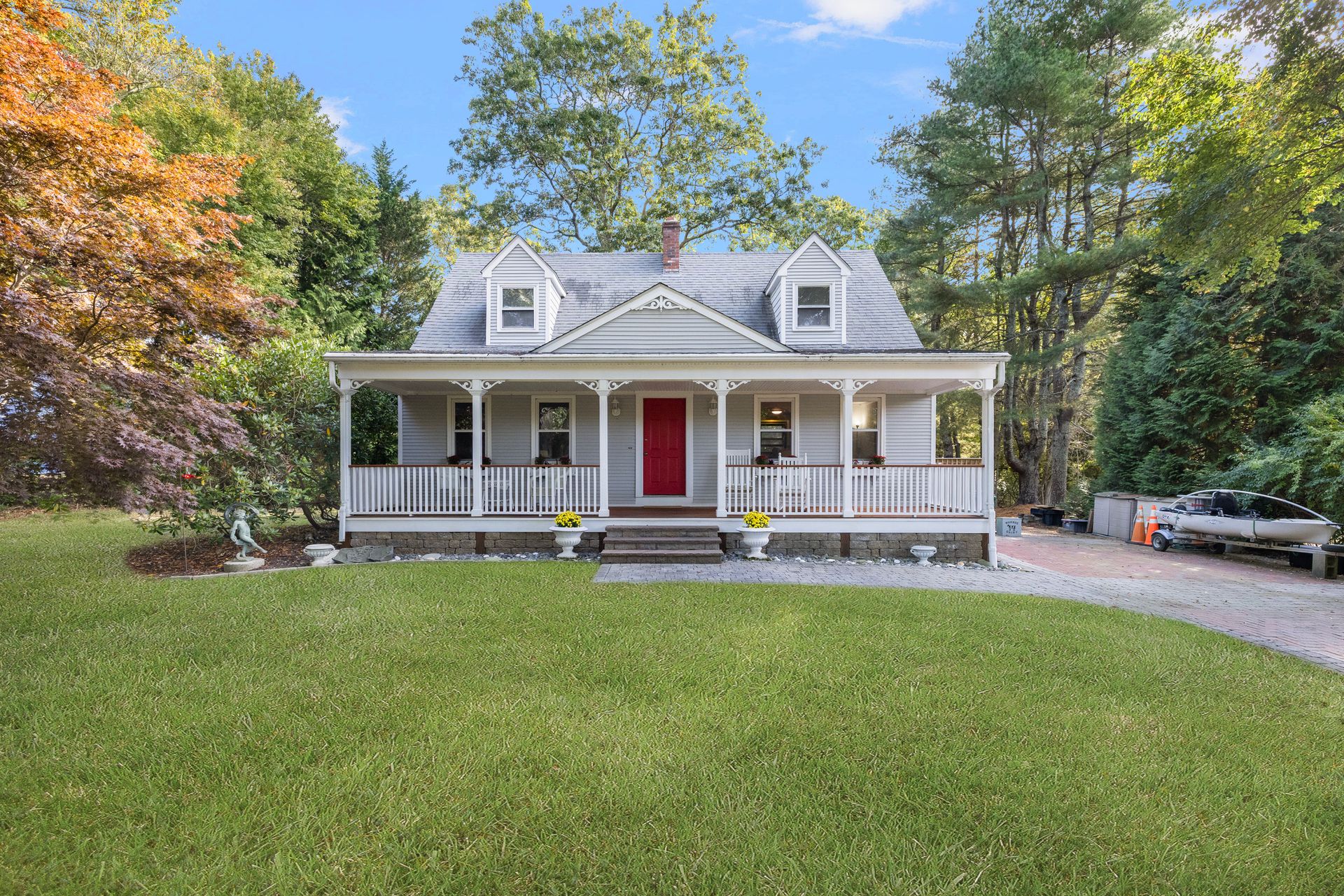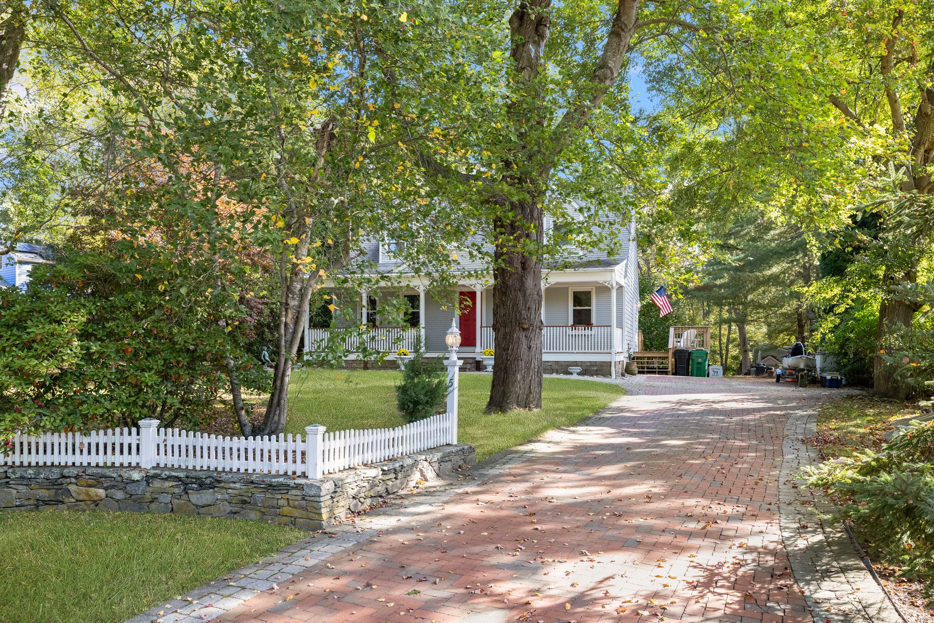 Set on a quiet cul-de-sac in the desirable Old South Farm neighborhood, this Cape showcases classic American architectural details and a welcoming front porch. Surrounded by mature trees and established landscaping, a paved brick driveway sets the stage while thoughtful improvements enhance both beauty and function. Inside, oak hardwood floors, crown moldings, and a wood stove add warmth and character. The updated kitchen features high-end KraftMaid cabinetry, granite countertops, a porcelain farmhouse sink, Brazilian hardwood floors, and select new appliances. The primary bedroom offers cathedral ceilings, a new oversized skylight, and a walk-in closet. A partially finished basement provides flexible space. Recent updates include freshly painted interior and exterior, a new side deck, and a brand-new oil-fired Crowne furnace with on-demand hot water. This South Kingstown home blends modern upgrades with charm and serene privacy.