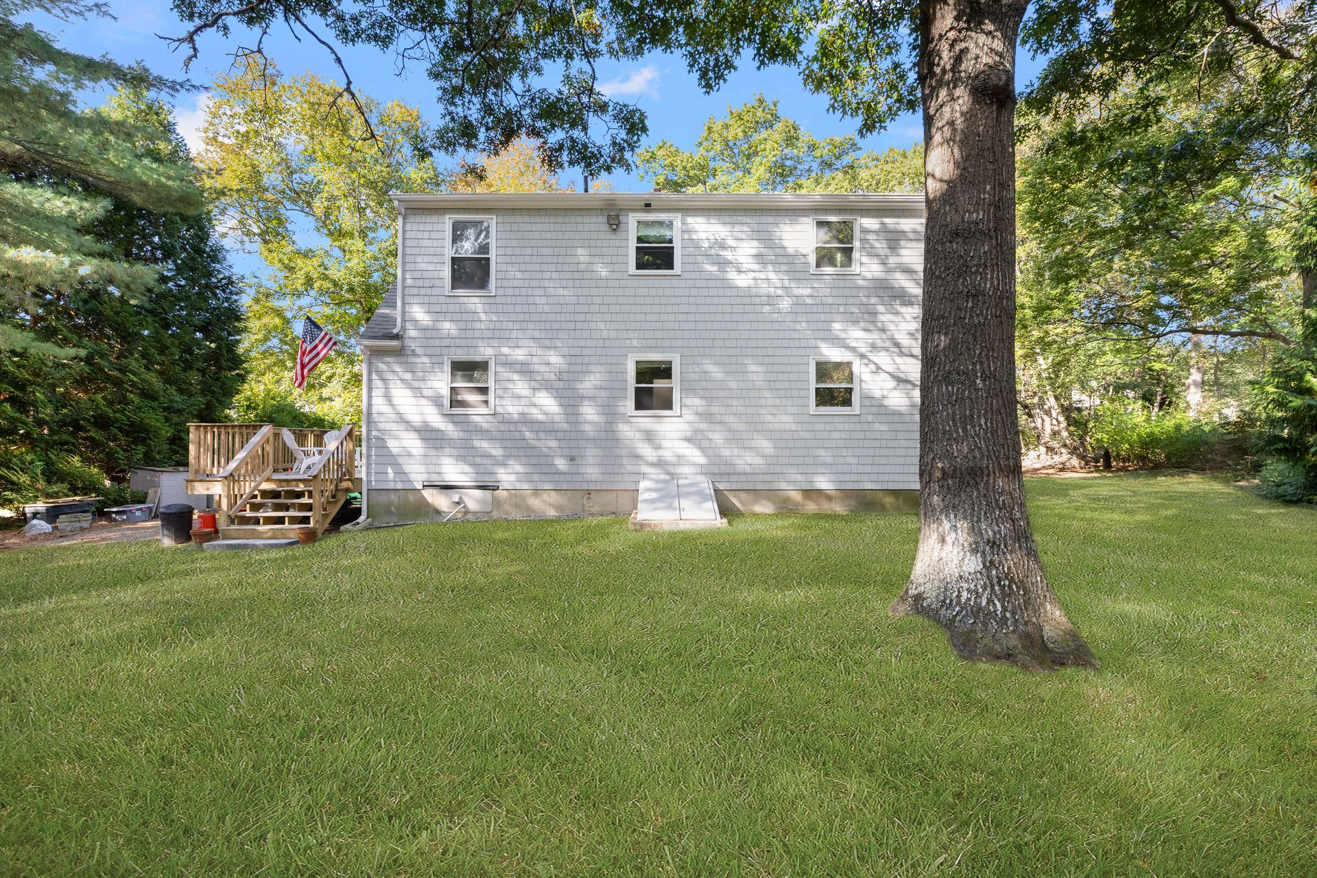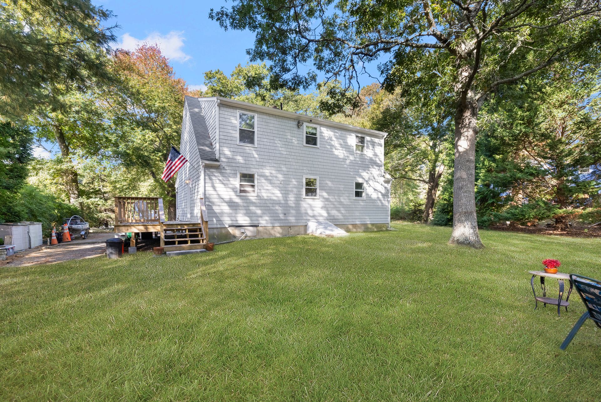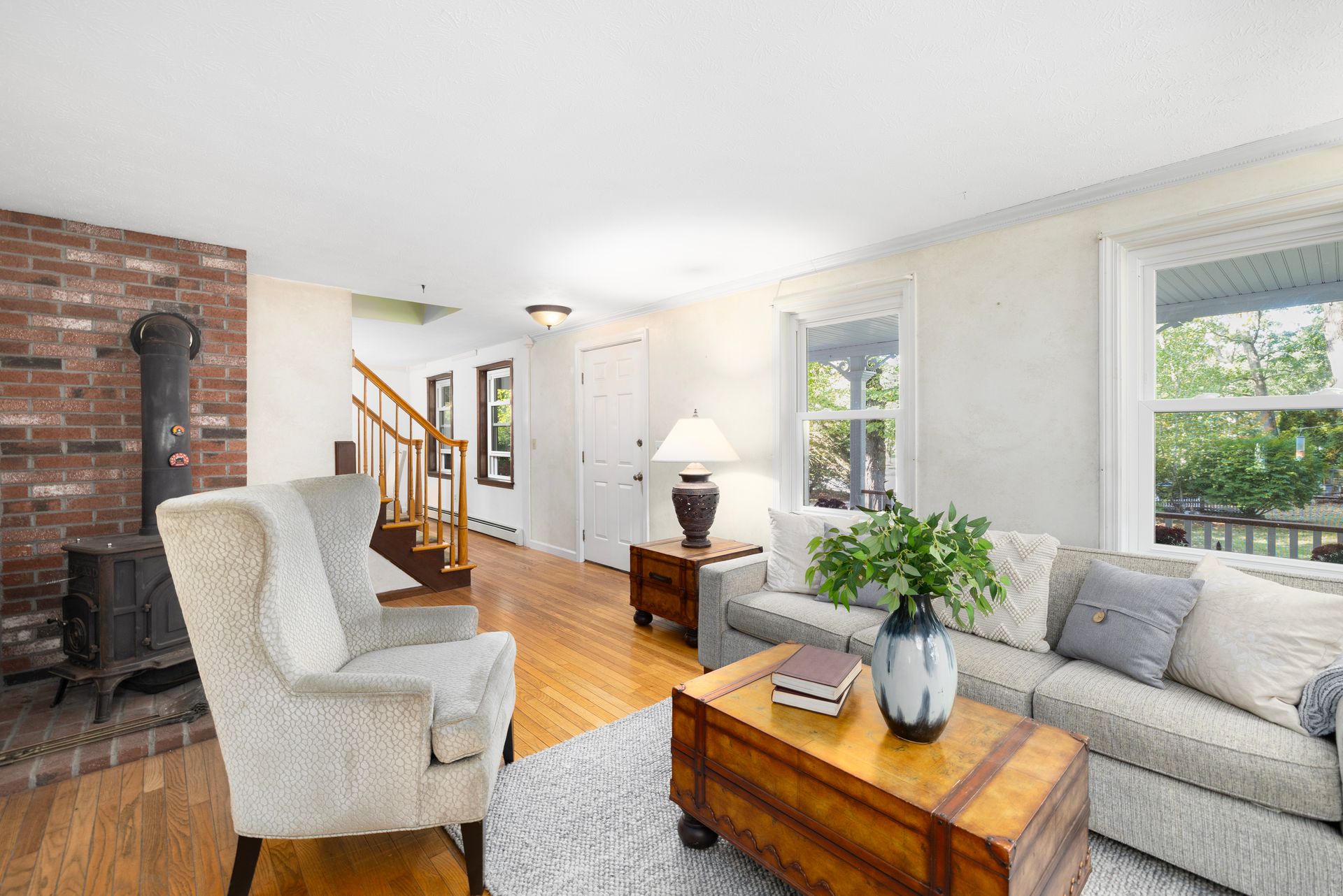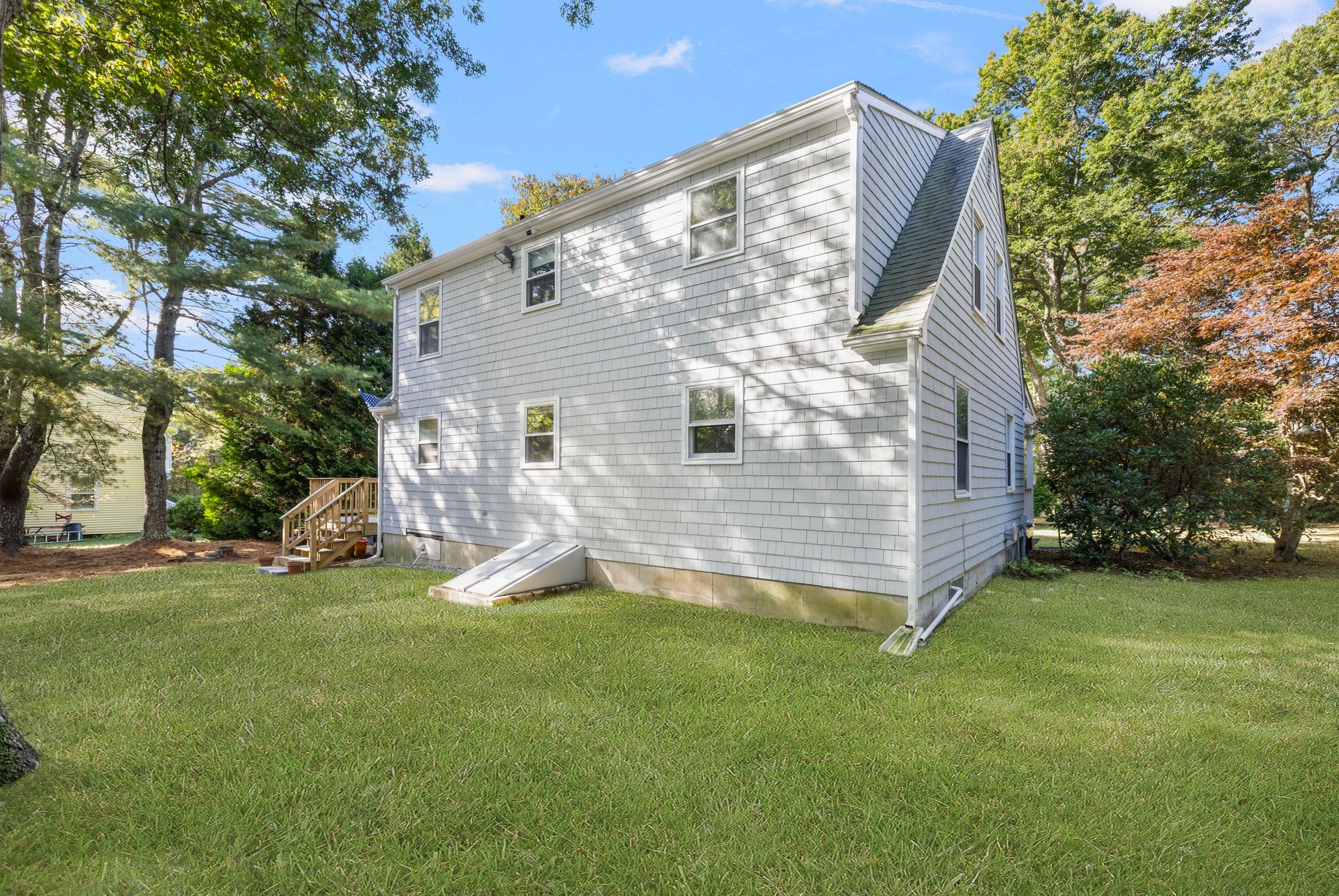 Set on a quiet cul-de-sac in the desirable Old South Farm neighborhood, this Cape showcases classic American architectural details and a welcoming front porch. Surrounded by mature trees and established landscaping, a paved brick driveway sets the stage while thoughtful improvements enhance both beauty and function. Inside, oak hardwood floors, crown moldings, and a wood stove add warmth and character. The updated kitchen features high-end KraftMaid cabinetry, granite countertops, a porcelain farmhouse sink, Brazilian hardwood floors, and select new appliances. The primary bedroom offers cathedral ceilings, a new oversized skylight, and a walk-in closet. A partially finished basement provides flexible space. Recent updates include freshly painted interior and exterior, a new side deck, and a brand-new oil-fired Crowne furnace with on-demand hot water. This South Kingstown home blends modern upgrades with charm and serene privacy.