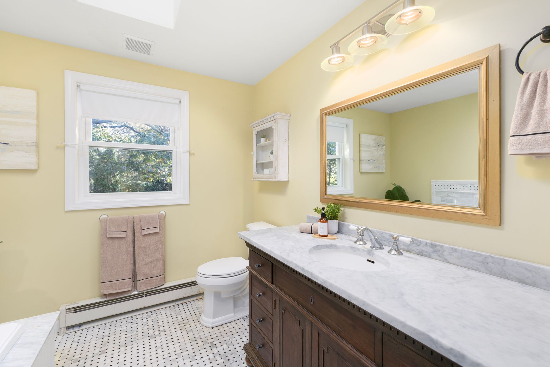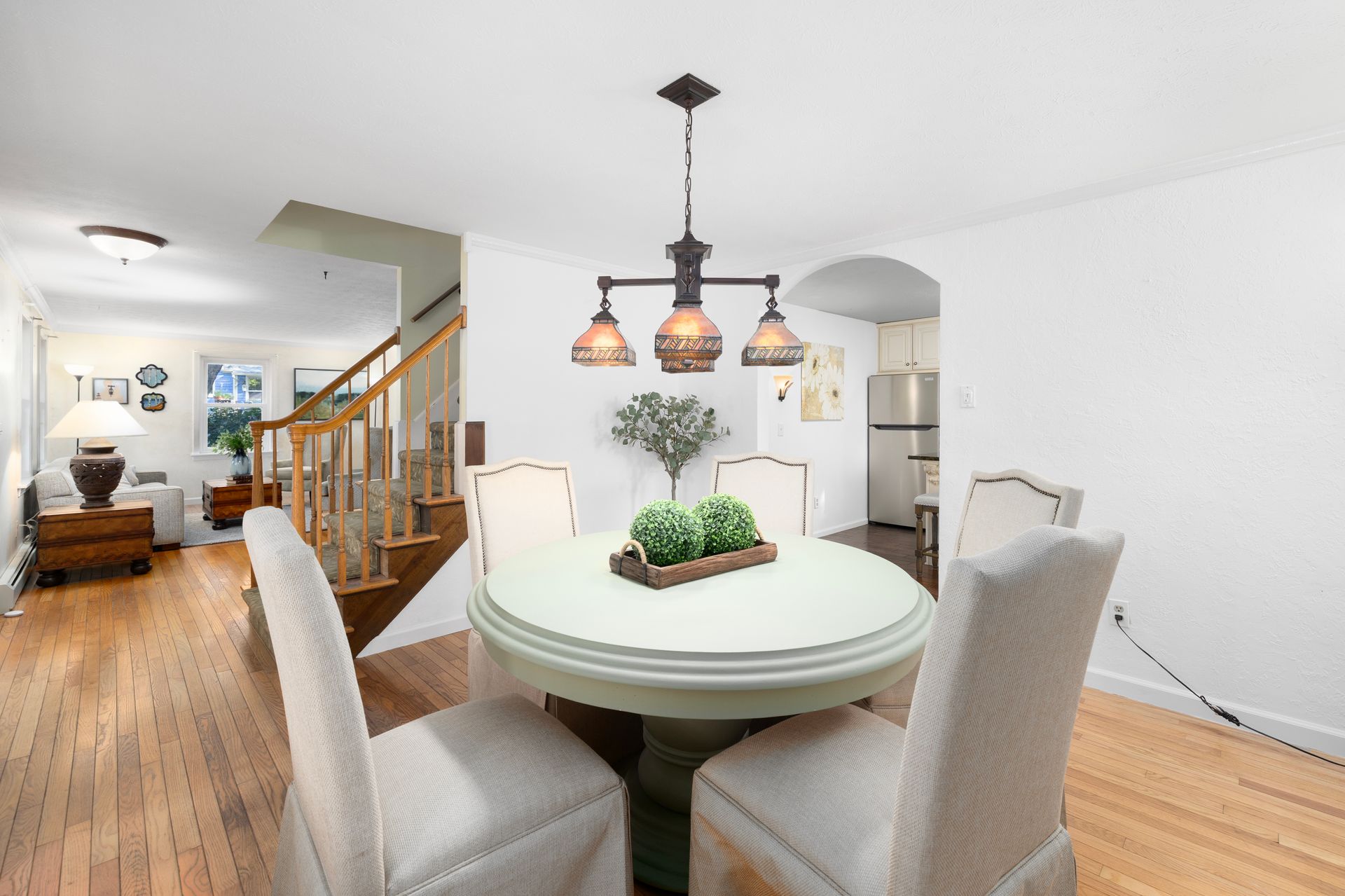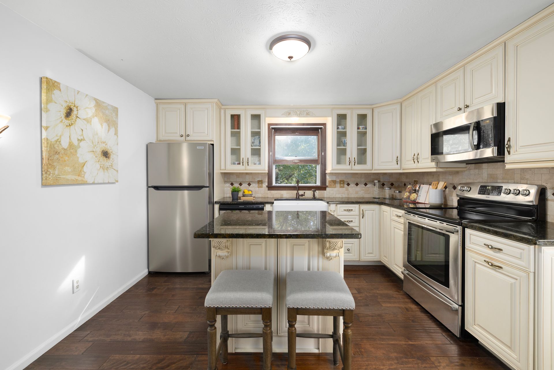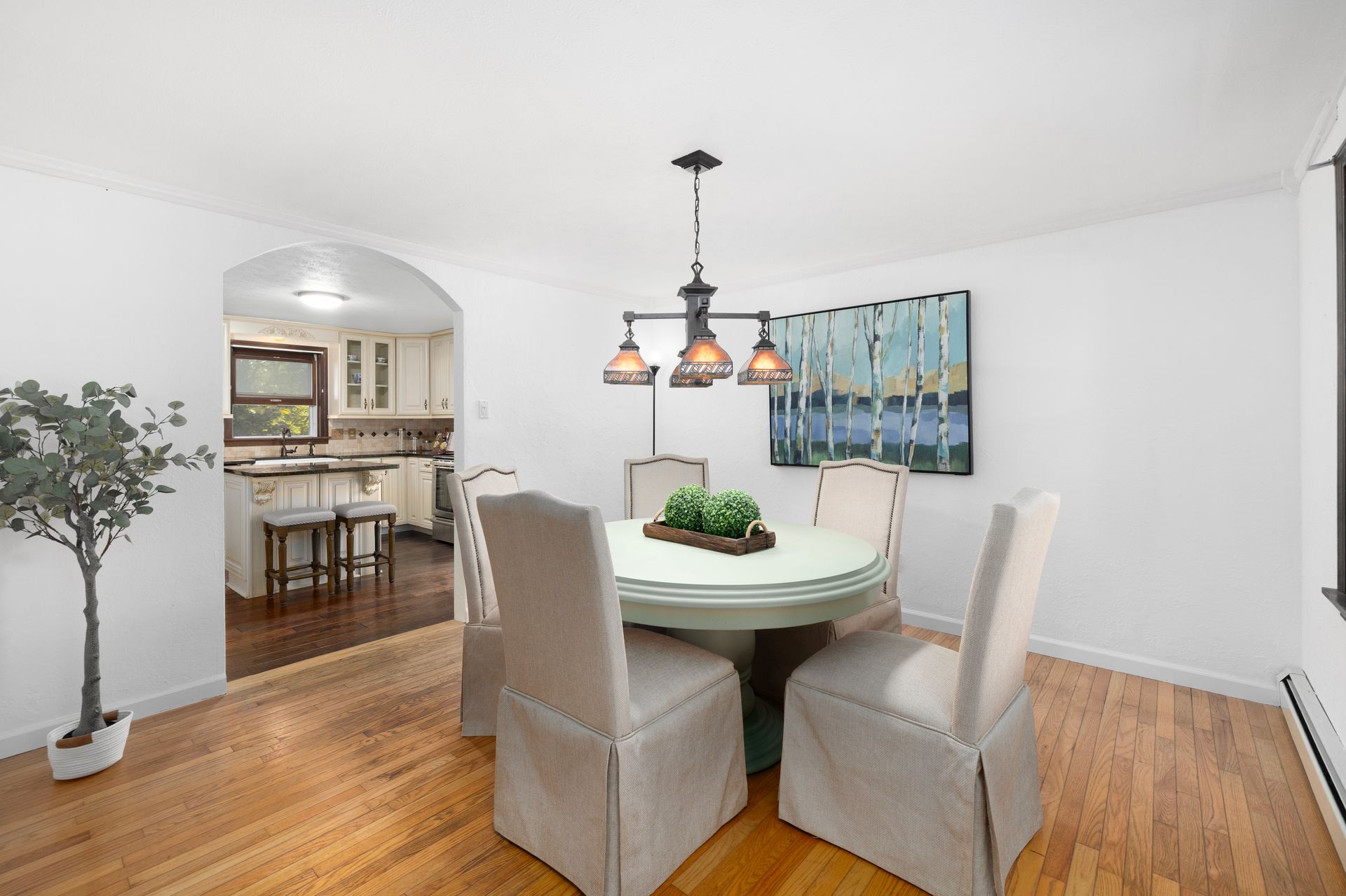 Set on a quiet cul-de-sac in the desirable Old South Farm neighborhood, this Cape showcases classic American architectural details and a welcoming front porch. Surrounded by mature trees and established landscaping, a paved brick driveway sets the stage while thoughtful improvements enhance both beauty and function. Inside, oak hardwood floors, crown moldings, and a wood stove add warmth and character. The updated kitchen features high-end KraftMaid cabinetry, granite countertops, a porcelain farmhouse sink, Brazilian hardwood floors, and select new appliances. The primary bedroom offers cathedral ceilings, a new oversized skylight, and a walk-in closet. A partially finished basement provides flexible space. Recent updates include freshly painted interior and exterior, a new side deck, and a brand-new oil-fired Crowne furnace with on-demand hot water. This South Kingstown home blends modern upgrades with charm and serene privacy.