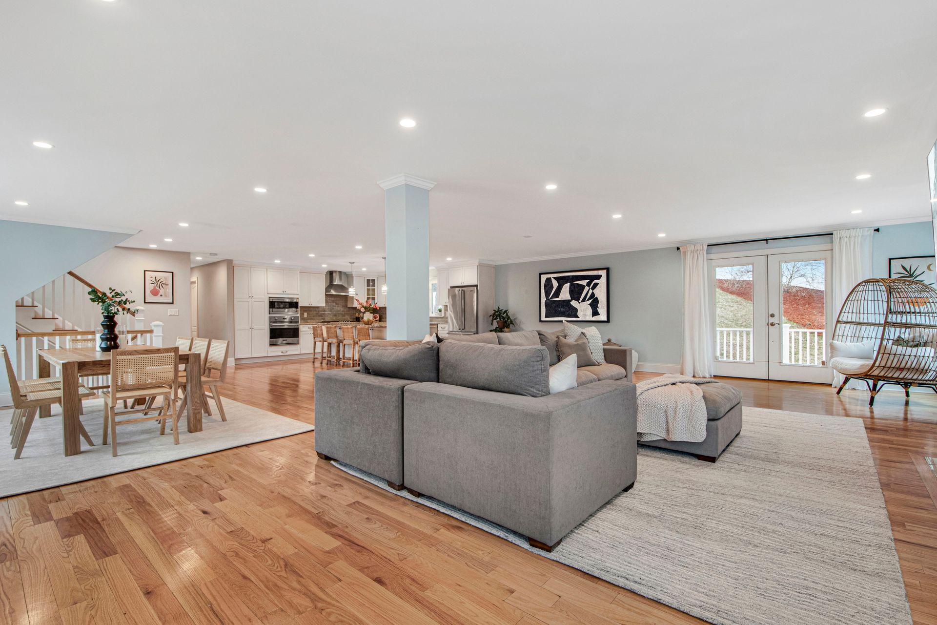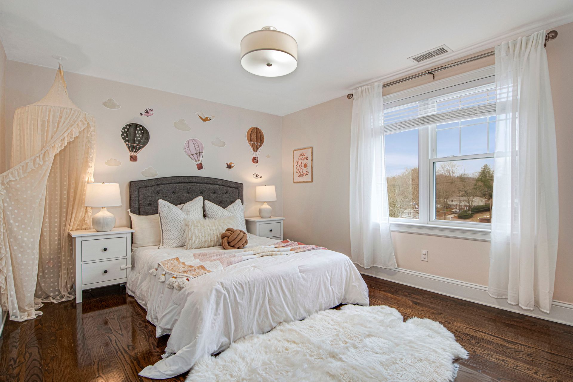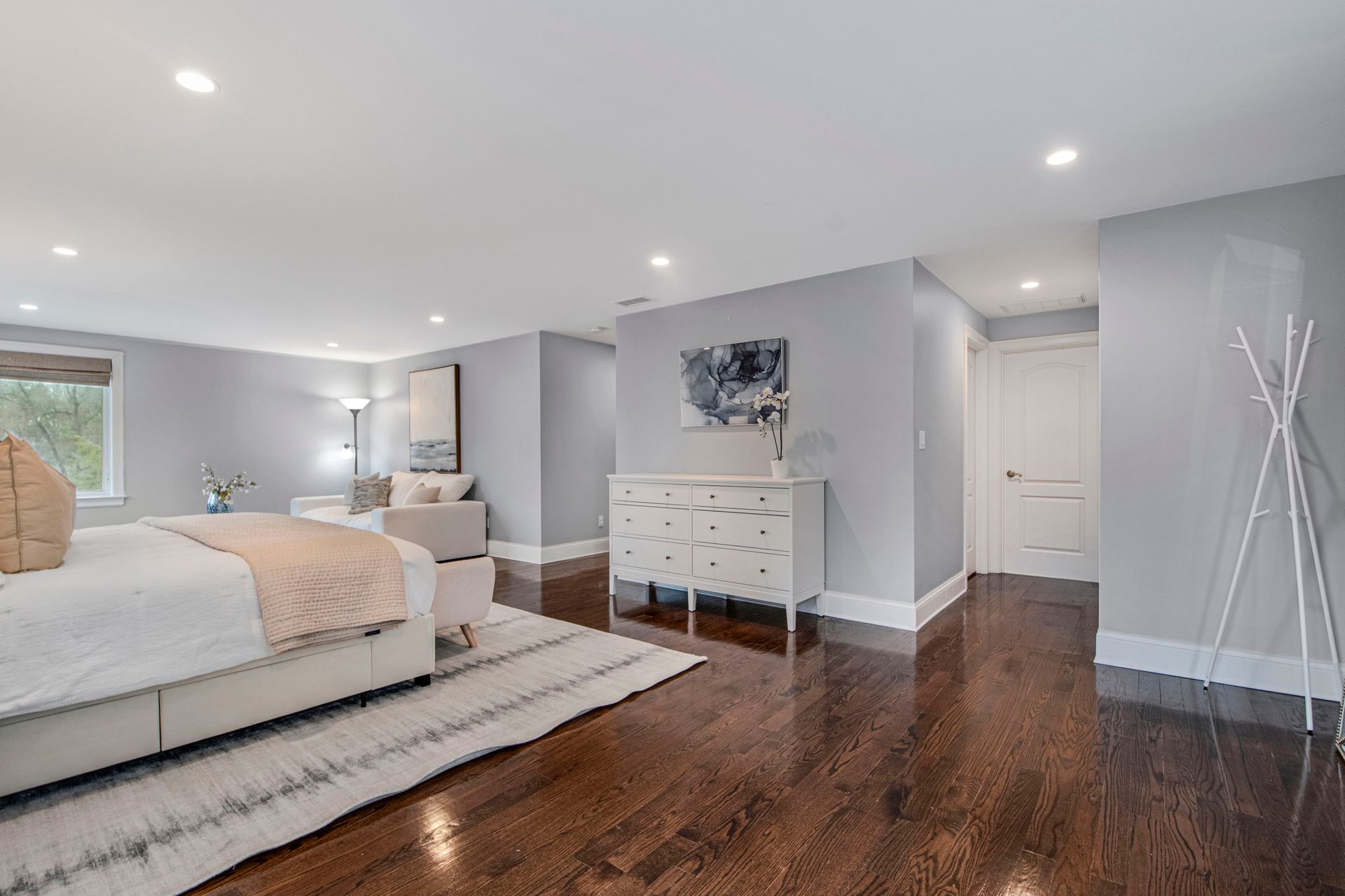 This six-bedroom, three and a half bathroom home offers approximately 4,696 square feet of living space on a 0.41-acre lot. The open floor plan creates a seamless flow, complemented by hardwood floors throughout. The gourmet kitchen features ample counter space, a kitchen island, and ample storage, wonderful for the home chef. The home is equipped with central air conditioning, a fireplace, and a spacious deck and patio, providing comfortable indoor and outdoor living spaces. The primary bedroom boasts a walk-in closet and dual vanity en-suite bathroom, while the additional bedrooms offer ample space and storage. The private yard and potential attic space provide further opportunities for customization. The home also features two garages, offering convenient parking and storage.
