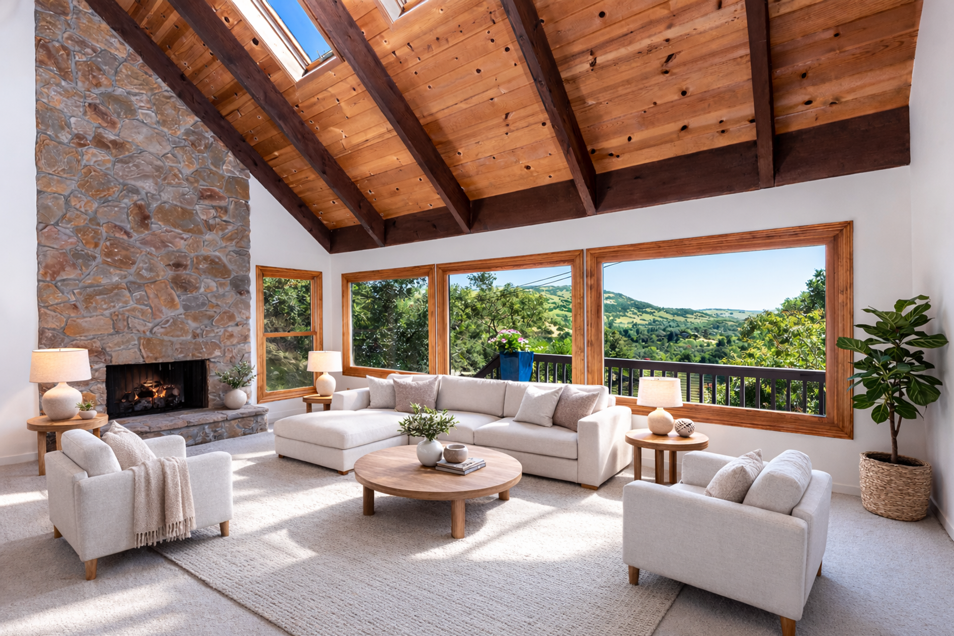 Set above Novato with expansive Mt. Burdell and valley views, 50 Palomino Circle delivers a rare sense of space, privacy, and connection to nature. This beautifully updated 3-bedroom + office, 2.5-bath home lives like a peaceful retreat surrounded by open sky and greenery, yet just minutes from shopping, dining, and everyday conveniences. From the moment you step inside, soaring wood-beam ceilings, skylights, and walls of glass draw in natural light and frame the surrounding landscape. The living spaces feel warm, open, and inviting designed for both quiet evenings at home and effortless entertaining. French doors off the dining area open to a spacious view deck, where mornings begin with coffee in the sun and evenings wind down with sunset skies or a soak in the hot tub under the stars. The thoughtfully designed layout features a main-level primary suite, offering comfort, privacy, and ease of living. The updated kitchen showcases custom cabinetry, stone countertops, and ample storage, flowing seamlessly into the dining and living areas to create a natural gathering space at the heart of the home. An additional office provides flexibility for working from home, creative space, or guest use. Step outside and you're immediately connected to nature, with miles of scenic hiking and riding trails nearby and access to 138 acres of protected open space. Whether you're enjoying a quiet walk, weekend hike, or simply taking in the views from your own deck, the setting offers a daily sense of escape. Wild Horse Valley residents enjoy resort-style amenities including a community pool, tennis and basketball courts, bocce ball, and a welcoming clubhouse supporting an active and social lifestyle. Located within the highly regarded Pleasant Valley School and San Marin High School districts, this home combines natural beauty, comfort, and convenience in one of Novato's most desirable neighborhoods. A rare opportunity to experience the best of Wild Horse Valley living and an exceptional value for this sought-after community.