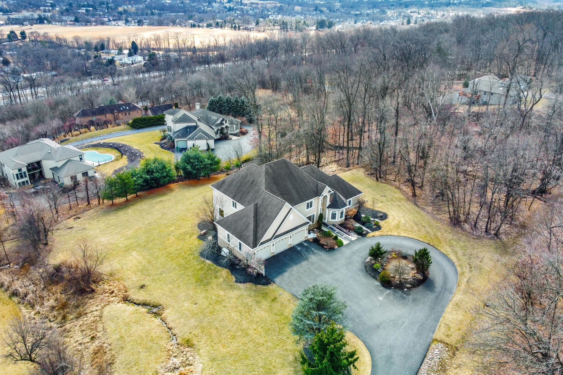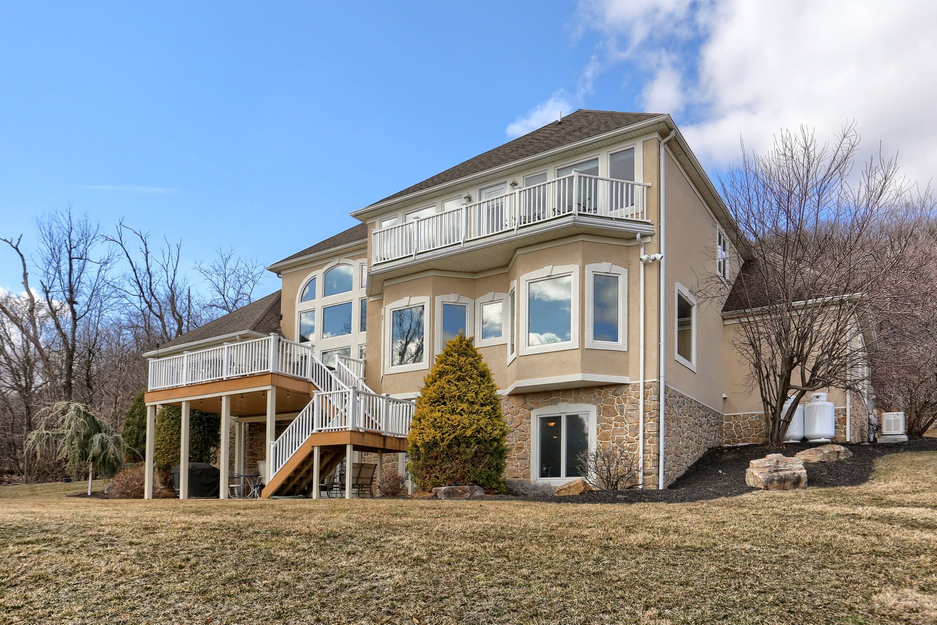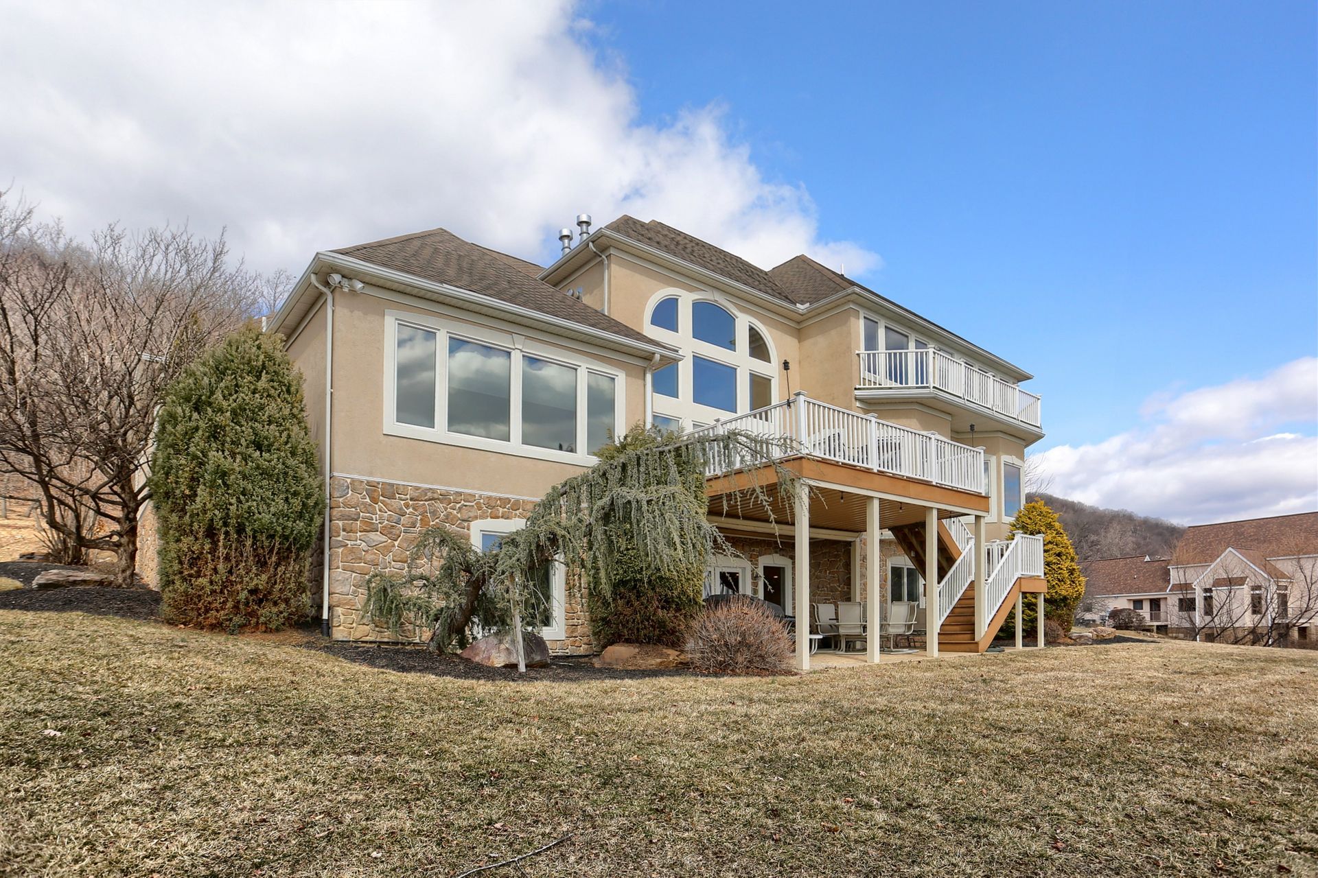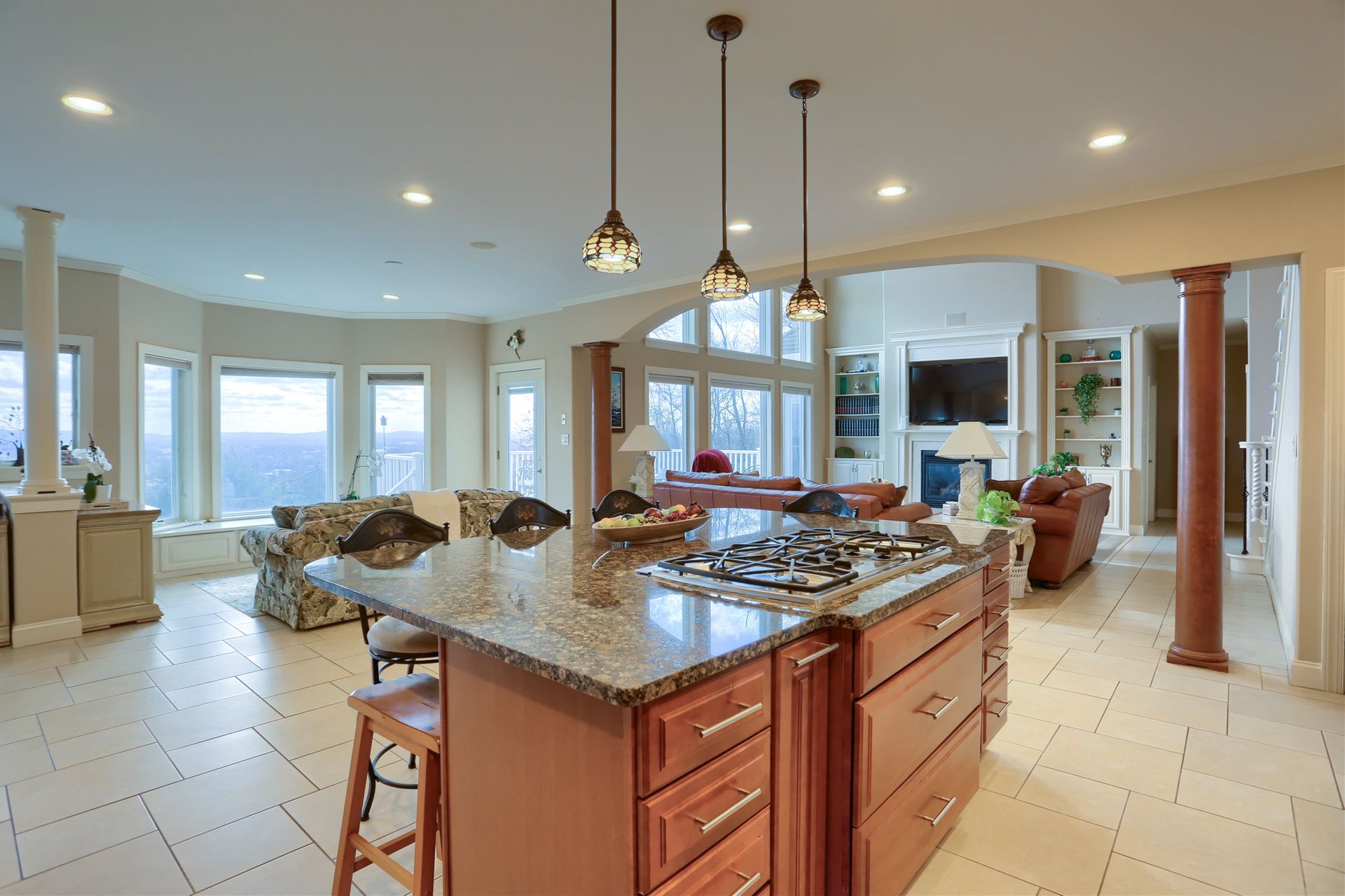 A home with a view! Stunning views of the Susquehanna Valley are showcased from this fabulous River Bend Estate. The residence impresses with almost 6000 square feet of living space, including five bedrooms and four and one-half baths. The great room boasts floor-to-ceiling windows, access to the huge deck, a gas fireplace, built-ins and is open to the gourmet kitchen with tile, granite, stainless appliances an expansive center island, sitting room and dining area. The first-floor primary suite is a true retreat with a tray ceiling, gas fireplace, two walk-in closets, access to the deck and a luxurious ensuite bath highlighted with a walk-in tiled shower. The finished, open lower level offers a full kitchen with granite, an entertainment area, a powder room and access to a big patio area. There is lots more to love including a circular driveway and a three-car garage.