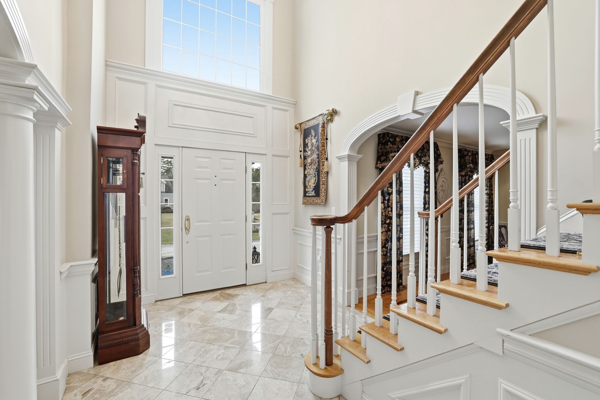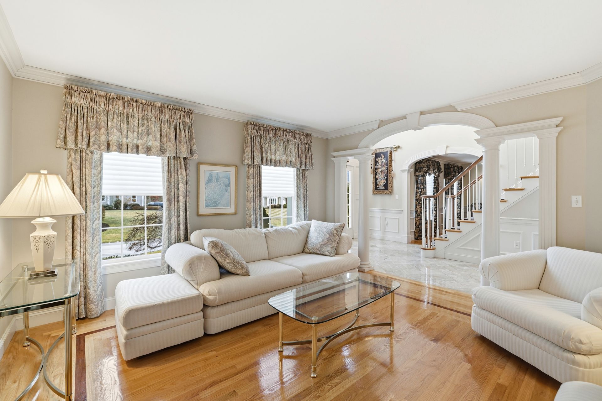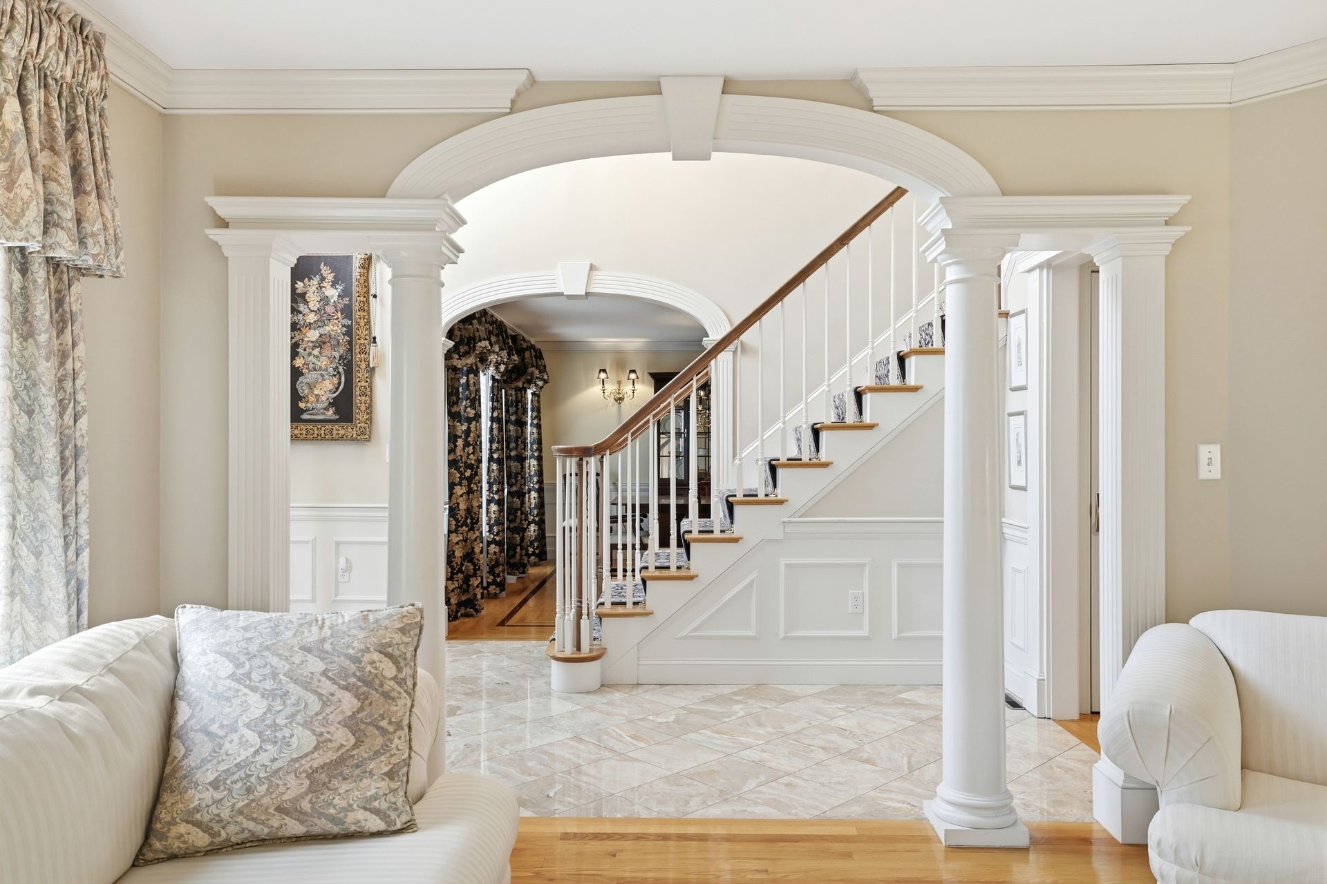 Welcome home to this captivating 4‑bedroom, 2½‑bath Colonial in the exclusive Farmside Drive neighborhood, offering beautifully curated living space at the end of a quiet cul‑de‑sac. From the moment you step inside, the quality and craftsmanship are undeniable. A stunning marble foyer leads into a chef’s kitchen designed to impress, featuring a Sub‑Zero refrigerator, Thermador gas stove, custom cabinetry, and generous prep space. The sun‑filled breakfast area opens seamlessly into a stunning great room with custom built‑ins and a warm fireplace, creating an ideal setting for both entertaining and everyday comfort. The first floor also offers a spacious dining room, formal living room, laundry and a well‑appointed half bath. Upstairs, you’ll find four bedrooms and two full baths, including a luxurious primary suite with a serene sitting area, two walk‑in closets, and a spa‑inspired en‑suite bath. Thoughtful details elevate the home throughout, including a custom wine closet, elegant French doors and more. Outside, impeccably maintained grounds supported by a well‑fed irrigation system ensure year‑round beauty and a powered shed. This home is a true statement of luxury, comfort, and exceptional living.