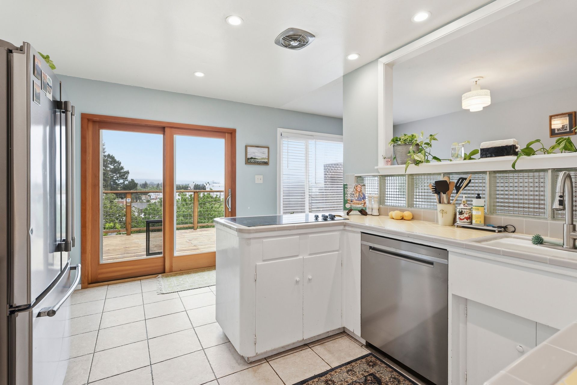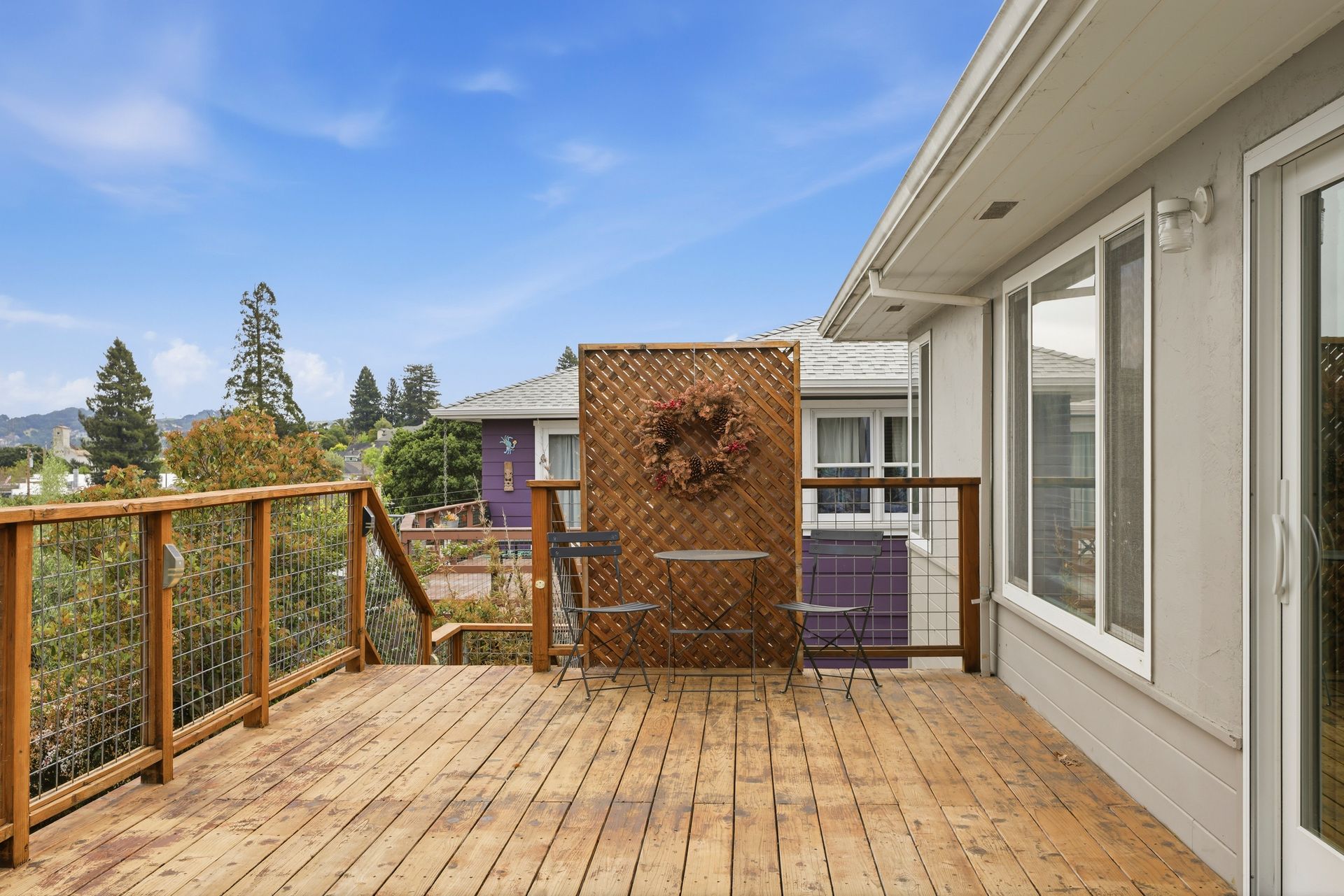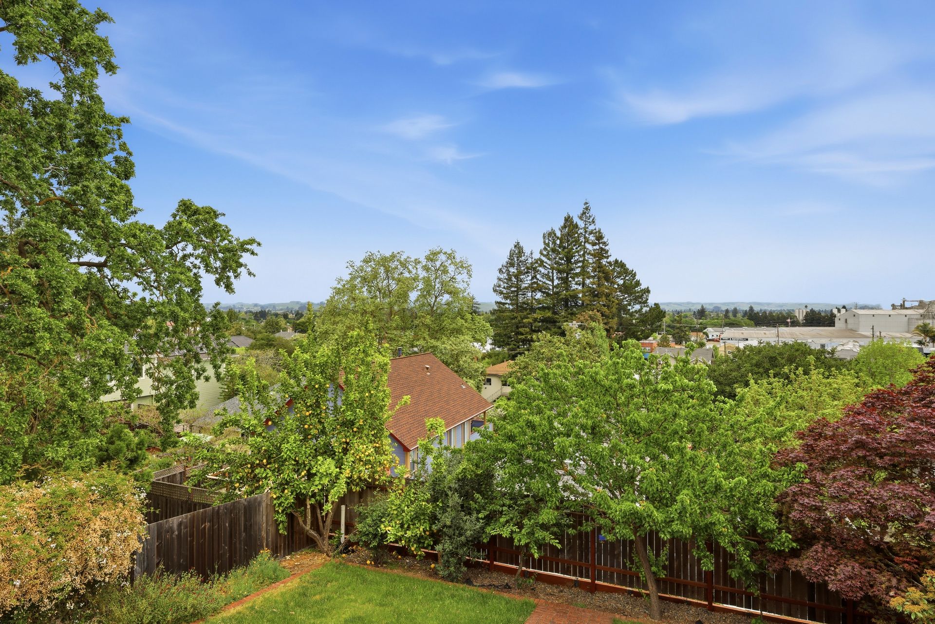 Beautiful views of Petaluma and the vintage charm of a well-cared for home built in 1955 with 2 bedrooms, 1.5 bathrooms, 2,099 square feet of living space (per iGuide) located on a 5,300 square foot lot close to downtown Petaluma. Open living room with fireplace, built-in book shelves and a formal dining room with city views, two large bedrooms and hardwood floors. Bright sunny kitchen with vintage charm, stainless-steel appliances, a breakfast nook and a sliding glass door leading to a deck with incredible views and access to the backyard. Features include: HUGE room downstairs (could be additional bedrooms) with backyard access leading to a covered brick patio, plus an additional room off the kitchen, large yard with storage shed, air-conditioning, owned solar system installed in 2019, dual pane windows, less than 1-year-old composition shingle roof, reverse osmosis water filter, ceiling fans, fiber internet, recessed lighting, window blinds, multiple storage closets and one-car garage. Mature landscaping, lawn area, brick patio and retaining wall, putting green, storage shed and a covered porch plus a large deck on the upper level with incredible views! Close to downtown Petaluma, shopping, restaurants, parks, schools, SMART Train, Sonoma Coast, wineries, Helen Putnam Regional Park and all that Sonoma County offers!