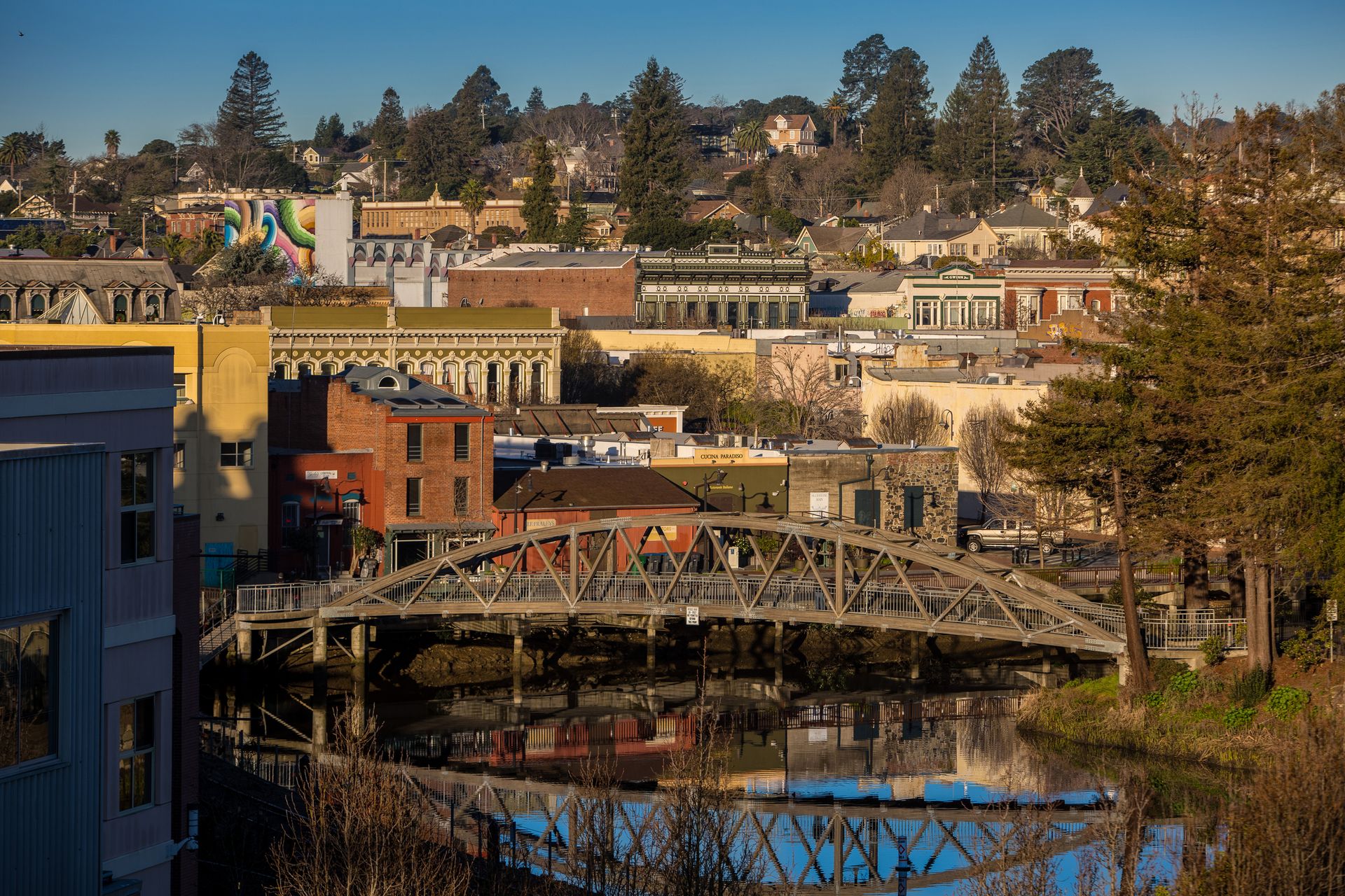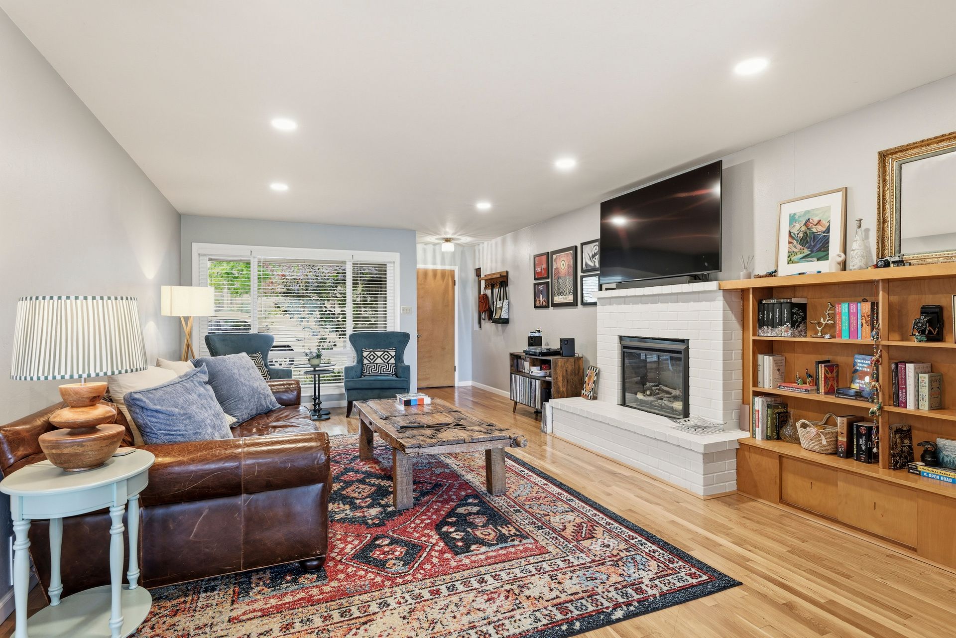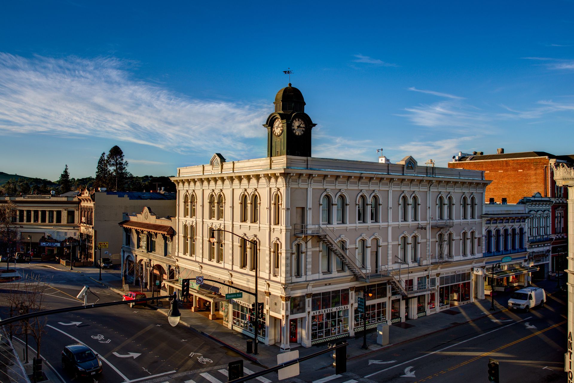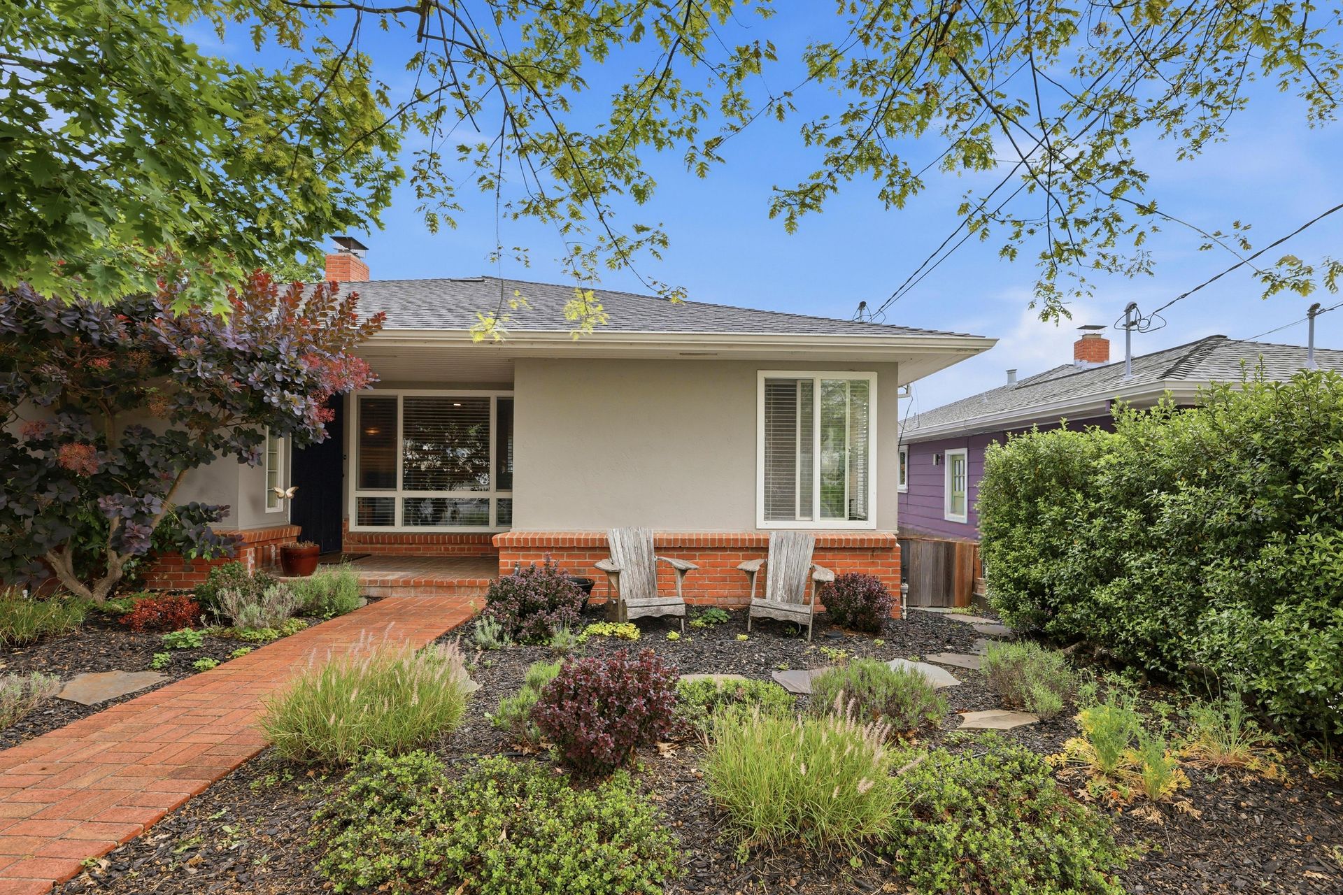 Beautiful views of Petaluma and the vintage charm of a well-cared for home built in 1955 with 2 bedrooms, 1.5 bathrooms, 2,099 square feet of living space (per iGuide) located on a 5,300 square foot lot close to downtown Petaluma. Open living room with fireplace, built-in book shelves and a formal dining room with city views, two large bedrooms and hardwood floors. Bright sunny kitchen with vintage charm, stainless-steel appliances, a breakfast nook and a sliding glass door leading to a deck with incredible views and access to the backyard. Features include: HUGE room downstairs (could be additional bedrooms) with backyard access leading to a covered brick patio, plus an additional room off the kitchen, large yard with storage shed, air-conditioning, owned solar system installed in 2019, dual pane windows, less than 1-year-old composition shingle roof, reverse osmosis water filter, ceiling fans, fiber internet, recessed lighting, window blinds, multiple storage closets and one-car garage. Mature landscaping, lawn area, brick patio and retaining wall, putting green, storage shed and a covered porch plus a large deck on the upper level with incredible views! Close to downtown Petaluma, shopping, restaurants, parks, schools, SMART Train, Sonoma Coast, wineries, Helen Putnam Regional Park and all that Sonoma County offers!