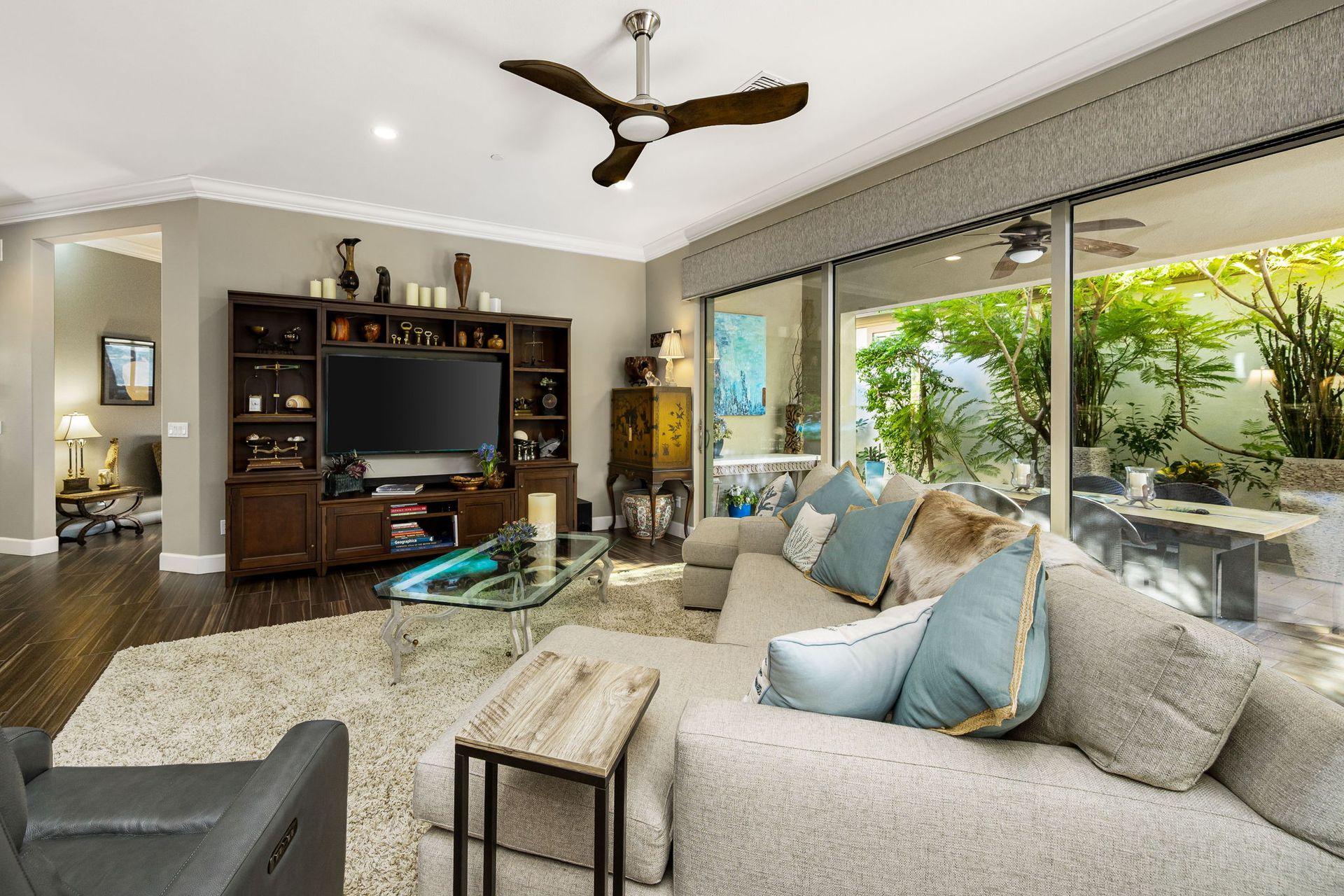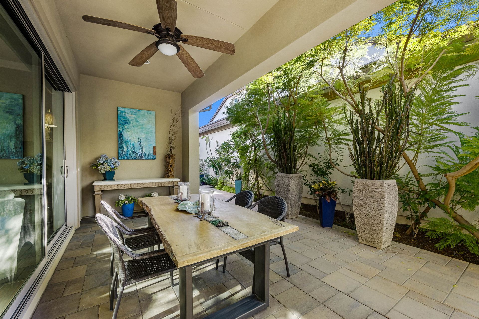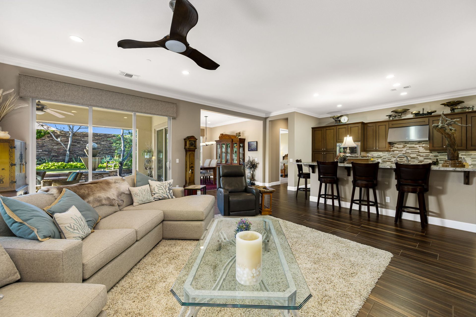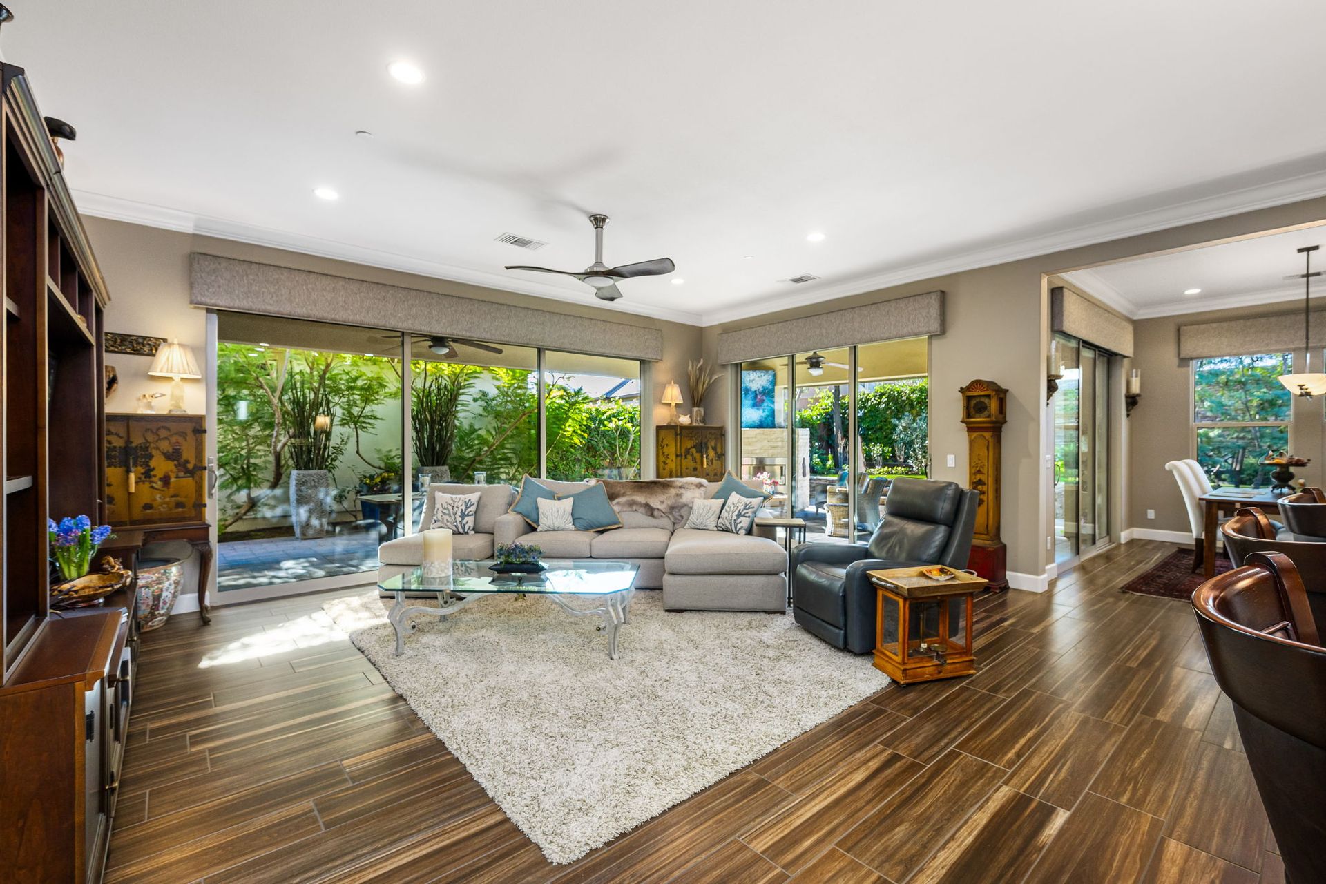 Spectacular upgraded Incantare floor plan with attached two-room Casita with mini kitchen and private entrance, the den/office could be converted to a third bedroom. Located on a premium lot with resort-style living in Trilogy at the Polo Club. This beautiful open floor plan is upgraded to the max, including three rolling walls of glass that offer indoor/outdoor living at its finest. Porcelain tile floors throughout, crown molding, chef-inspired kitchen with a large island with built-in GE Monogram stainless steel appliances, quartz counters with upgraded backsplash, and a large dining room. All bathrooms have upgraded counters and showers, including framed mirrors with upgraded, rooms have designer fans, custom window treatments, soft-close cabinets and drawers, and a tankless water heater. The garage has a Separate A/C system, epoxy floors, storage cabinets, and a workbench. Escape to the mature backyard to enjoy your very own professionally designed indoor-outdoor paradise. Enjoy a wrap-around covered patio with a custom fireplace and misting system. This opportunity encompasses the ultimate desert lifestyle. This Home has Solar, on IID Zero Net Metering program with no electric bill. With its close clubhouse location with no expense spared upgrades, this home stands alone as a singular masterpiece, crafted with precision, intention, and an unwavering commitment to luxury living. Call Michael today for your private showing.