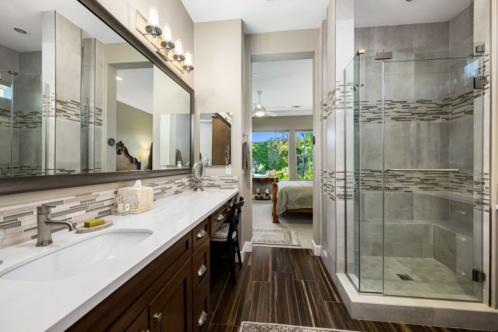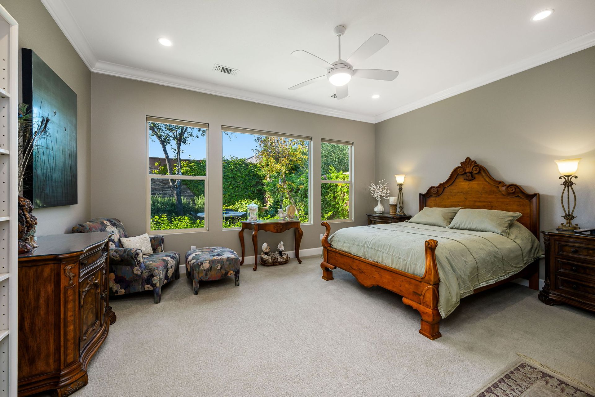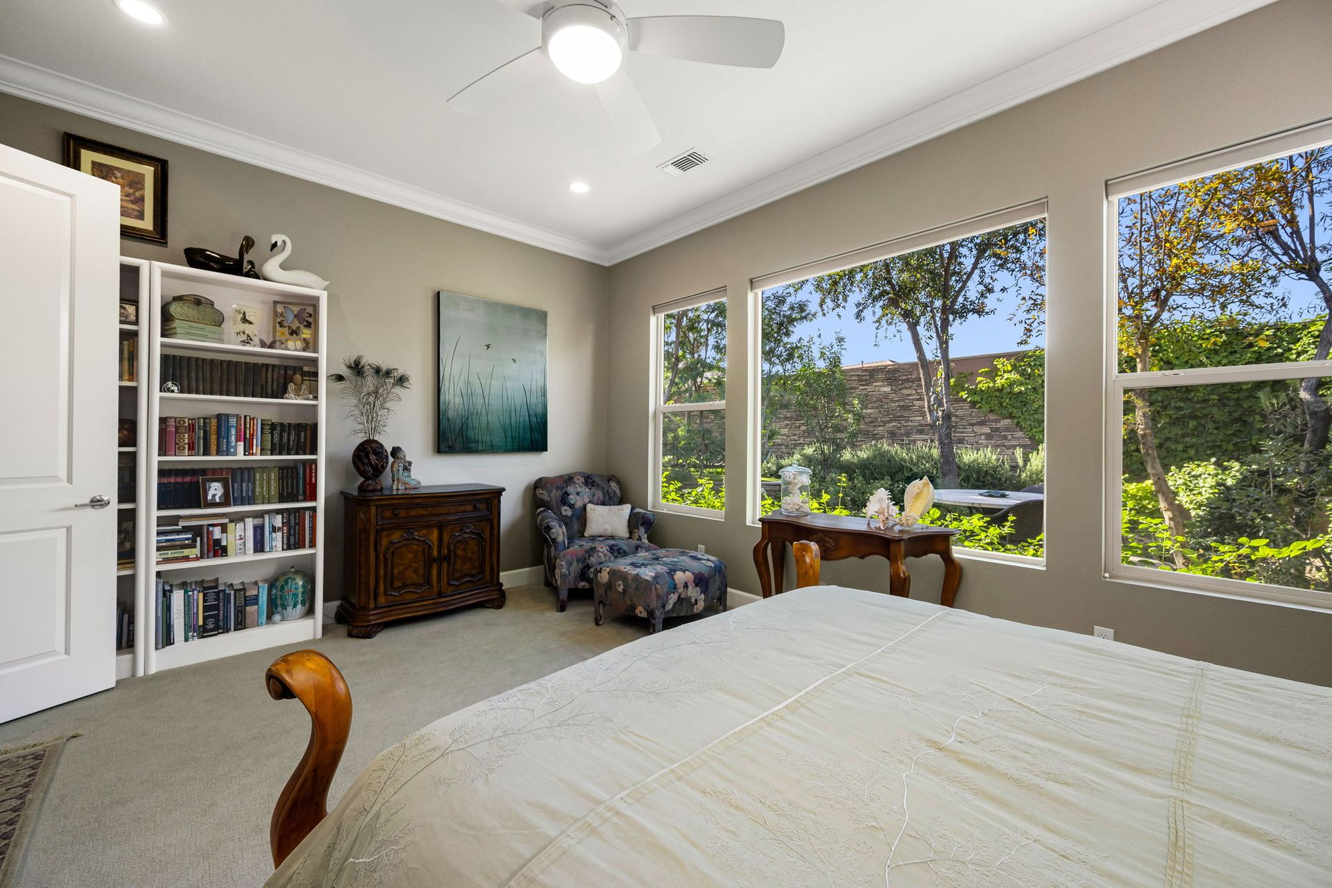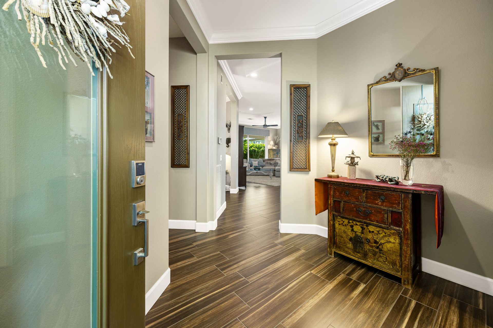 Spectacular upgraded Incantare floor plan with attached two-room Casita with mini kitchen and private entrance, the den/office could be converted to a third bedroom. Located on a premium lot with resort-style living in Trilogy at the Polo Club. This beautiful open floor plan is upgraded to the max, including three rolling walls of glass that offer indoor/outdoor living at its finest. Porcelain tile floors throughout, crown molding, chef-inspired kitchen with a large island with built-in GE Monogram stainless steel appliances, quartz counters with upgraded backsplash, and a large dining room. All bathrooms have upgraded counters and showers, including framed mirrors with upgraded, rooms have designer fans, custom window treatments, soft-close cabinets and drawers, and a tankless water heater. The garage has a Separate A/C system, epoxy floors, storage cabinets, and a workbench. Escape to the mature backyard to enjoy your very own professionally designed indoor-outdoor paradise. Enjoy a wrap-around covered patio with a custom fireplace and misting system. This opportunity encompasses the ultimate desert lifestyle. This Home has Solar, on IID Zero Net Metering program with no electric bill. With its close clubhouse location with no expense spared upgrades, this home stands alone as a singular masterpiece, crafted with precision, intention, and an unwavering commitment to luxury living. Call Michael today for your private showing.