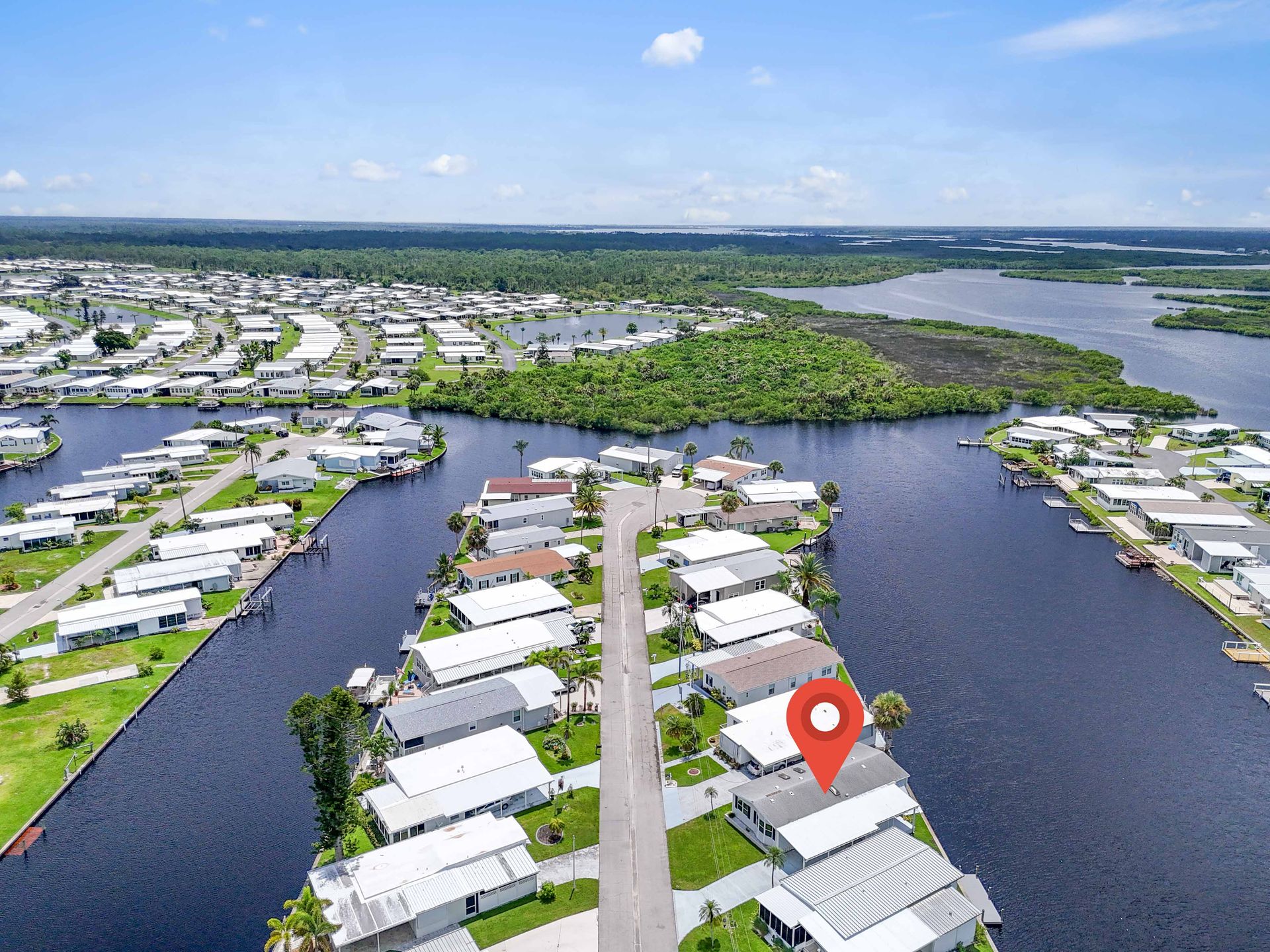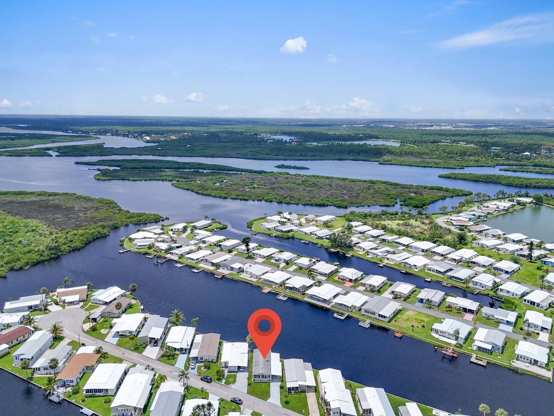 JUST REDUCED BY OVER $19K! Enjoy everyday with the gentle shimmer of STUNNING CANAL FRONT WATER VIEWS from this RARE 3 BEDROOM, 2 bathroom retreat in Harbor Cove, an affordable 55+ waterfront community with GULF ACCESS. This spacious 1,341 sq. ft. FURNISHED home in the pet section invites you to unwind in a living room that opens to a wide canal, where manatees swim and herons perch just beyond your patio. The open kitchen and dining area offer generous counter space and cabinetry, perfect for preparing meals as sunlight filters through the skylights. A split bedroom plan ensures privacy in the large primary suite but also offers direct views through the living room access when desired. Two additional bedrooms near the hall bathroom make it easy for family and friends to be comfortable. Step outside and find your covered porch nearly at the water’s edge, perfect for gathering with friends for evening beverages, watching the boats go by or some backyard fishing. The HOA maintains the seawall and with a leasehold fee of just $99 PER YEAR, this is very affordable living in harmony with nature. Updates within the past 4 years include a new AC system, carport, siding, gutters, living room vinyl flooring, bathroom tile, renovated shower, and more. A long driveway, carport, and shed provide ample space for guests and gear. Beyond your doorstep is a 90-slip marina, amazing fishing and boating opportunities along the Myakka River, two swimming pools, a hot tub, bocce and shuffleboard courts and a 2-story clubhouse alive with dances, outdoor picnics, games, and community fun. Join the boat club or woodworking shop, participate in water aerobics and volleyball, craft classes, plays, etc. An optional fitness center, tennis/pickleball courts, boat slip and storage compound are also available. Located just minutes from beaches, restaurants, farmers markets, golf courses, spring training baseball, shopping and quality medical care this is one not to be missed! Schedule a private showing today.