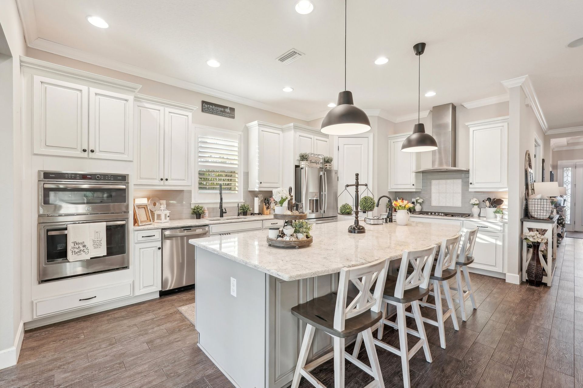 From the moment you step through the grand entrance, you'll be captivated by the meticulous attention to detail and over $100,000 in premium builder upgrades and an additional $50,000 in homeowner upgrades after completion. The home features an expansive open-concept layout, ideal for both entertaining and everyday living. The gourmet kitchen is a culinary enthusiast's paradise, complete with upgraded appliances, a generous vegetable sink in the island, and a chic porcelain backsplash that exudes sophistication. Additional storage at the front of the island enhances functionality, making this kitchen as practical as it is beautiful.