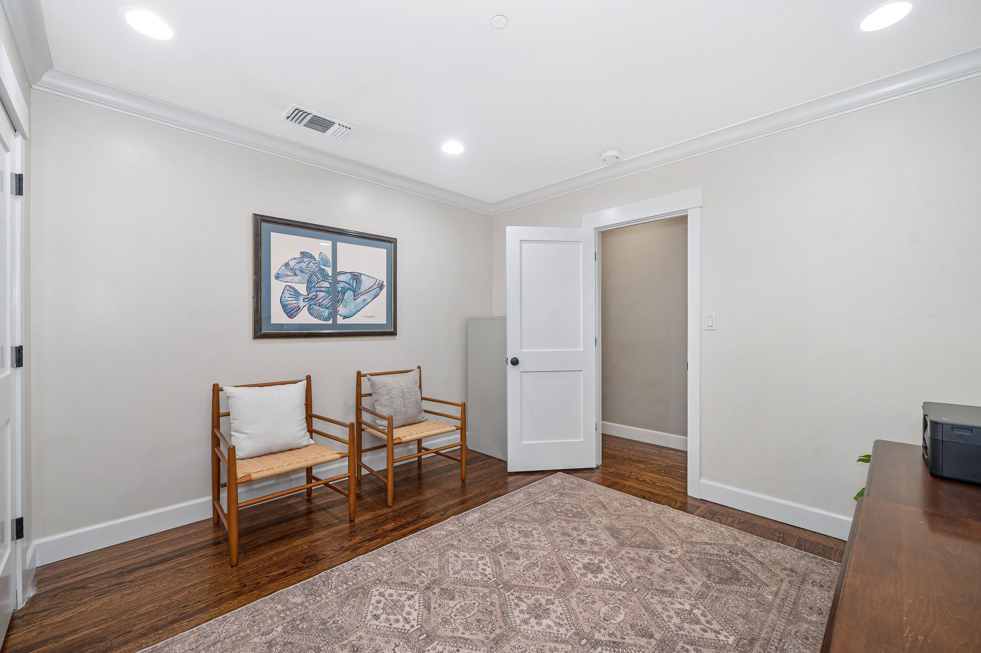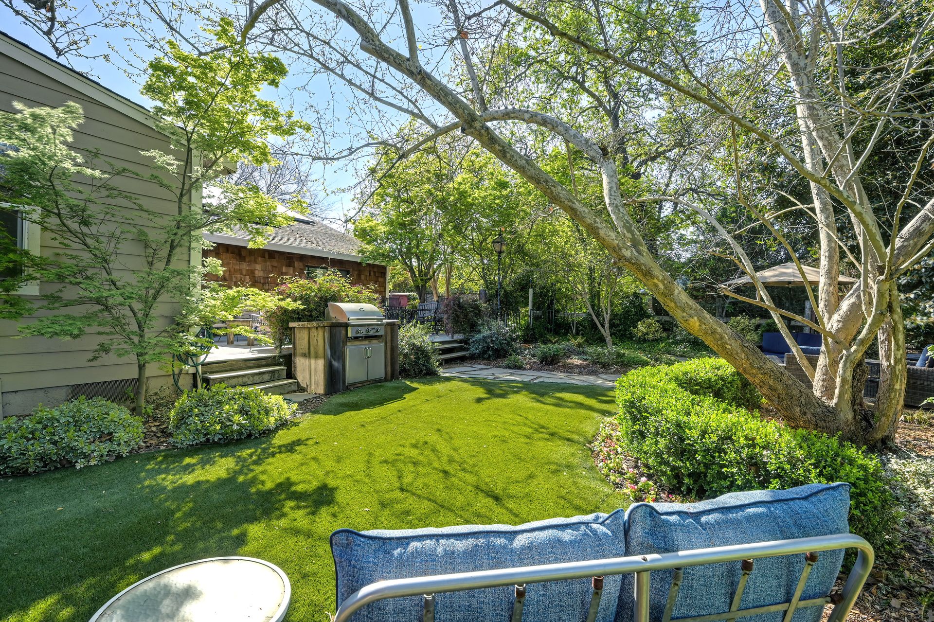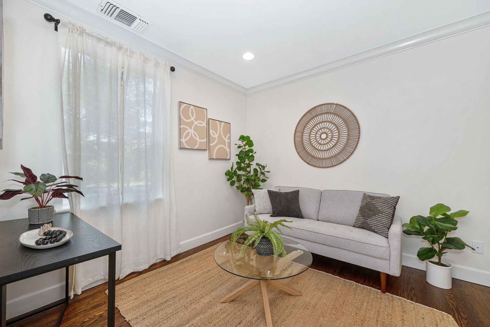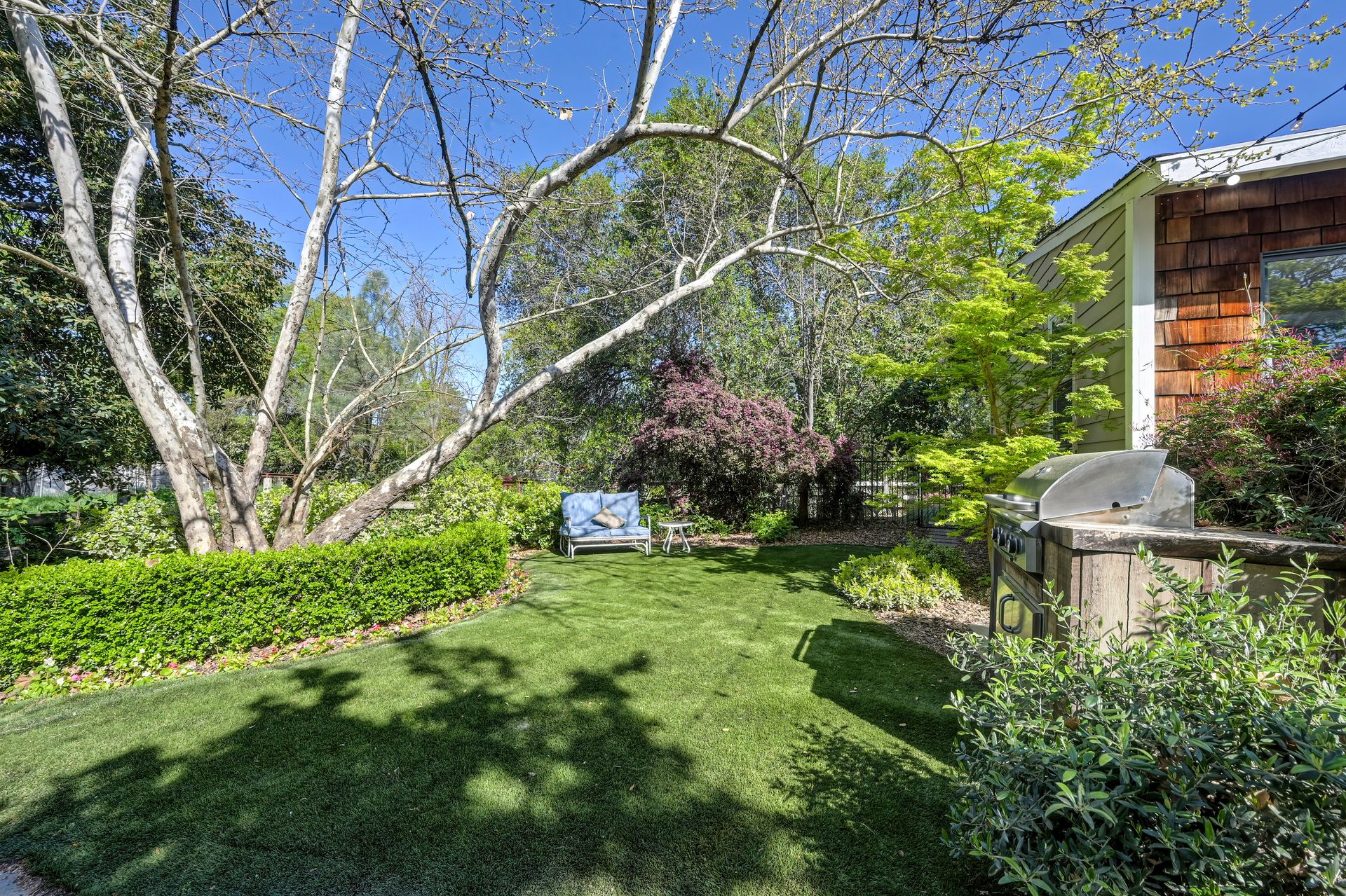 Extensively renovated down to the studs in 2015, this private gated property offers thoughtfully designed indoor and outdoor living with major system upgrades throughout. Inside, original hardwood floors (refinished in 2026), a wood-burning fireplace with stacked stone surround and a reclaimed wood mantel, and two inviting livable areas create a warm place to relax or gather. The open layout flows to a dining area with built-in cabinetry, granite counters, wine storage and refrigerator, while the secondary living room features exposed beams and new Berber carpet (March 2026).