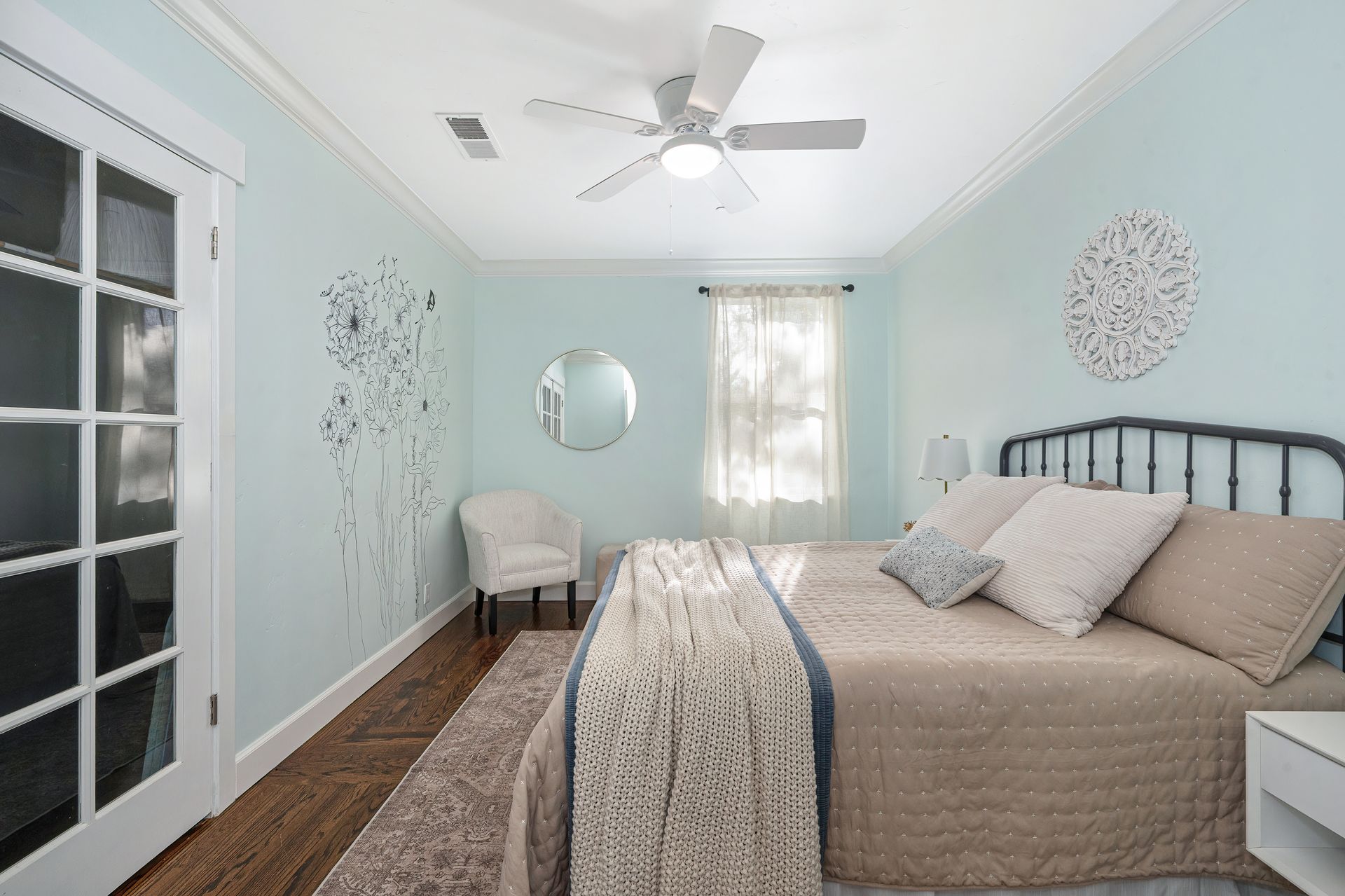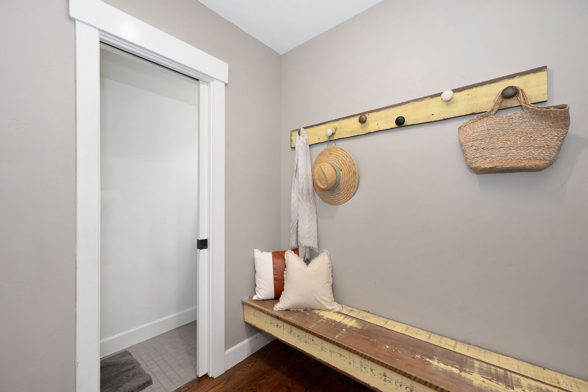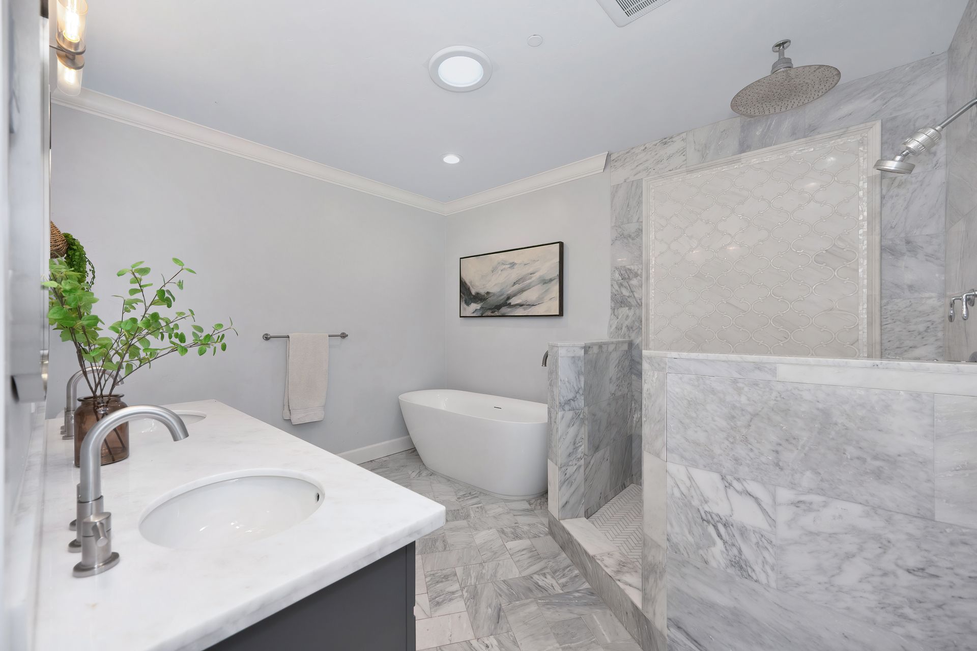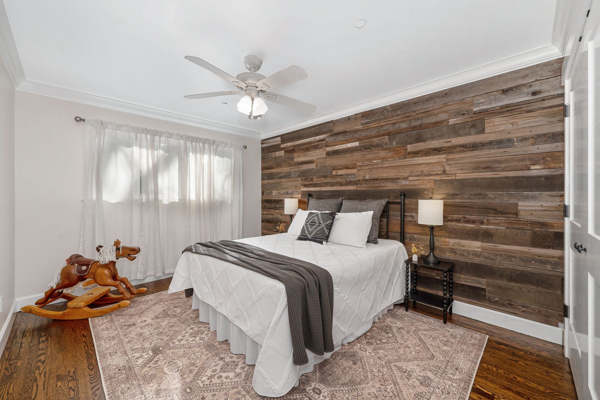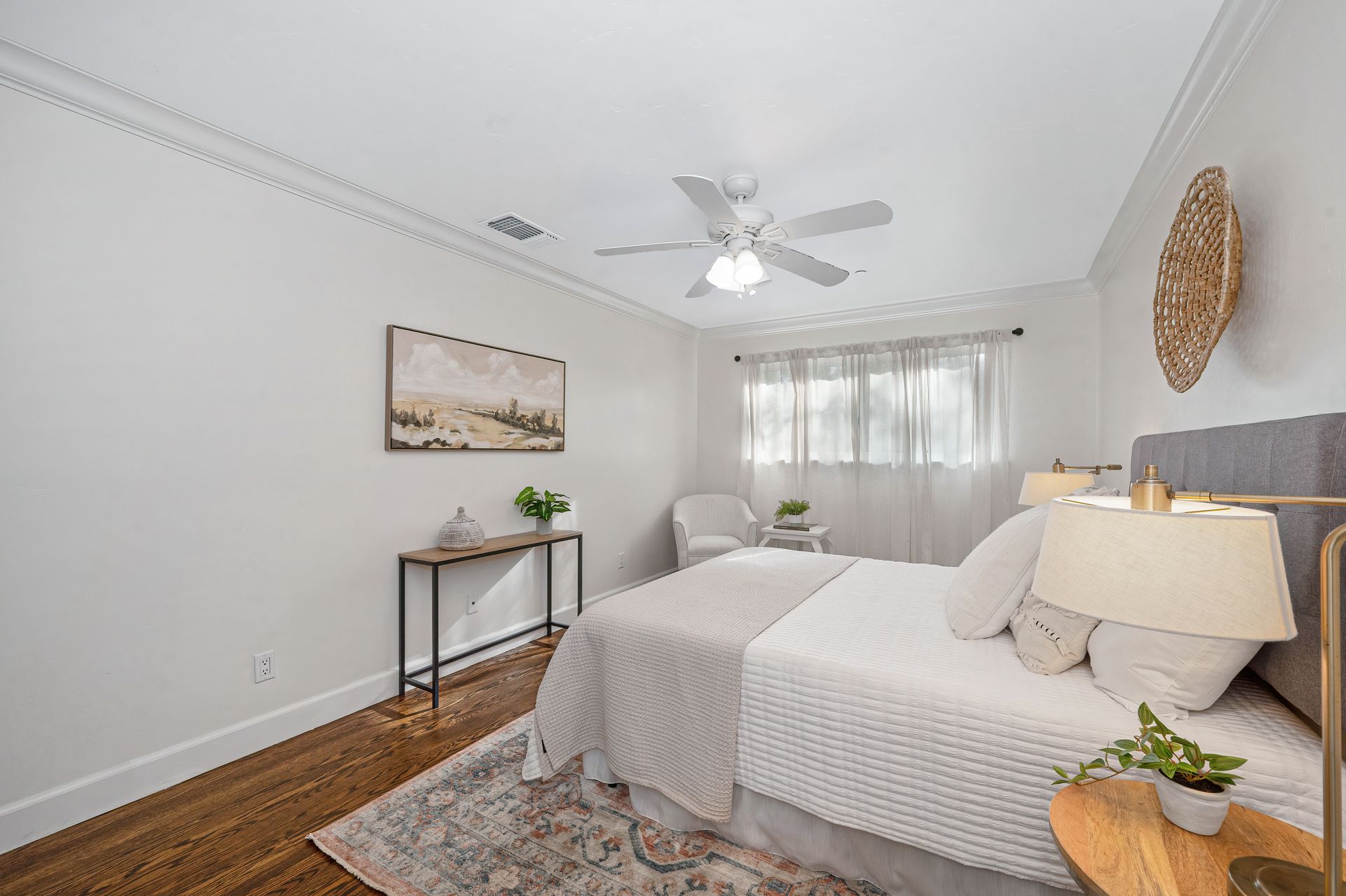 Extensively renovated down to the studs in 2015, this private gated property offers thoughtfully designed indoor and outdoor living with major system upgrades throughout. Inside, original hardwood floors (refinished in 2026), a wood-burning fireplace with stacked stone surround and a reclaimed wood mantel, and two inviting livable areas create a warm place to relax or gather. The open layout flows to a dining area with built-in cabinetry, granite counters, wine storage and refrigerator, while the secondary living room features exposed beams and new Berber carpet (March 2026).