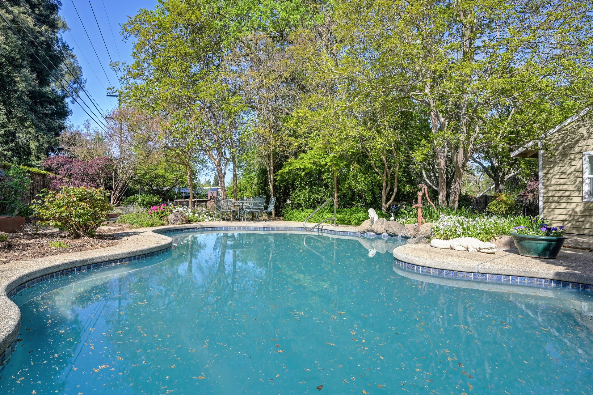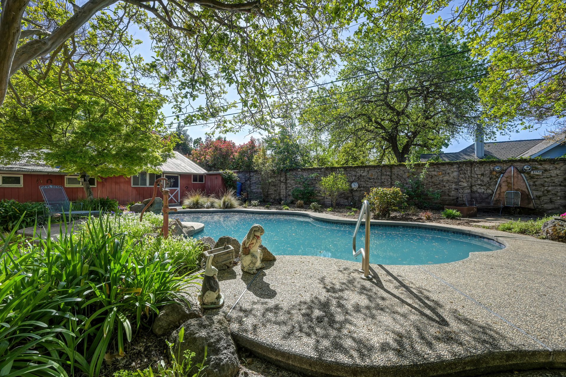 Enjoy outdoor living with a PebbleTec resurfaced pool (2024), bocce ball court, patio, approximately 400 square feet deck, and raised garden beds overlooking charming alpaca neighbors. Major upgrades include dual HVAC systems (including a 5-ton system installed 2016), tankless water heater (2014), solar, whole-house fan, and fiber-optic internet with Cat-6 wiring.