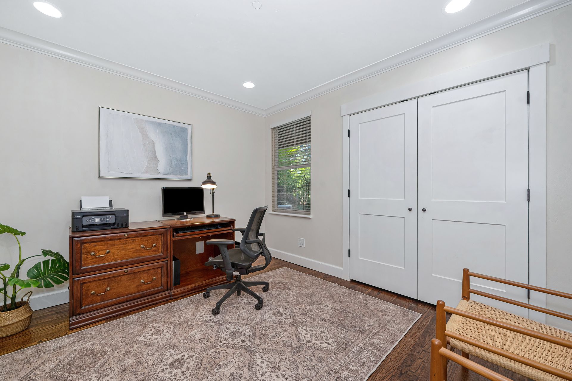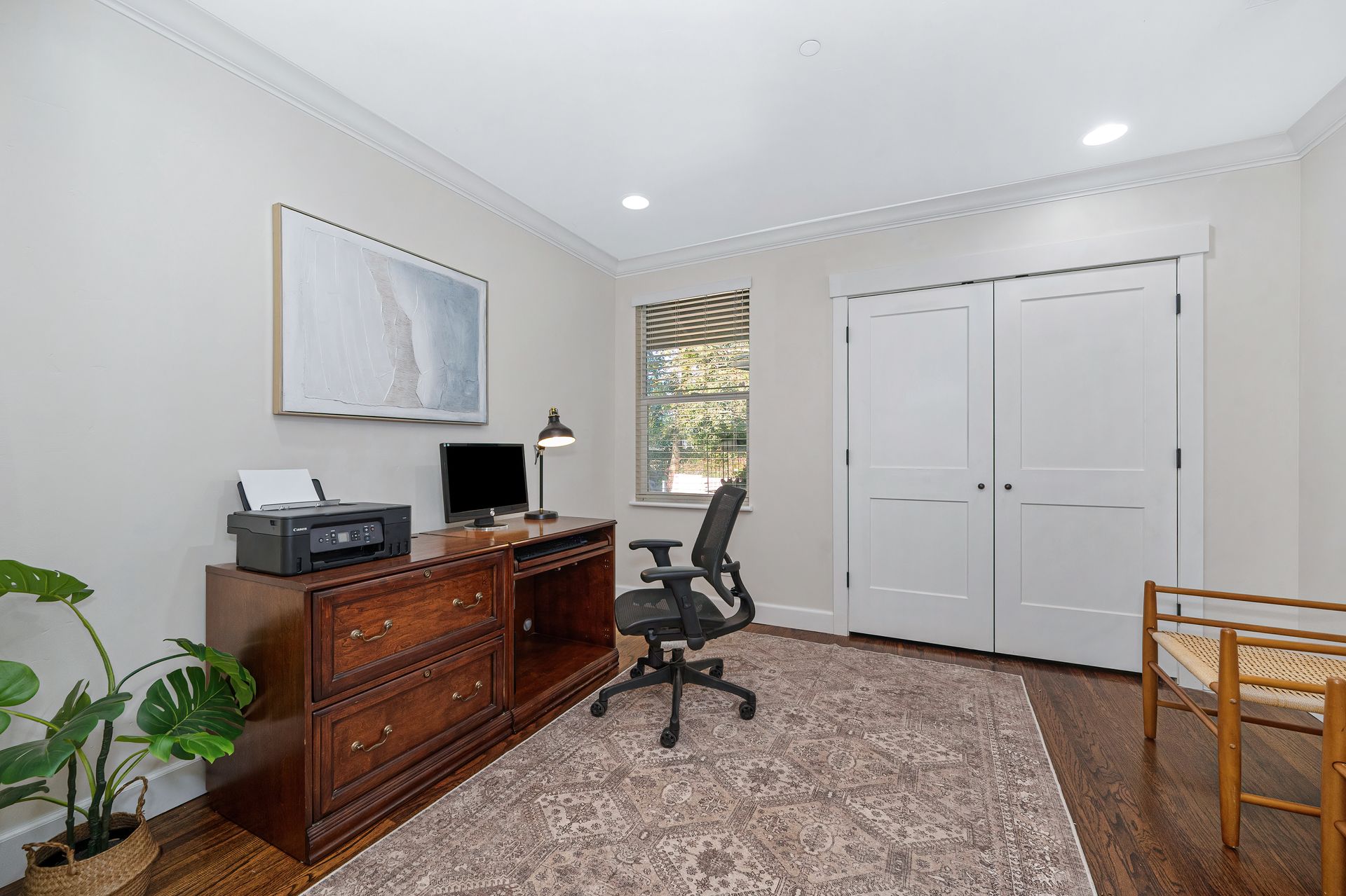 Car enthusiasts will appreciate the two-car front garage plus an additional two-car rear garage with a workshop and adjoining flex space. A private courtyard between the garages provides a peaceful workspace.