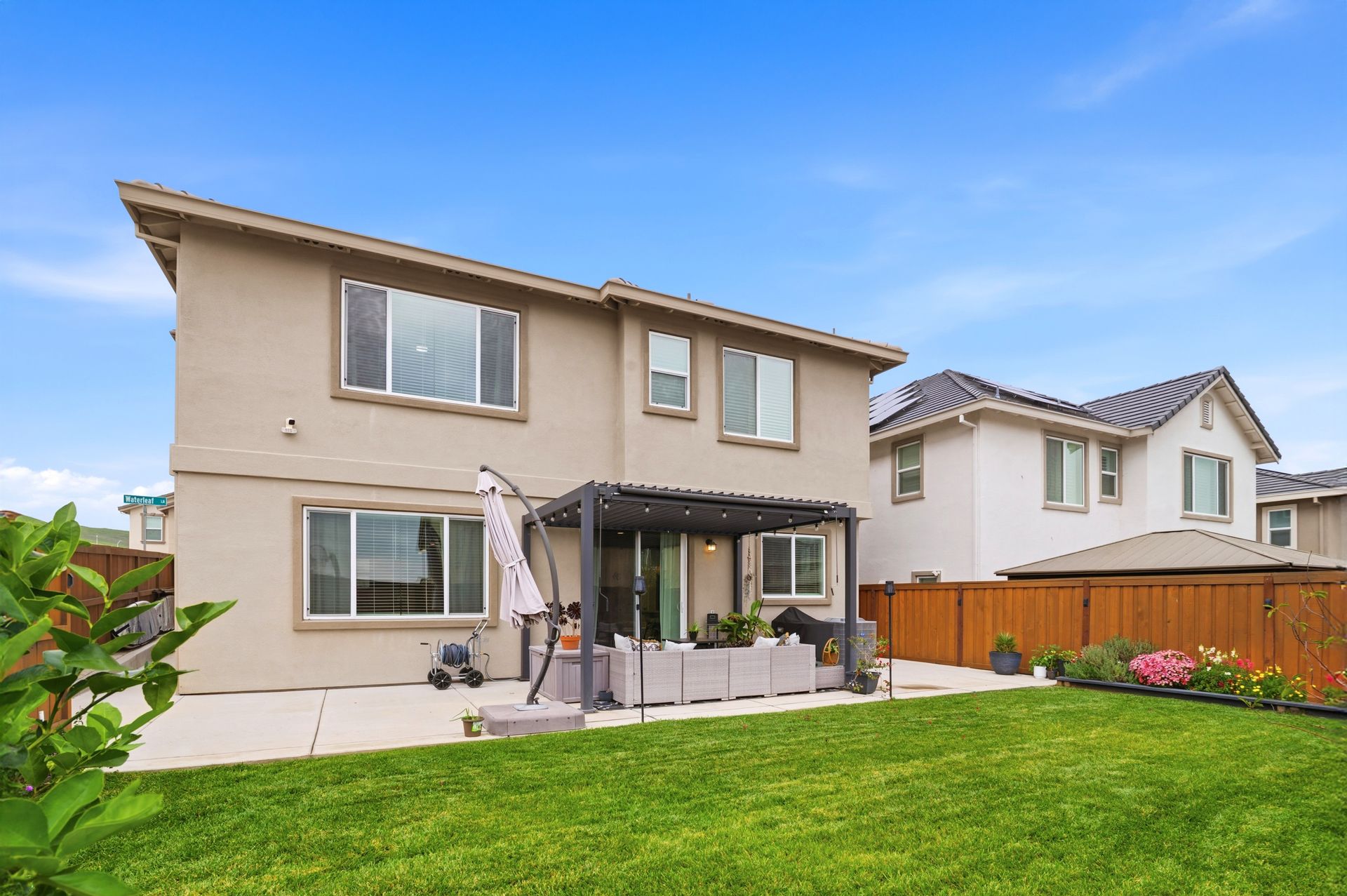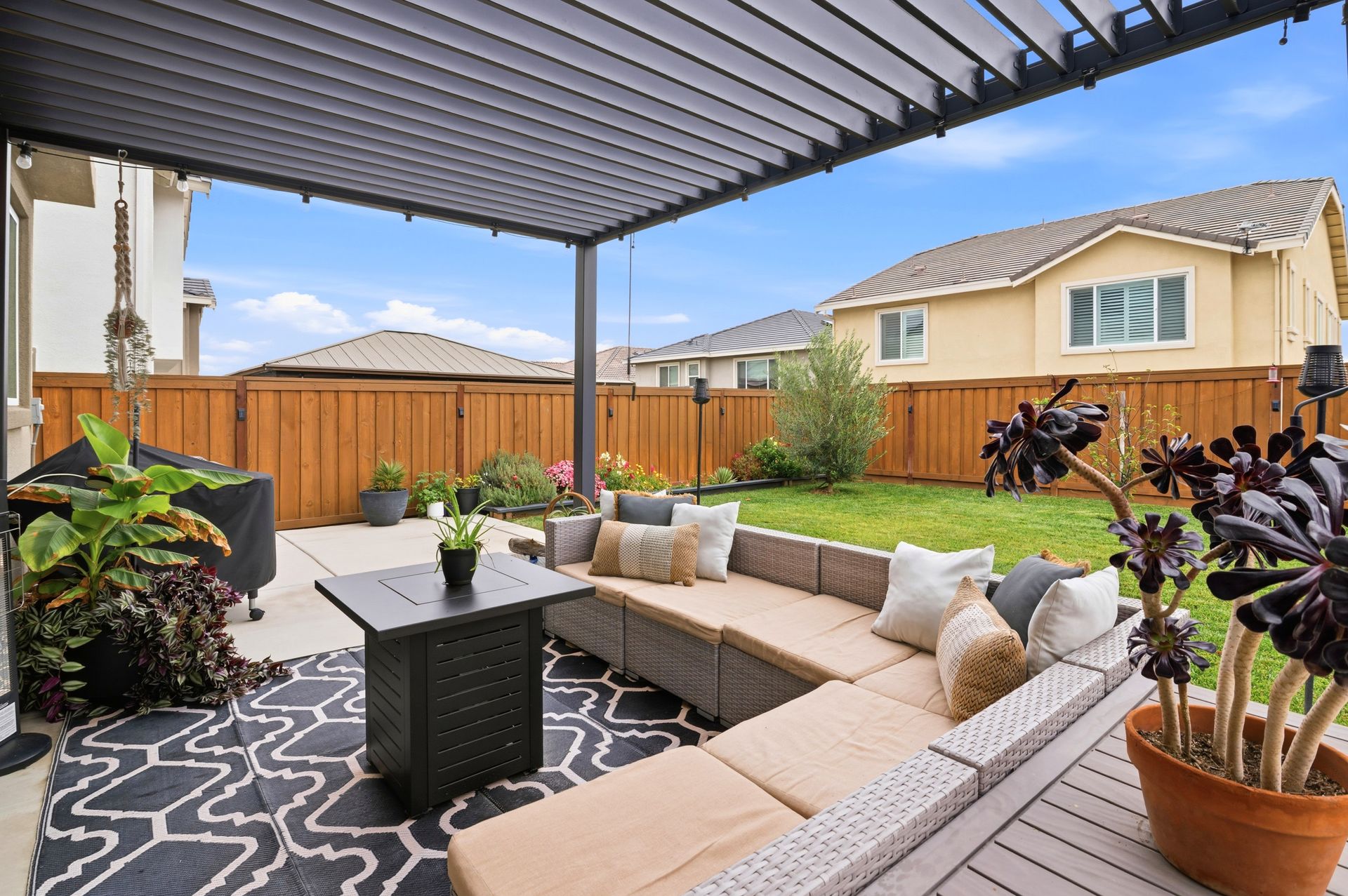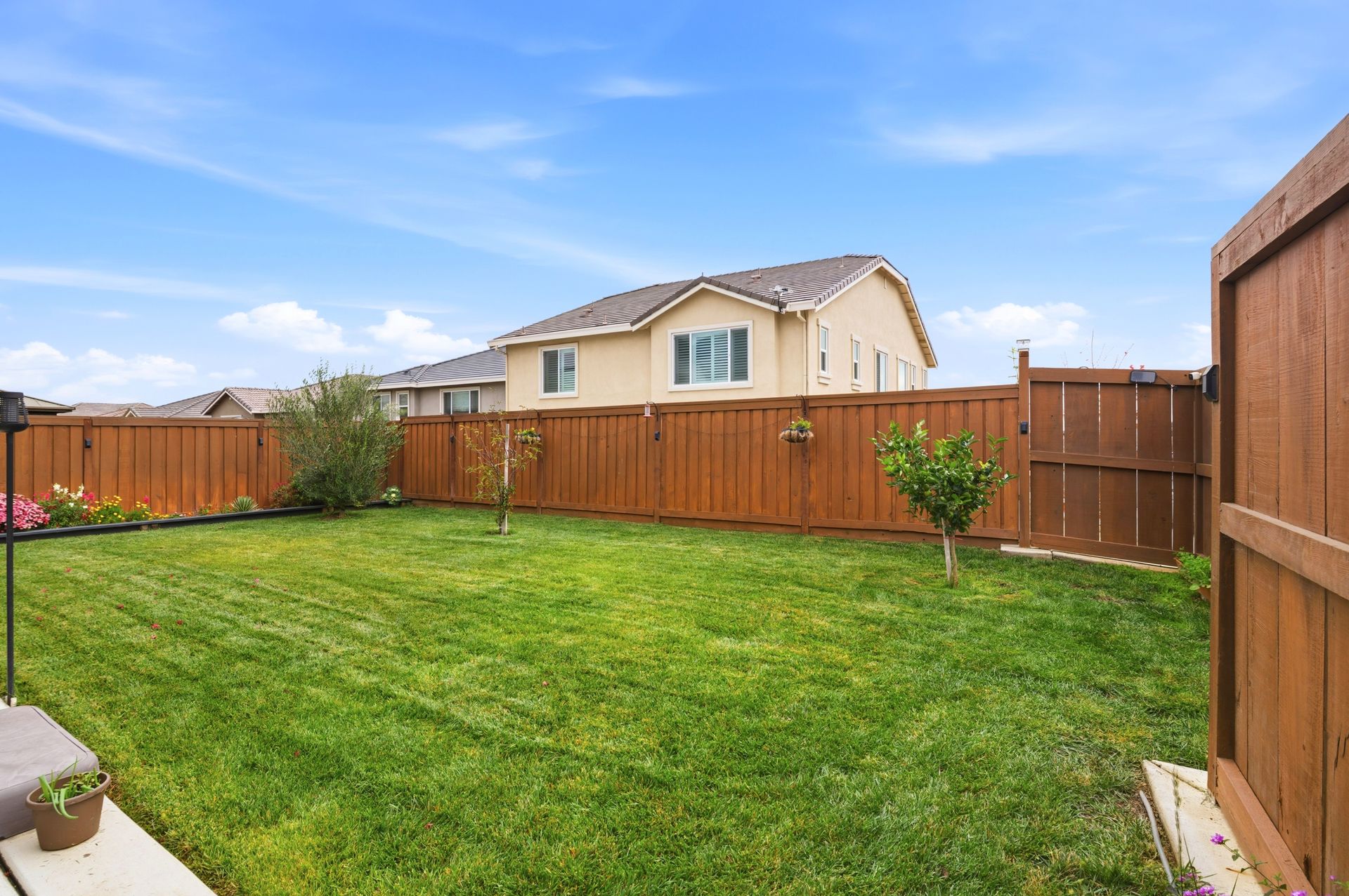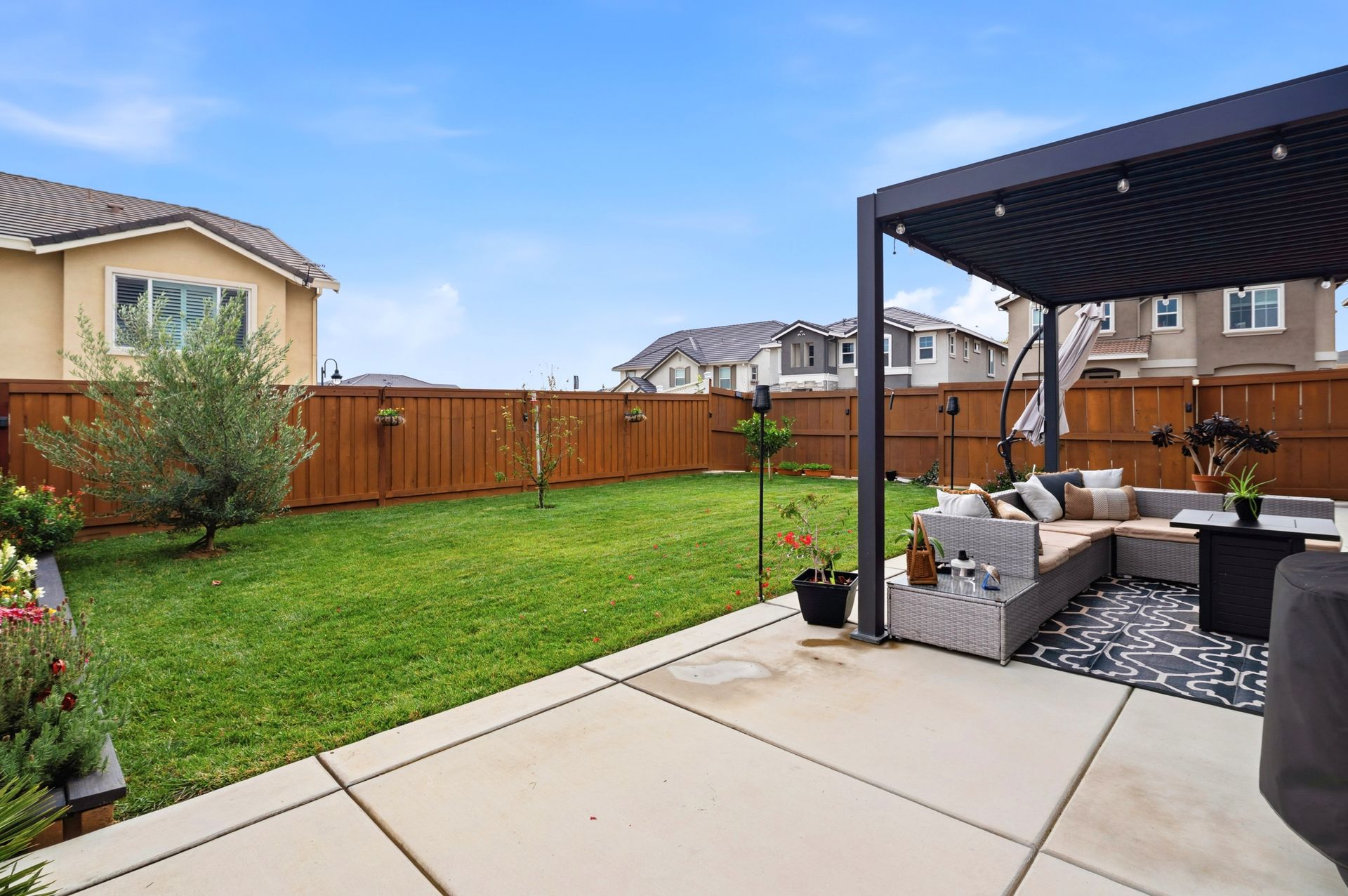 Distinct from many offerings in developing neighborhoods, this home features a fully realized backyard crafted for both relaxation and outdoor living. A louvered covered patio with solar lighting anchors the setting, complemented by concrete walkways, a lawn area, and mature trees. Whether hosting gatherings or enjoying peaceful evenings under the open sky, this private retreat is ready to be enjoyed from day one.