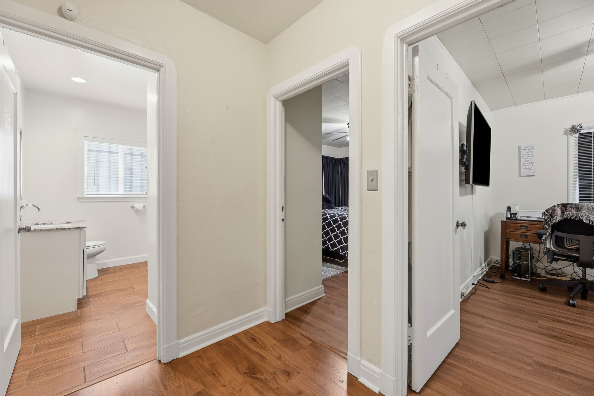 The bathroom has also been tastefully updated, offering easy access to the main-floor bedrooms and a natural draw toward the upstairs rooms.