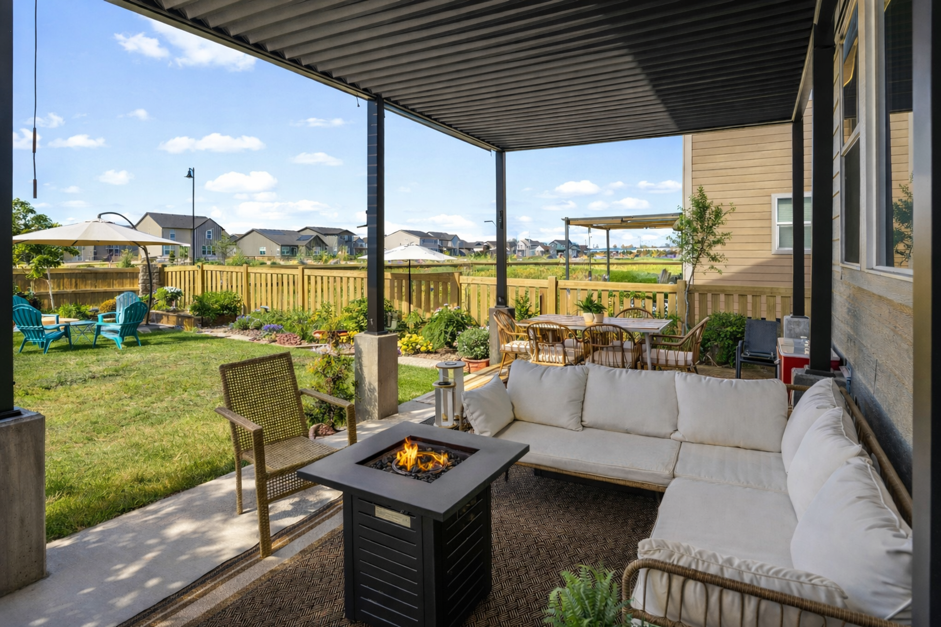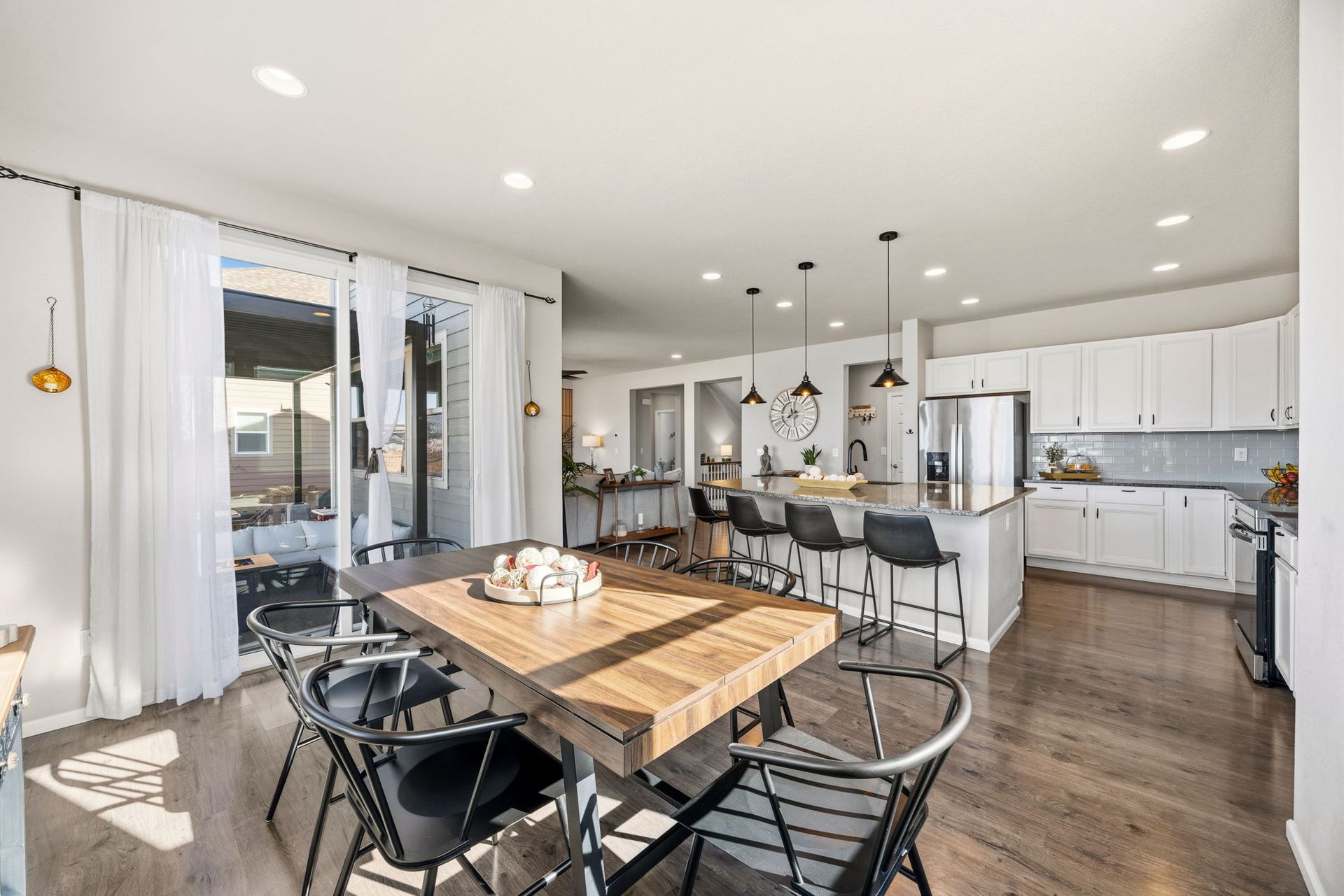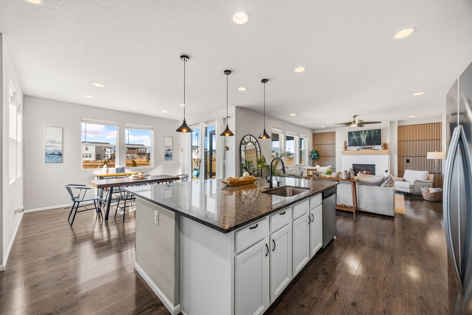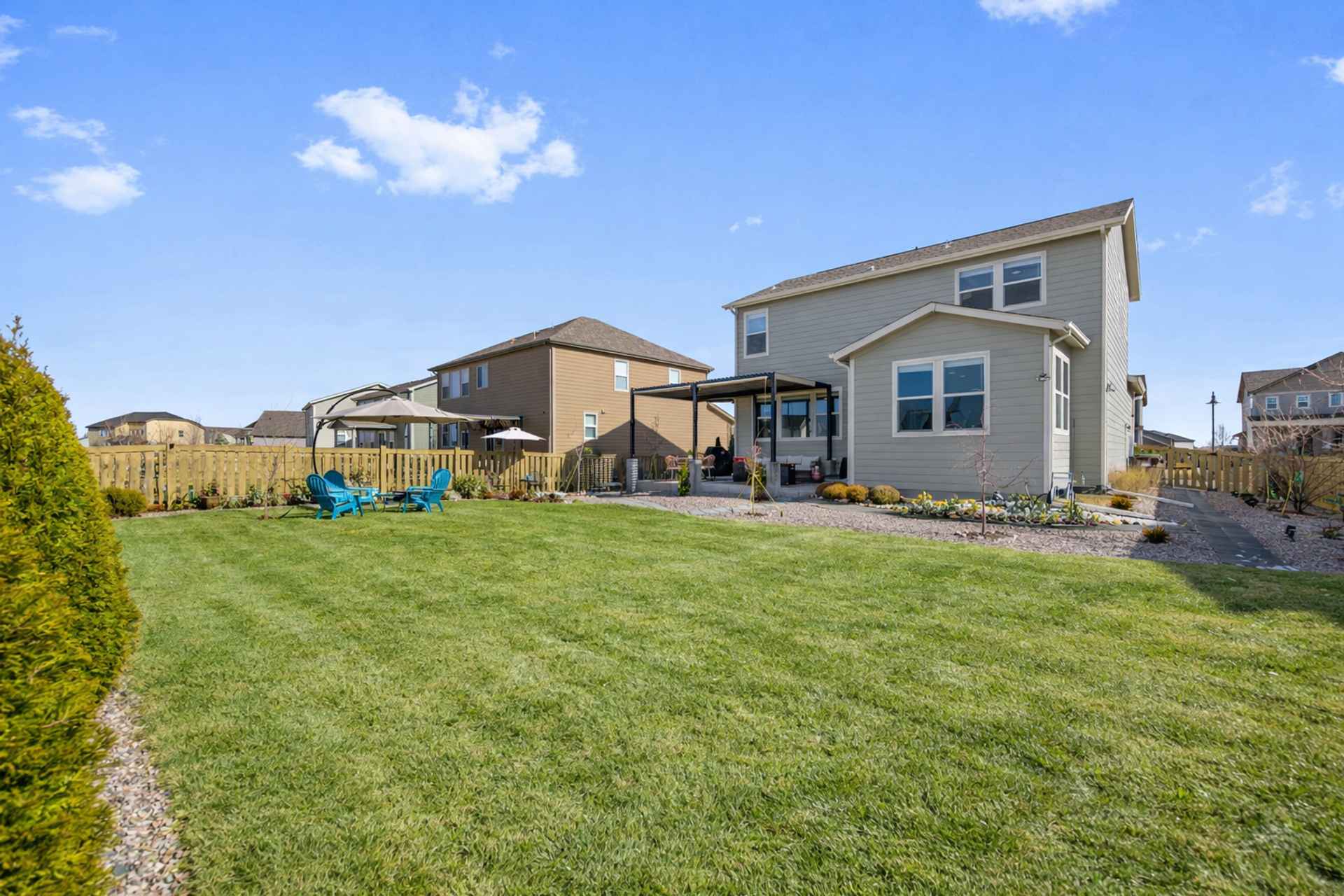 Beautifully maintained 3-bedroom, 2-story home filled with natural light and thoughtful updates throughout. The heart of the home is the stunning kitchen, featuring stainless steel appliances, an expansive granite island, and abundant cabinetry—perfect for everyday living and entertaining. The open dining area flows seamlessly into the inviting family room with a cozy fireplace, creating a warm and welcoming space. Upstairs, you'll find all three bedrooms, including a spacious primary suite with a full bath, along with a conveniently located laundry room. The full unfinished basement offers 9-foot ceilings and endless potential for future expansion or storage. Step outside to enjoy the new covered patio and refreshed landscaping, all within a fully fenced backyard—ideal for relaxing evenings, outdoor dining, and taking in Colorado’s beautiful sunset views. With generous indoor and outdoor living spaces, this home is move-in ready and offers room to grow. Don’t miss the opportunity to make it yours!