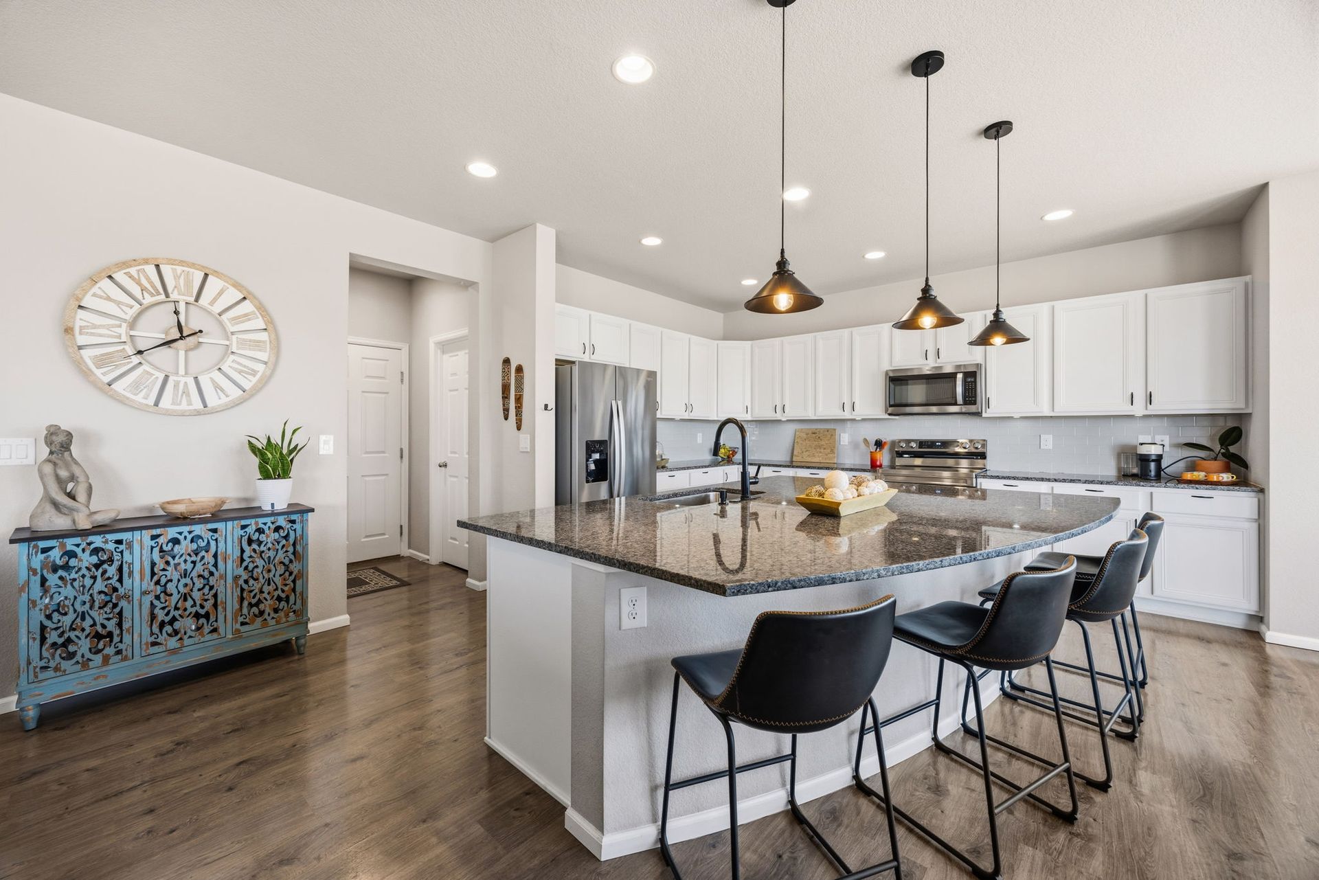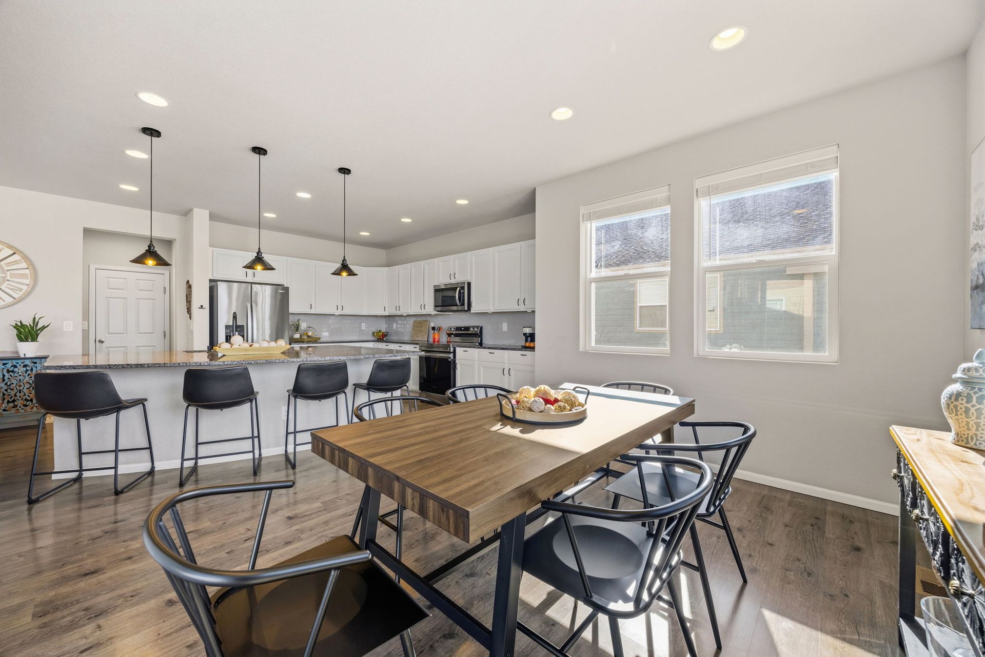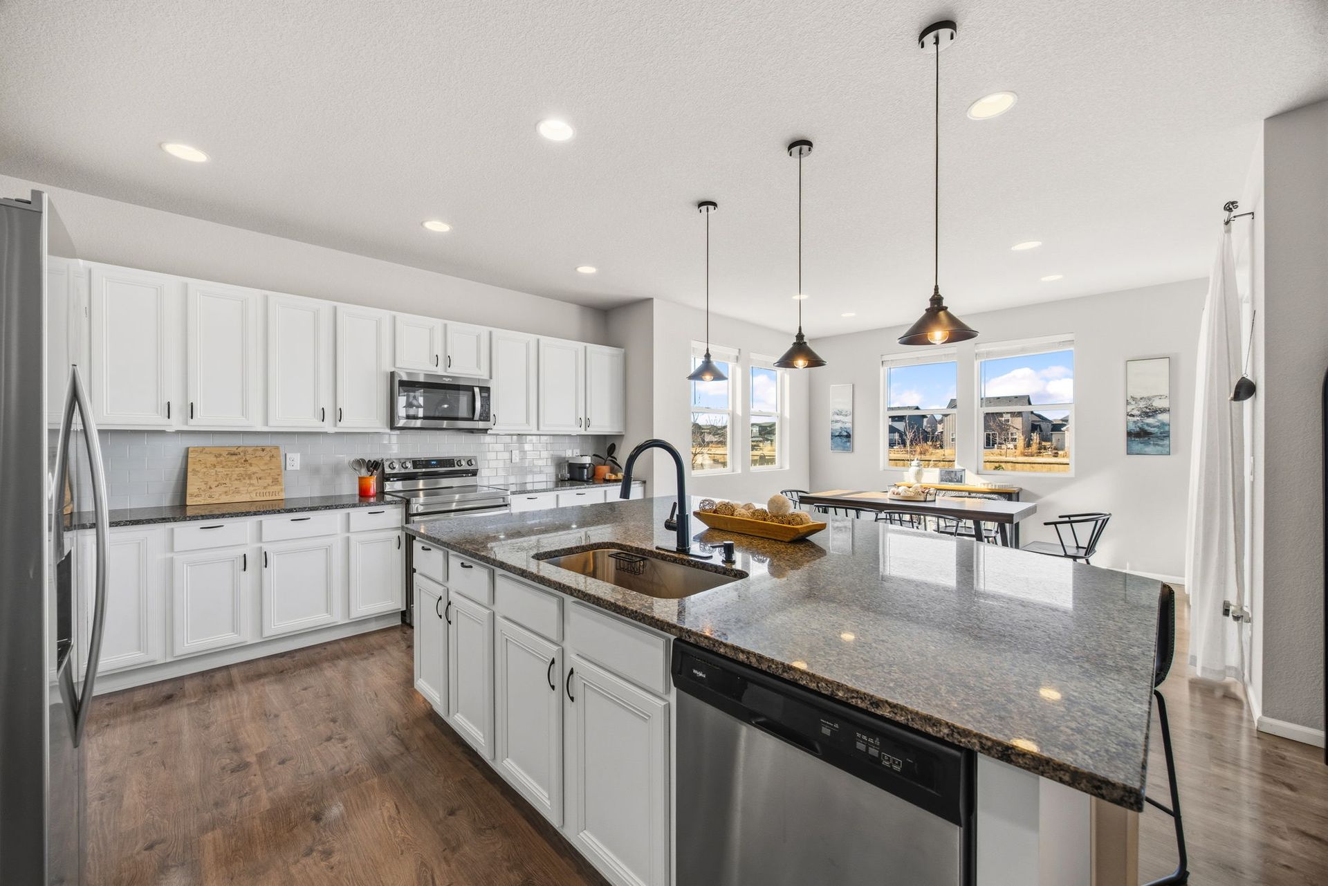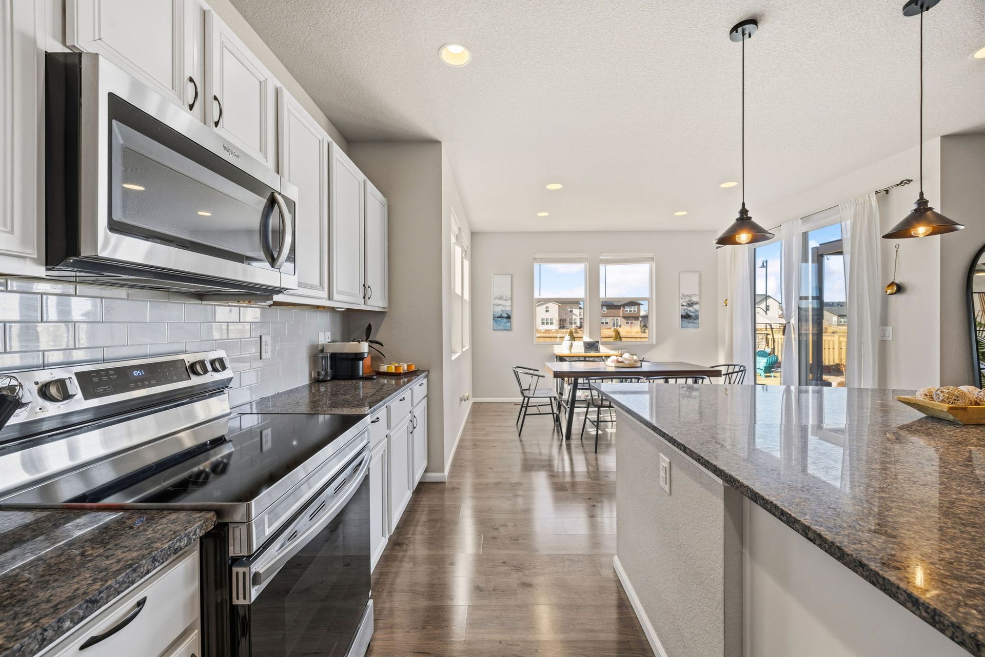 Beautifully maintained 3-bedroom, 2-story home filled with natural light and thoughtful updates throughout. The heart of the home is the stunning kitchen, featuring stainless steel appliances, an expansive granite island, and abundant cabinetry—perfect for everyday living and entertaining. The open dining area flows seamlessly into the inviting family room with a cozy fireplace, creating a warm and welcoming space. Upstairs, you'll find all three bedrooms, including a spacious primary suite with a full bath, along with a conveniently located laundry room. The full unfinished basement offers 9-foot ceilings and endless potential for future expansion or storage. Step outside to enjoy the new covered patio and refreshed landscaping, all within a fully fenced backyard—ideal for relaxing evenings, outdoor dining, and taking in Colorado’s beautiful sunset views. With generous indoor and outdoor living spaces, this home is move-in ready and offers room to grow. Don’t miss the opportunity to make it yours!