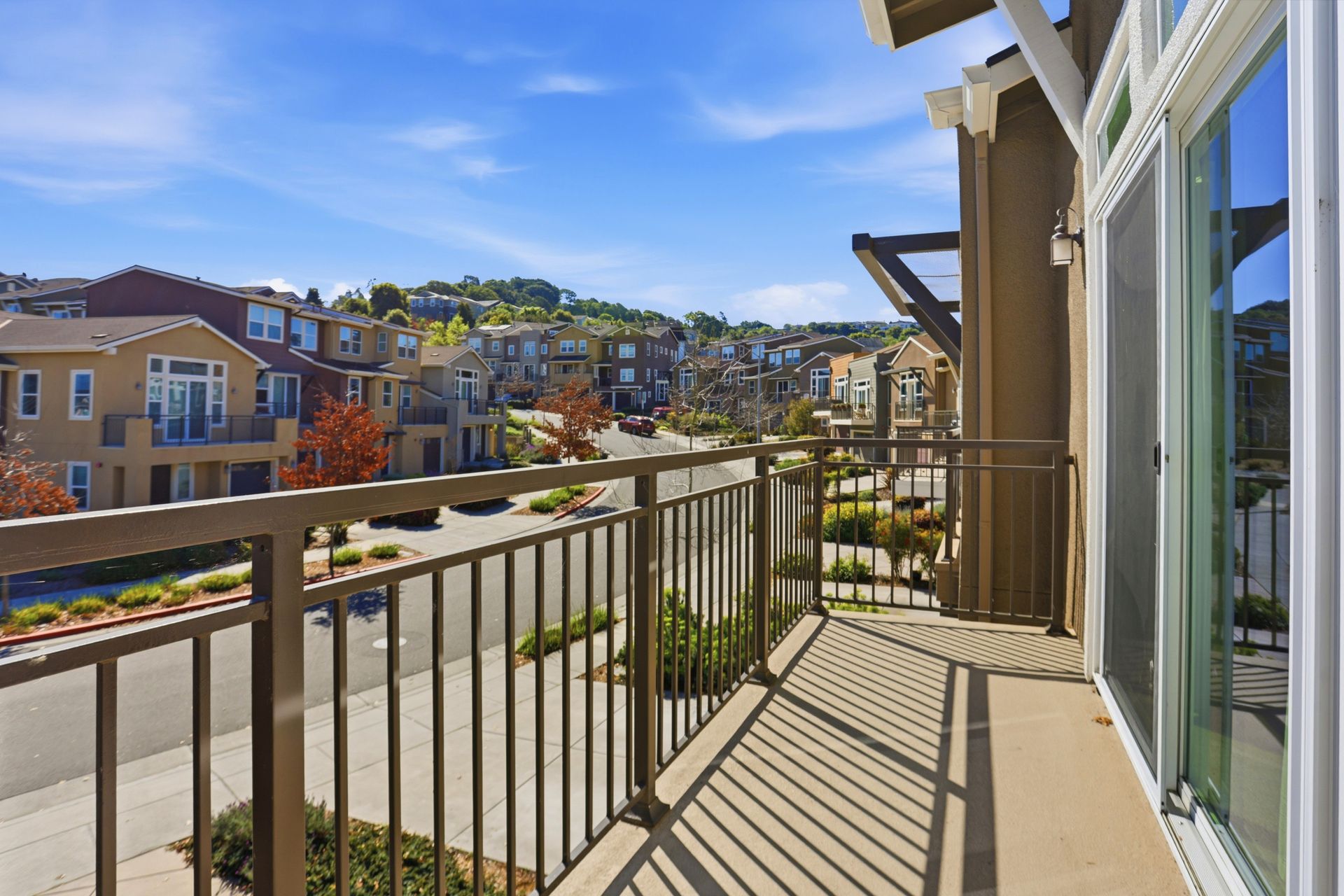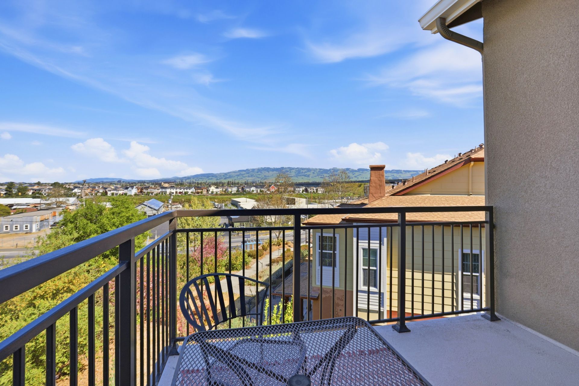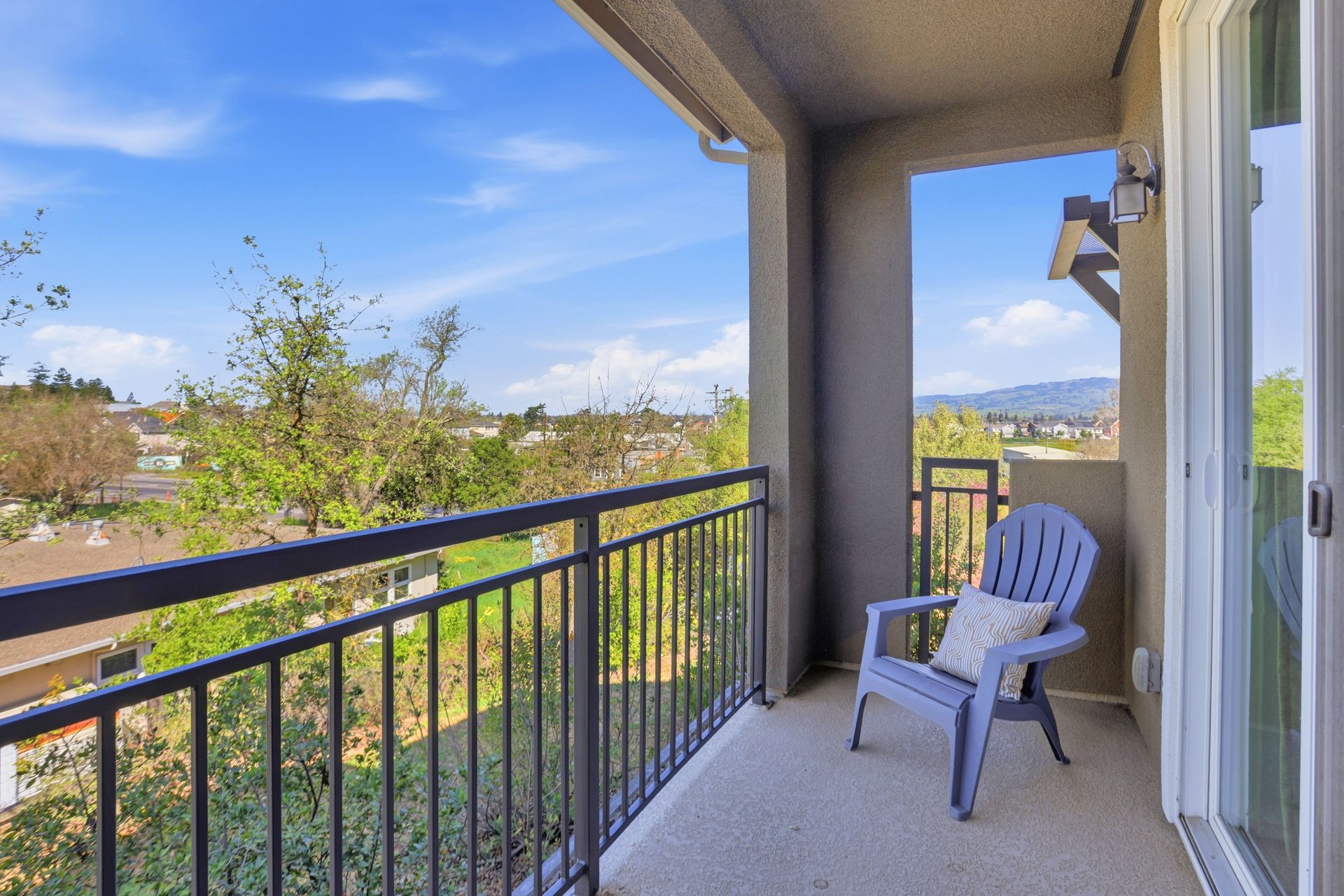 Spacious end-unit townhome in West Petaluma's desirable Quarry Heights community, ideally located near the charm of Historic Downtown Petaluma. This contemporary residence offers generous square footage and a thoughtfully designed floor plan that maximizes both space and functionality. The open-concept main level showcases a beautifully appointed kitchen with sleek, modern finishes, a spacious pantry, and direct access to a private balcony ideal for taking in expansive hillside views and enjoying seamless indoor-outdoor living. Year-round comfort is ensured with central A/C, enhanced by multi-zone controls delivering both sustainability and energy efficiency. The inviting primary suite serves as a private retreat, featuring a spacious ensuite bathroom and a large walk-in closet. Additional highlights include three balconies with views and ground-level patio ideal for relaxing. Residents of Quarry Heights enjoy access to multiple parks, a modern clubhouse, and convenient access to nearby highways, making commuting throughout Sonoma County and beyond effortless. All this is just minutes from vibrant dining, boutique shopping, and the best of Petaluma living.