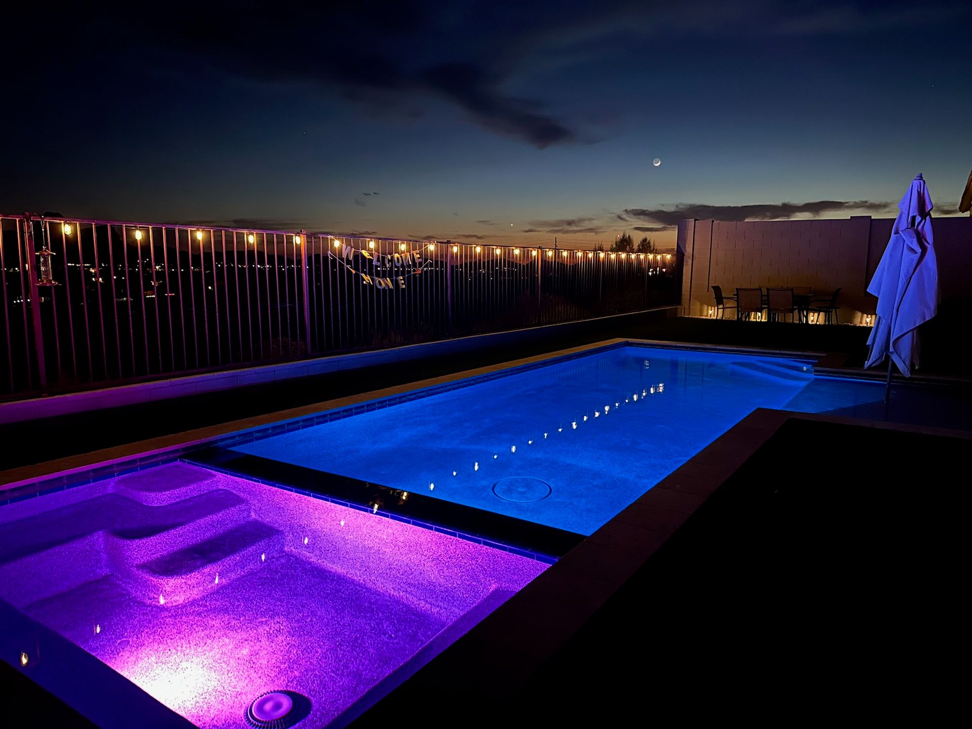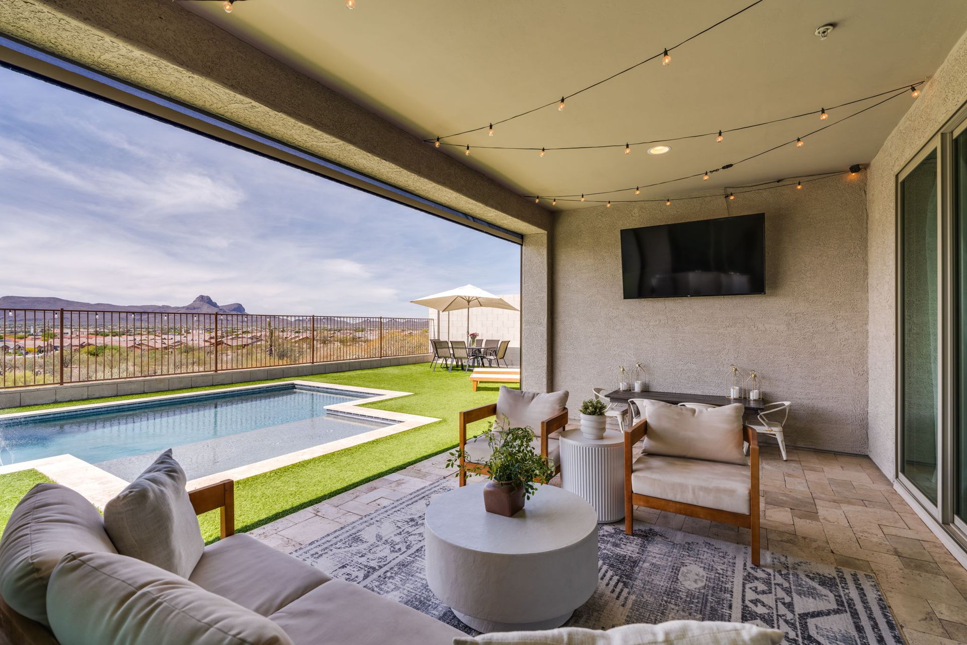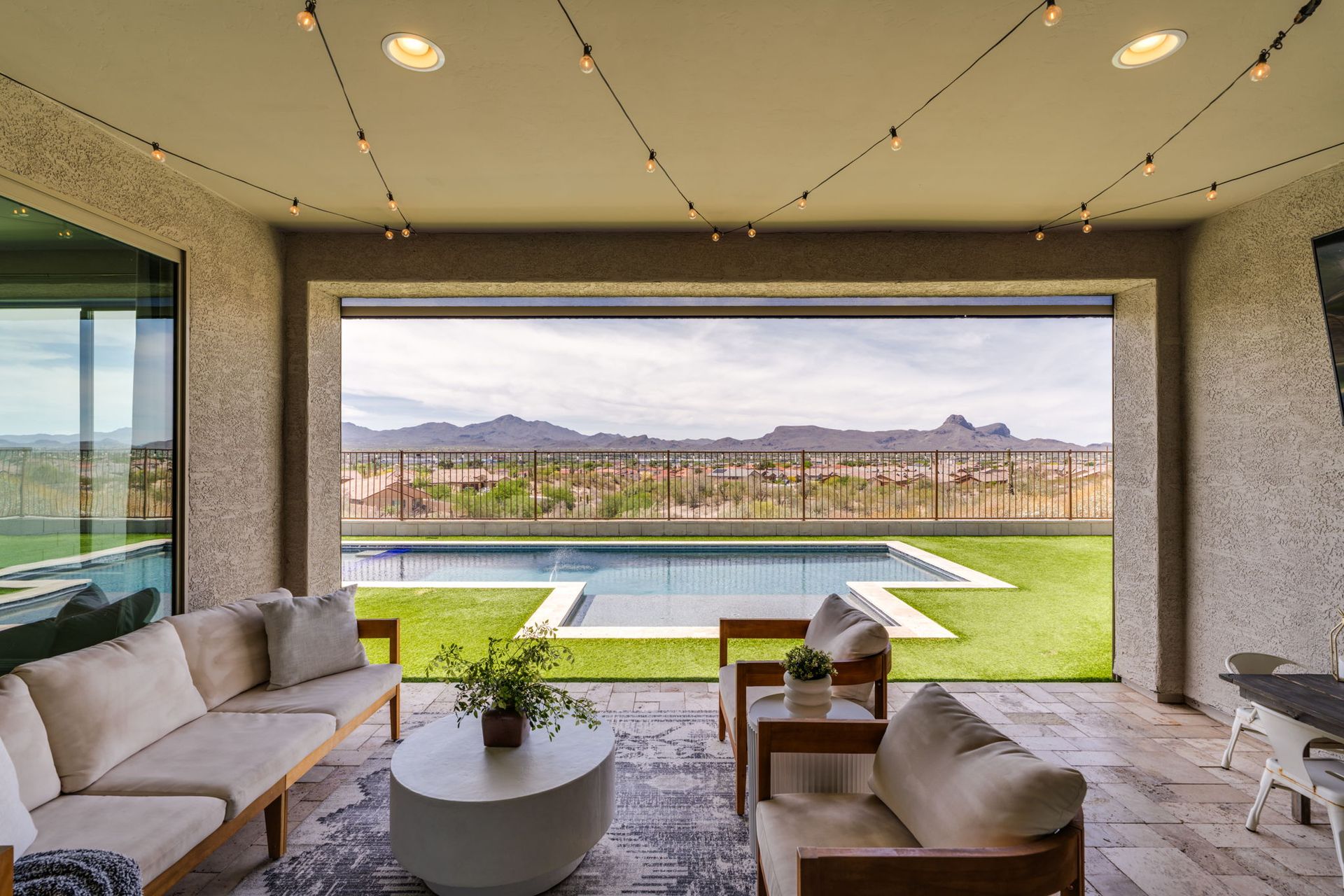 Step outside to a private outdoor sanctuary where a $100,000 custom SALT water pool and spa overlook sparkling Tucson city lights and dramatic mountain backdrops. Cool travertine underfoot and low-maintenance turf provide beauty without the upkeep, creating the perfect setting for sunset gatherings or peaceful mornings watching hot air balloons drift across the desert sky. 🌅