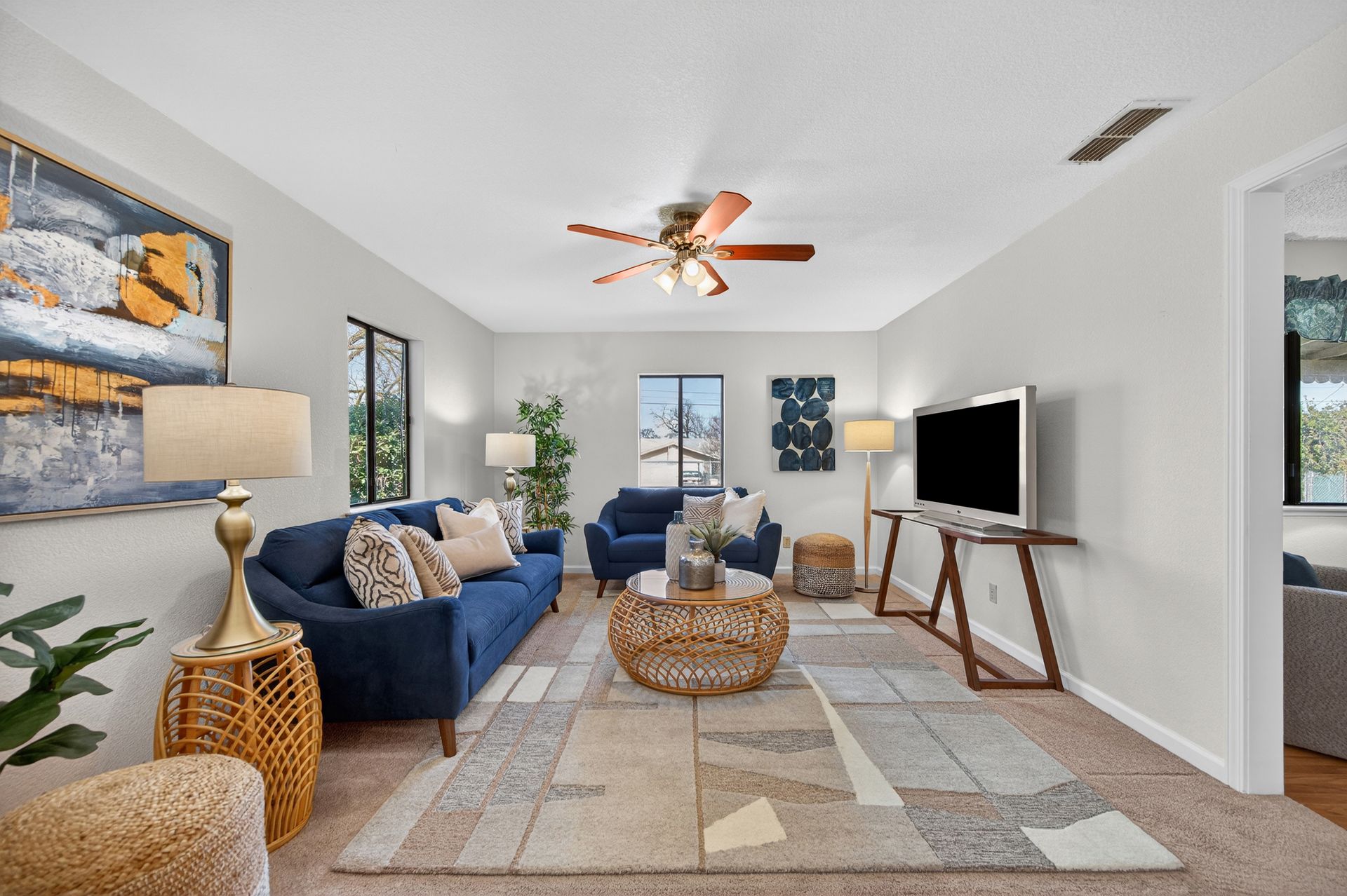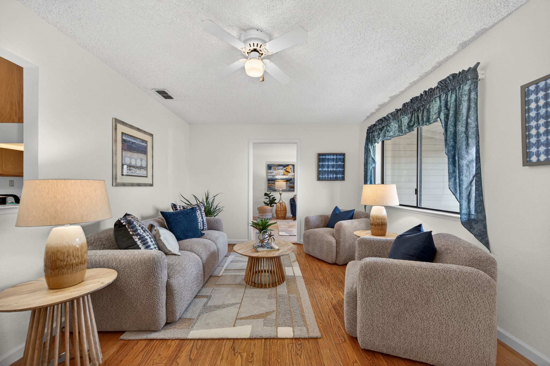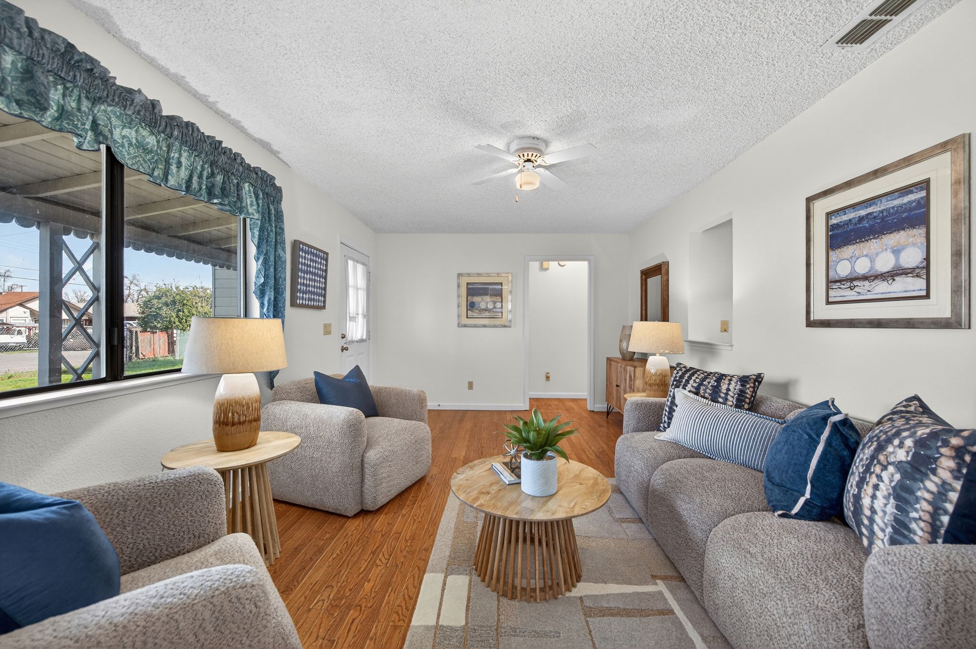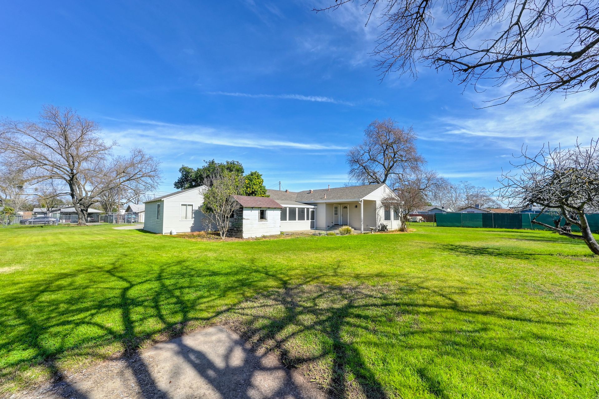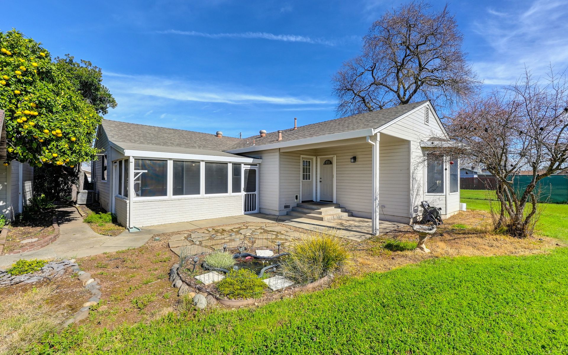 A dream yard of over half an acre, yet so close to all the modern conveniences of city living. This wonderful three bedroom, two bath home is quietly calling your name. Come soak up the sun in your own back yard featuring grapefruit, fig, pomegranate, mulberry, and walnut trees. The oversized one-car garage is waiting for your creative projects and tinkering. The home features a formal living room, family room, separate dining area, ample kitchen, and a true primary retreat with an ensuite bath and walk-in closet. The beautiful hardwood floors in the secondary bedrooms are sure to please the traditionalist. There is a sunny laundry room, and a screened back porch that you are sure to love. Open your eyes to the opportunities of this rare-to-market property, and make it your home in time for summer 2026!
