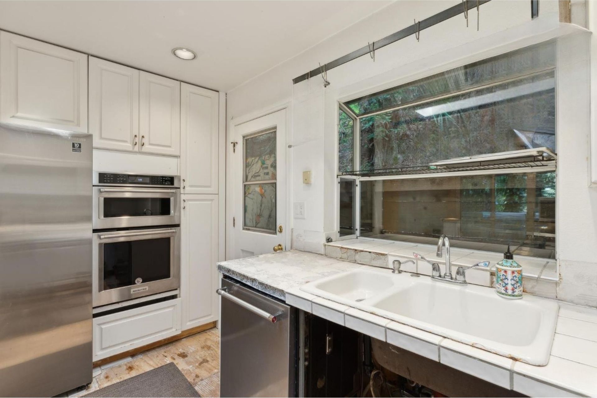 Built in 1991, the home offers an excellent floor plan featuring two spacious en-suite bedrooms, a generous open-concept kitchen, dining, and living area, and a versatile office or family room—all filled with natural light and surrounded by inspiring forest views.