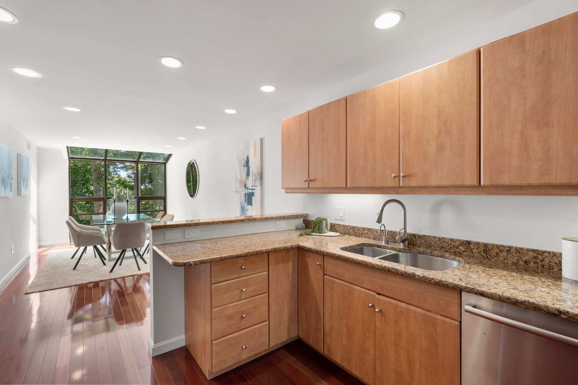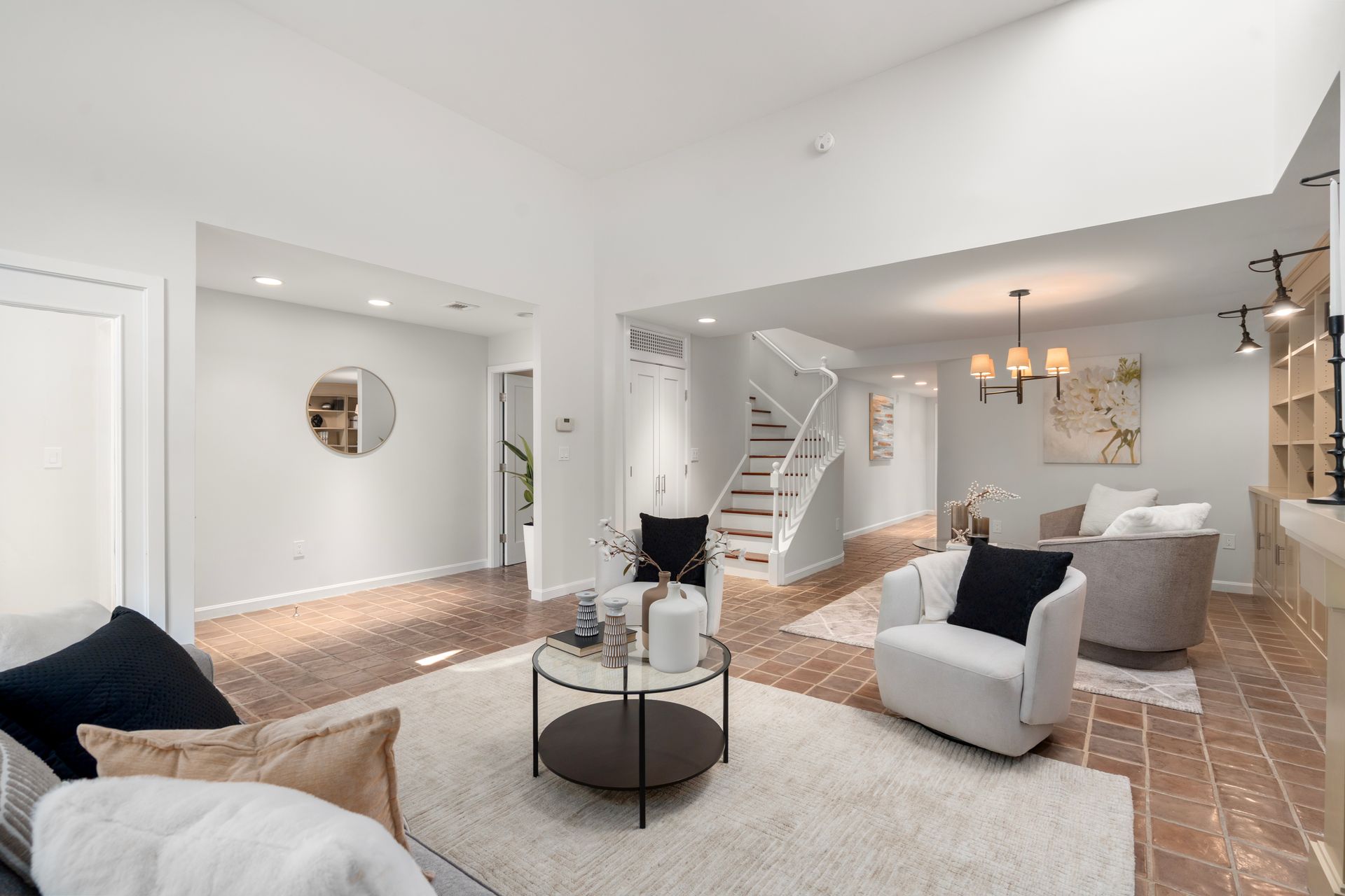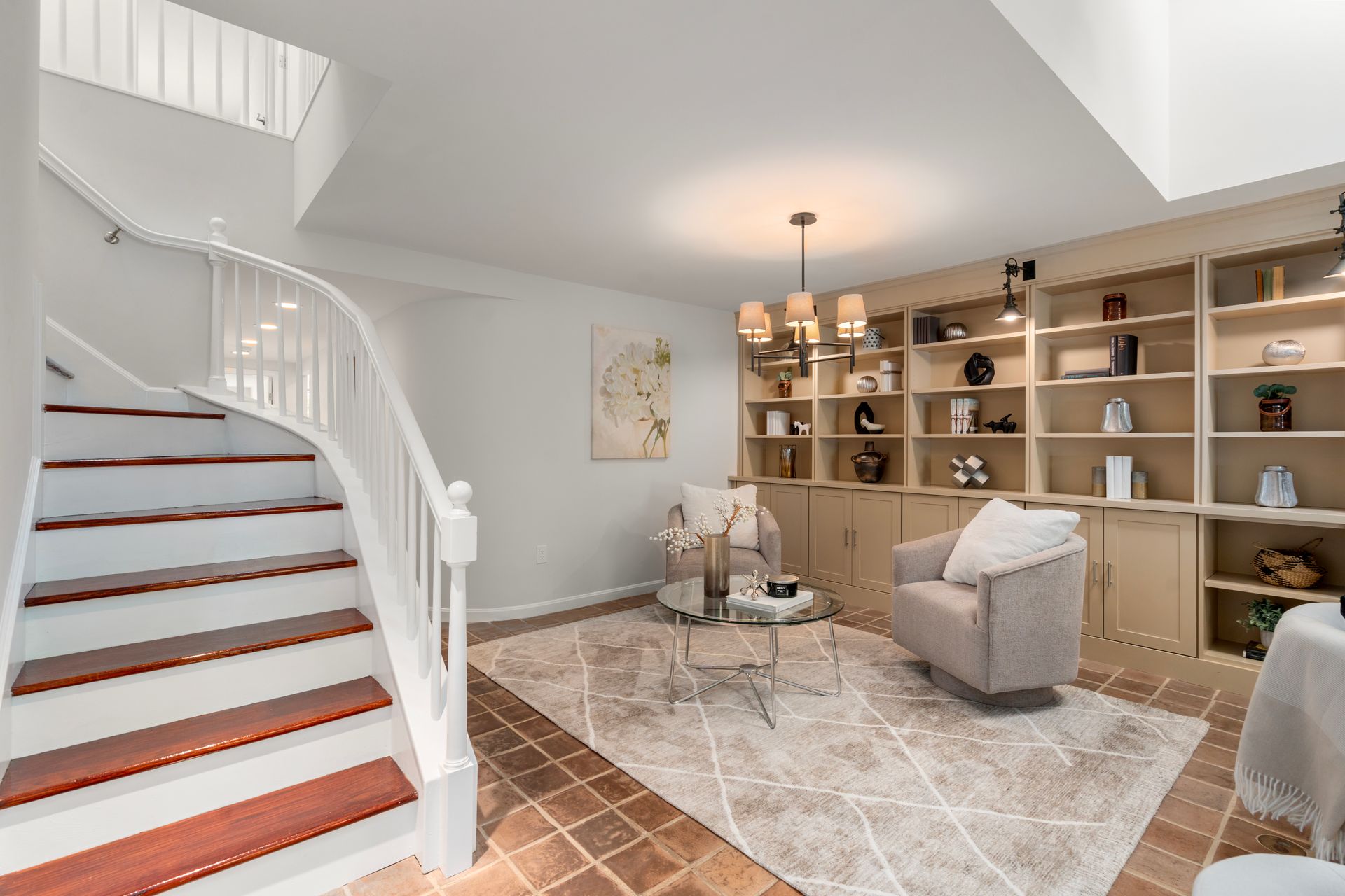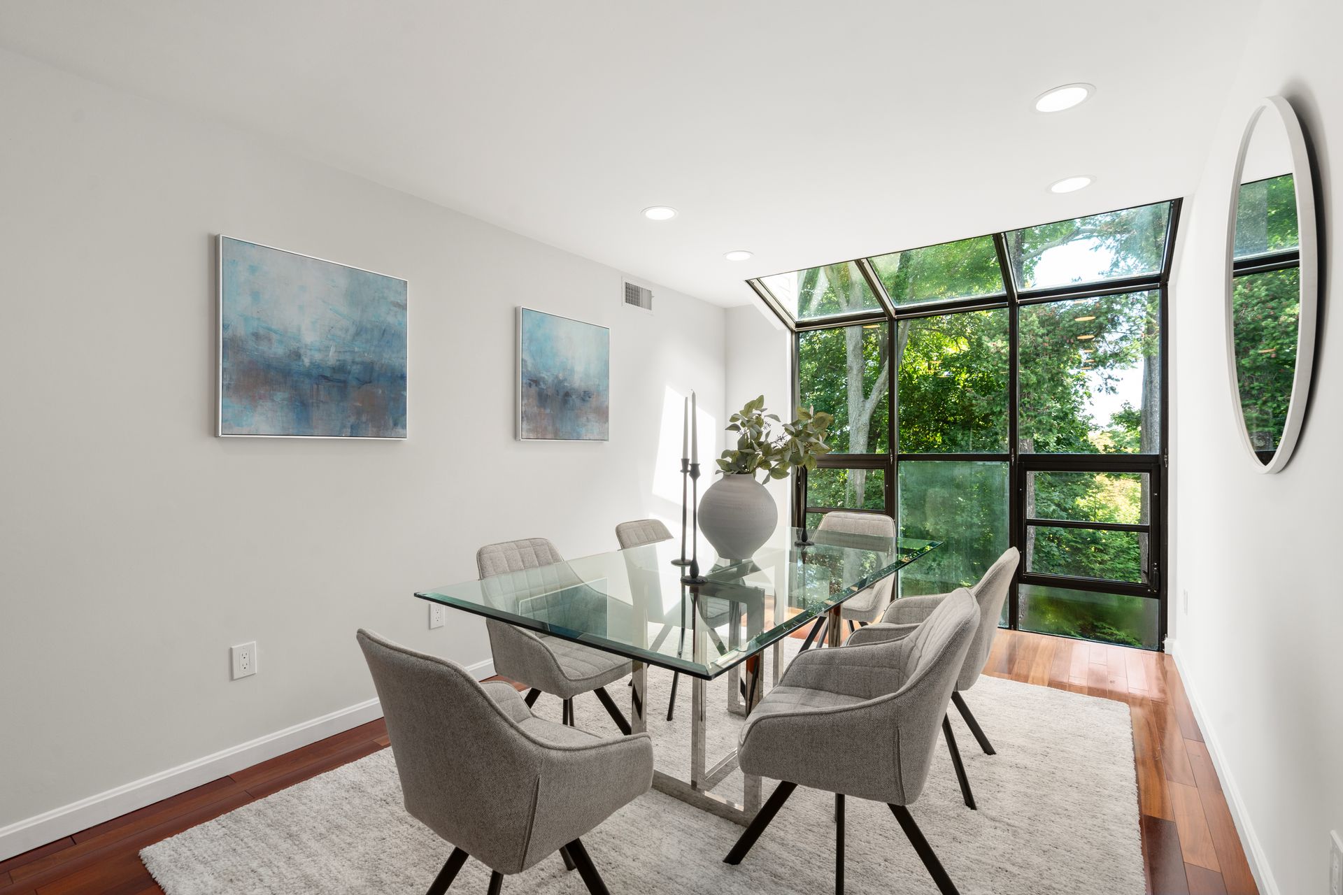 Enjoy seasonal skyline and treetop views from this spacious home at Fisher Hill Estates, a 13-acre landscaped community with pool and tennis courts. The foyer opens to a bright, versatile living space with open floor plan, vaulted ceiling with skylight, gas fireplace, custom built-ins, and sliders to a private patio. The updated kitchen offers a dining area with greenhouse windows. The oversized first-floor primary suite features a luxurious bathroom with double vanity, shower, radiant heated floors, walk-in closet, and built-in desk. Upstairs, two bedrooms open to a new (2025) deck, with full bathroom, large walk-in closet in hall, and laundry. Abundant built-ins, skylights, two-car, deeded garage parking with interior access, and storage room with cedar closet. Across from Brookline Reservoir Park, near Brookline Hills Green Line “D,” Route 9, Longwood Medical, Chestnut Hill, Brookline Village and Washington Square.