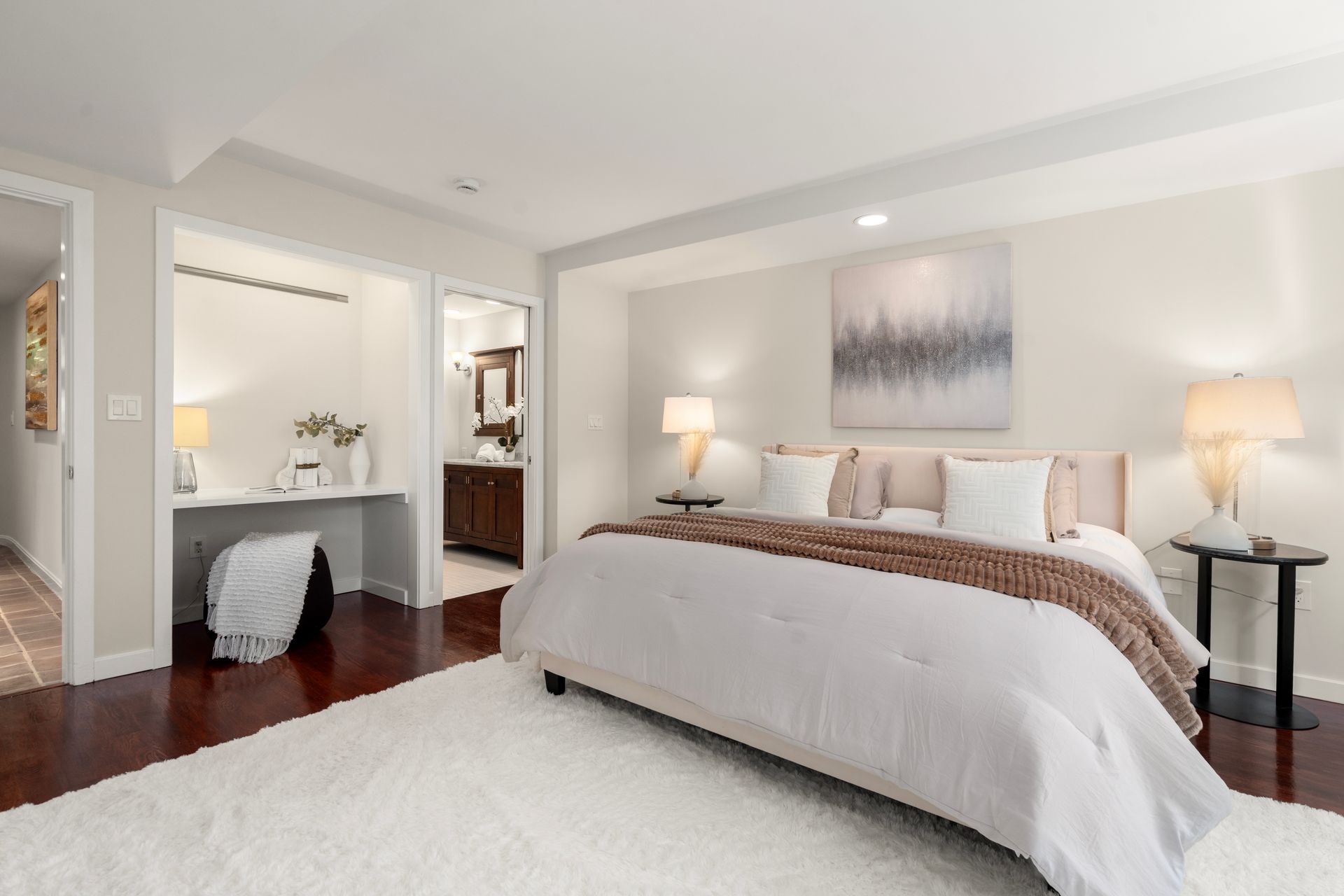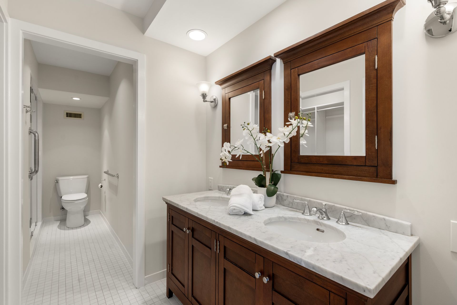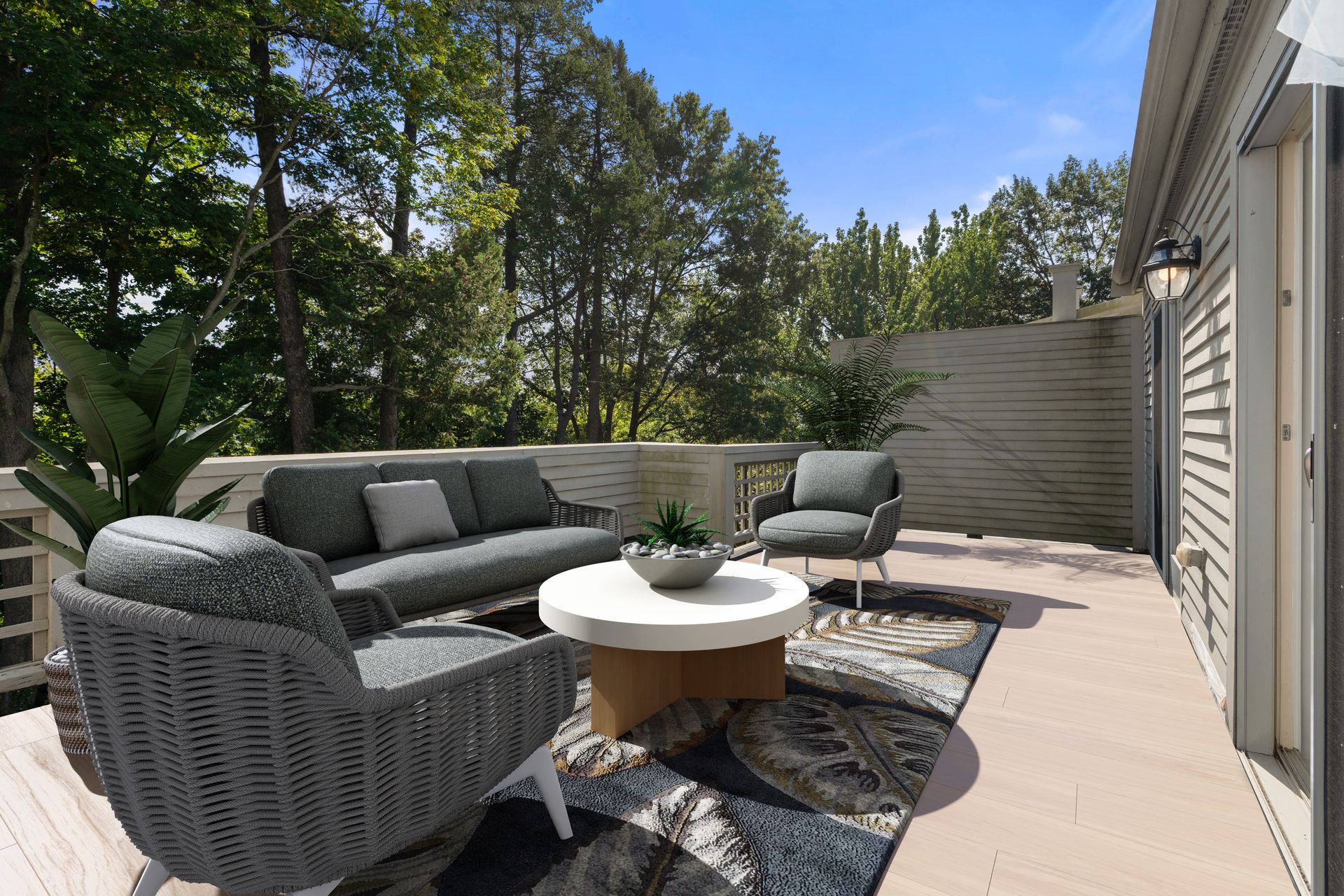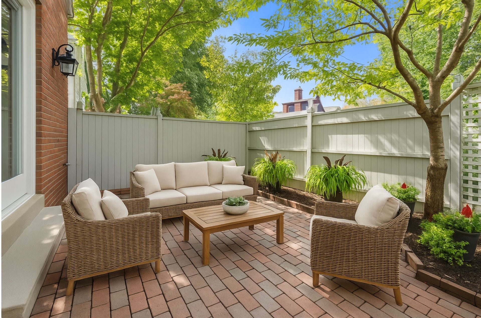 Enjoy seasonal skyline and treetop views from this spacious home at Fisher Hill Estates, a 13-acre landscaped community with pool and tennis courts. The foyer opens to a bright, versatile living space with open floor plan, vaulted ceiling with skylight, gas fireplace, custom built-ins, and sliders to a private patio. The updated kitchen offers a dining area with greenhouse windows. The oversized first-floor primary suite features a luxurious bathroom with double vanity, shower, radiant heated floors, walk-in closet, and built-in desk. Upstairs, two bedrooms open to a new (2025) deck, with full bathroom, large walk-in closet in hall, and laundry. Abundant built-ins, skylights, two-car, deeded garage parking with interior access, and storage room with cedar closet. Across from Brookline Reservoir Park, near Brookline Hills Green Line “D,” Route 9, Longwood Medical, Chestnut Hill, Brookline Village and Washington Square.