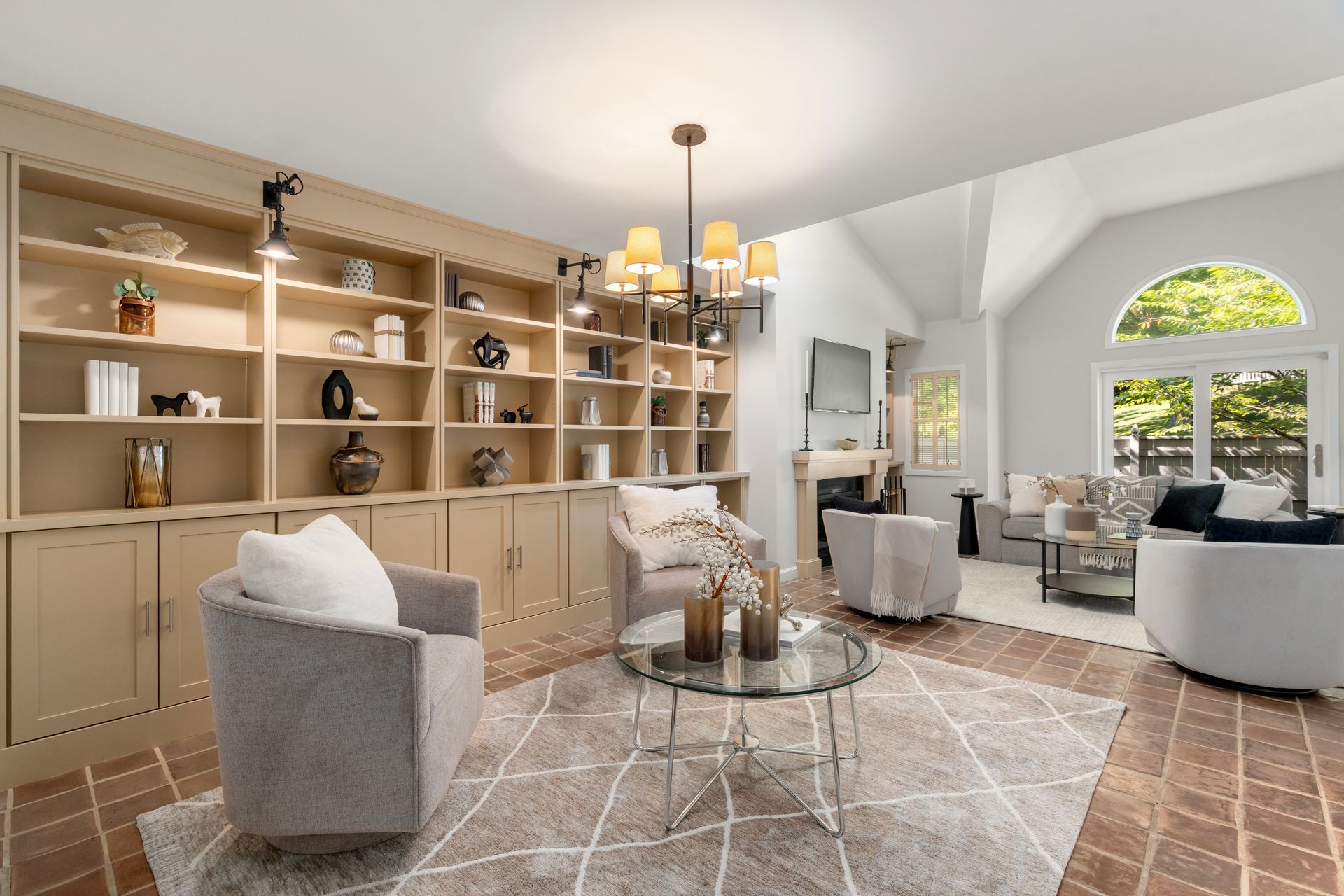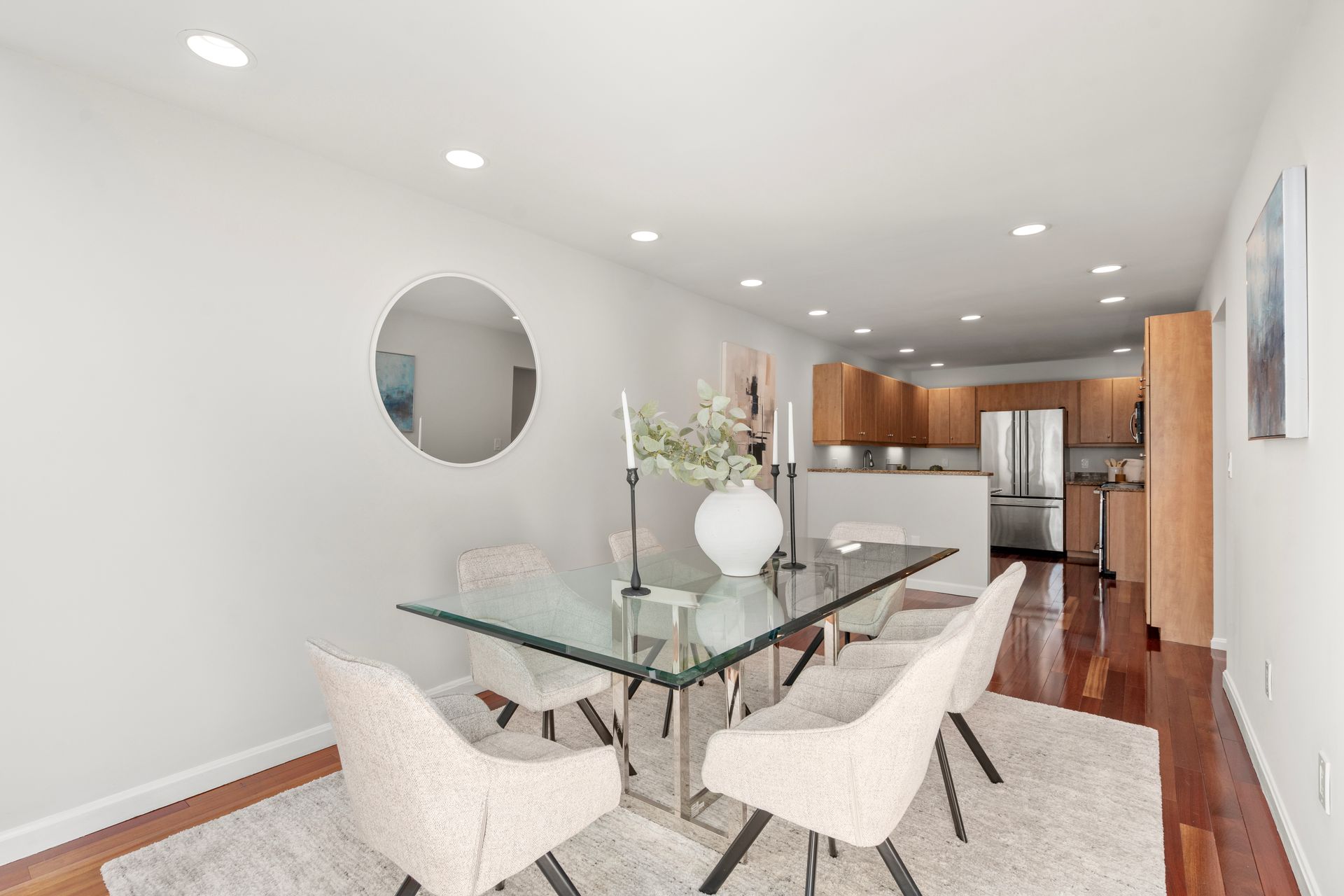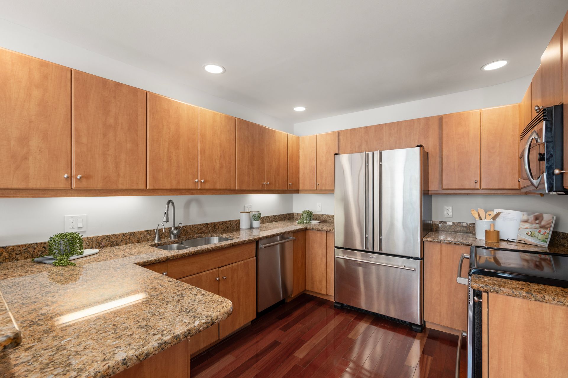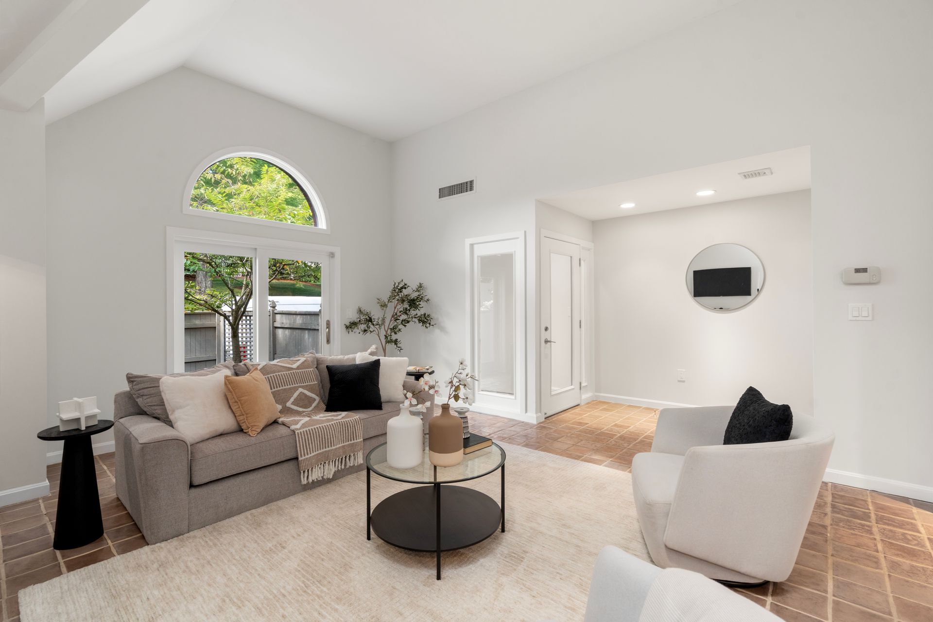 Enjoy seasonal skyline and treetop views from this spacious home at Fisher Hill Estates, a 13-acre landscaped community with pool and tennis courts. The foyer opens to a bright, versatile living space with open floor plan, vaulted ceiling with skylight, gas fireplace, custom built-ins, and sliders to a private patio. The updated kitchen offers a dining area with greenhouse windows. The oversized first-floor primary suite features a luxurious bathroom with double vanity, shower, radiant heated floors, walk-in closet, and built-in desk. Upstairs, two bedrooms open to a new (2025) deck, with full bathroom, large walk-in closet in hall, and laundry. Abundant built-ins, skylights, two-car, deeded garage parking with interior access, and storage room with cedar closet. Across from Brookline Reservoir Park, near Brookline Hills Green Line “D,” Route 9, Longwood Medical, Chestnut Hill, Brookline Village and Washington Square.