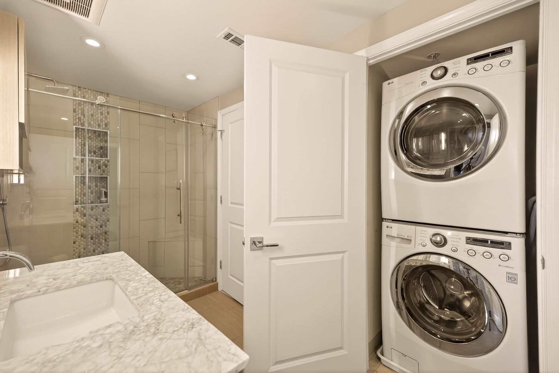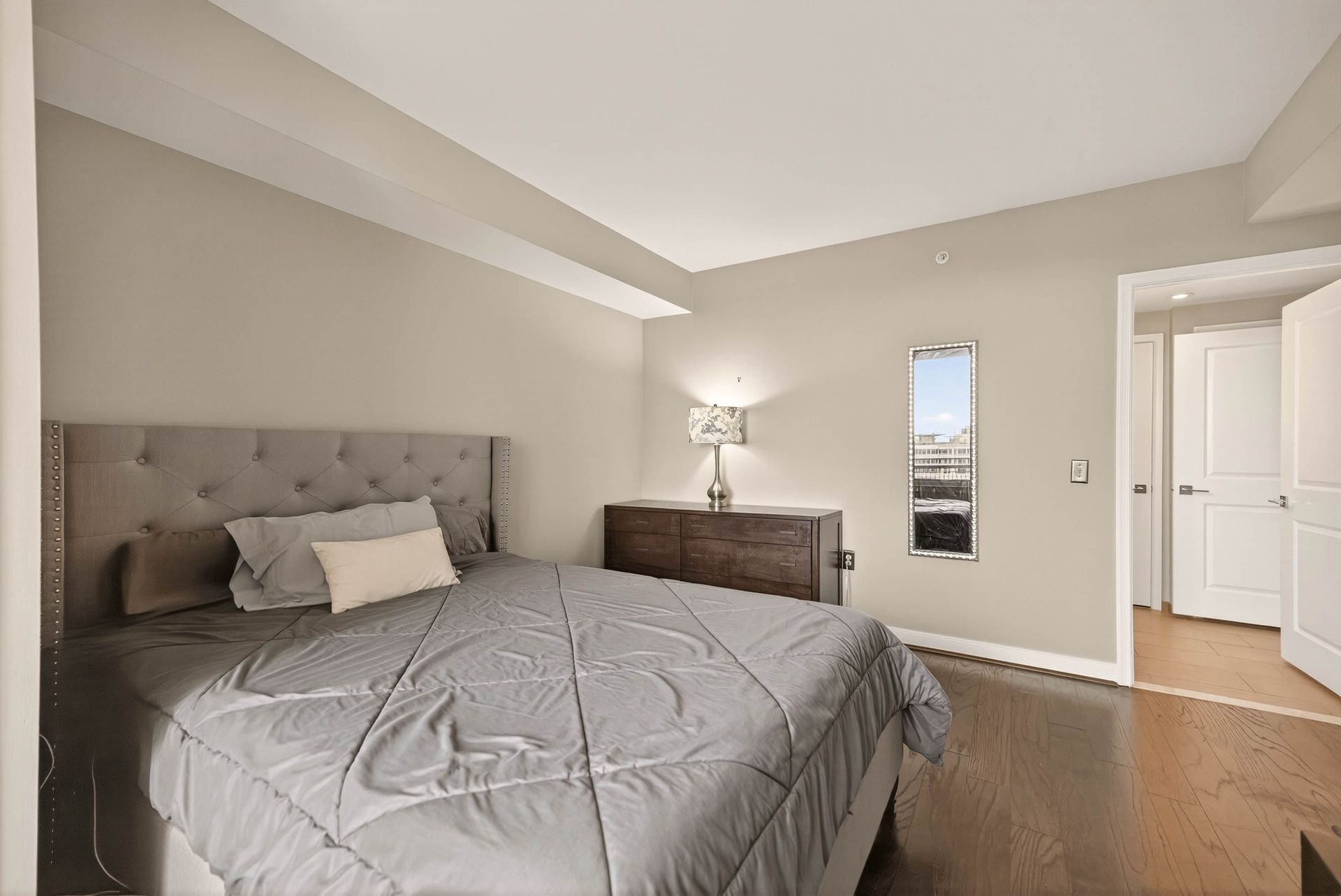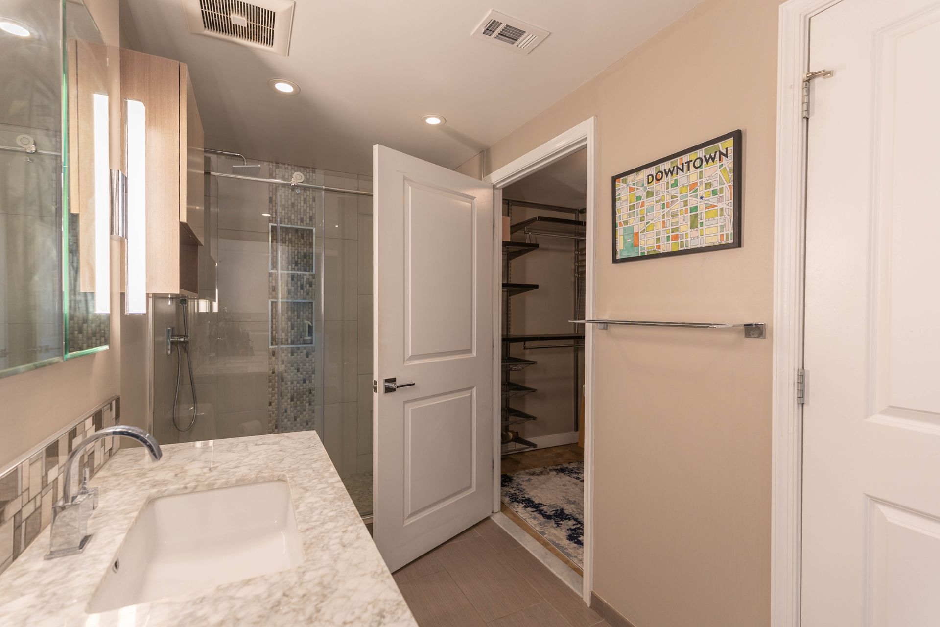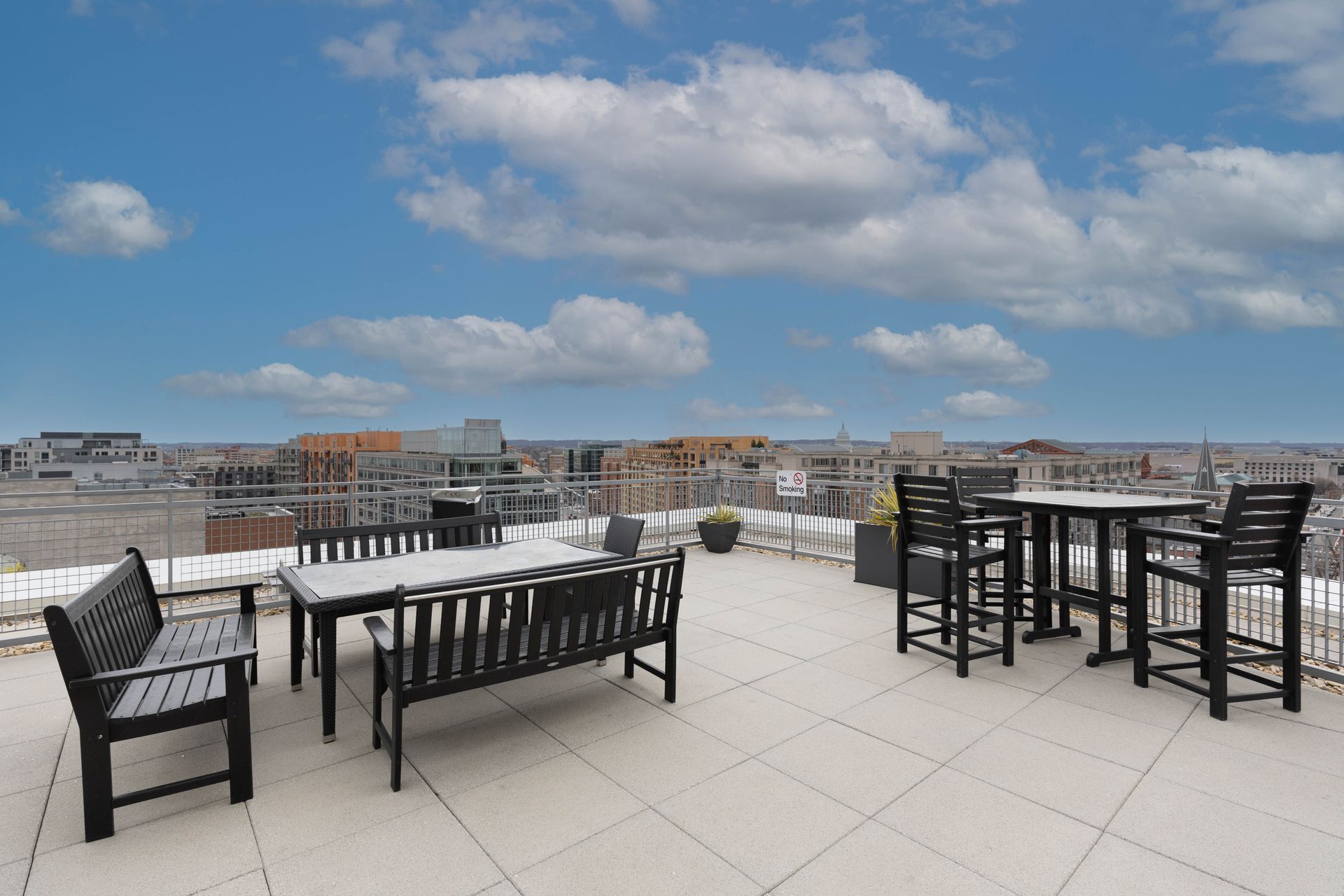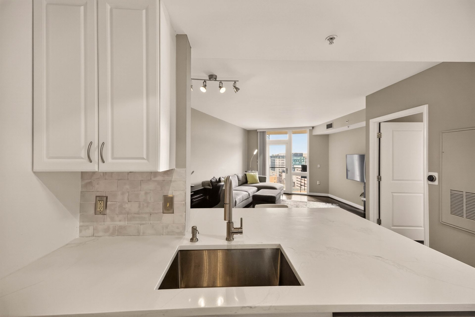 Nicely remodeled 1BR, 1BA home with over 700 square ft, that includes private storage and separately deeded underground garage parking. The Kitchen has gorgeous cascading white quartz counters, stainless steel appliances, gas cooking, and an open floor plan, overlooking the living room and your own private balcony with city views. The beautifully updated bath includes a walk-in shower with glass door, a full size stack washer-dryer and walk-in closet with Elfa pull out drawers and shoe racks. This professionally managed building has a reception desk with top notch staff, on-site management, community room, party room with kitchen available to rent for larger gatherings, and a fitness center with new equipment. Don't miss the spectacular rooftop terrace offering an outdoor pool, community grills, lounge seating areas and picnic tables. With a 97% walk score, and 5 metro lines within 5 blocks of this building, this location is hard to beat with dining, concerts, coffee shops, Conventions Centers, theatres, grocery stories and Union Station all minutes from your front door. Building is smoke free minus a designate are on the rooftop as well as pet friendly!