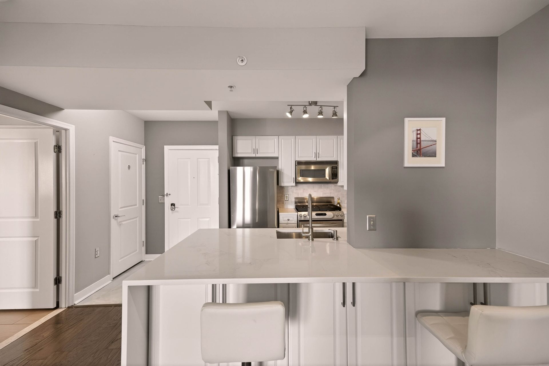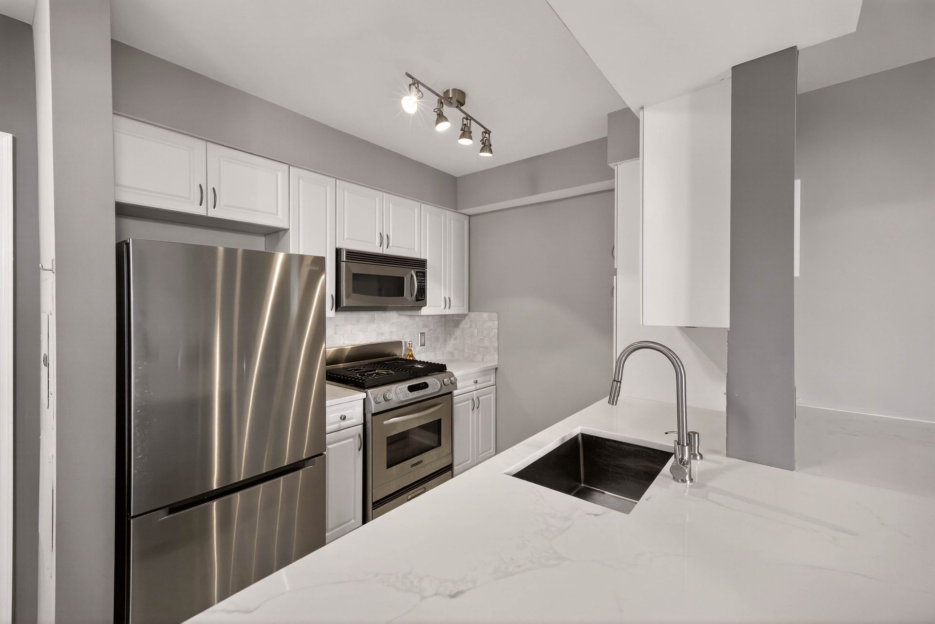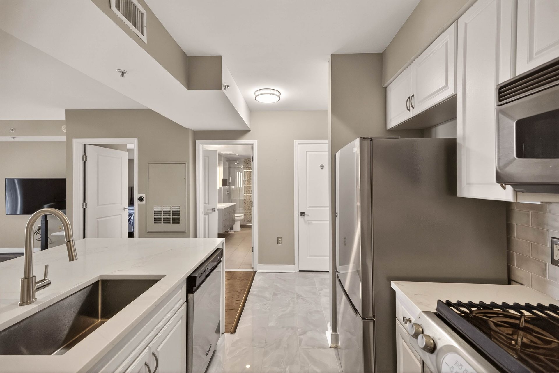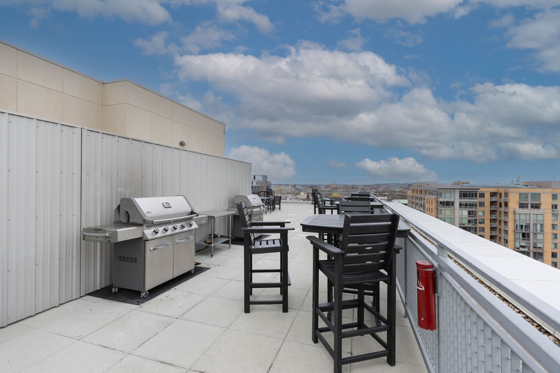 Nicely remodeled 1BR, 1BA home with over 700 square ft, that includes private storage and separately deeded underground garage parking. The Kitchen has gorgeous cascading white quartz counters, stainless steel appliances, gas cooking, and an open floor plan, overlooking the living room and your own private balcony with city views. The beautifully updated bath includes a walk-in shower with glass door, a full size stack washer-dryer and walk-in closet with Elfa pull out drawers and shoe racks. This professionally managed building has a reception desk with top notch staff, on-site management, community room, party room with kitchen available to rent for larger gatherings, and a fitness center with new equipment. Don't miss the spectacular rooftop terrace offering an outdoor pool, community grills, lounge seating areas and picnic tables. With a 97% walk score, and 5 metro lines within 5 blocks of this building, this location is hard to beat with dining, concerts, coffee shops, Conventions Centers, theatres, grocery stories and Union Station all minutes from your front door. Building is smoke free minus a designate are on the rooftop as well as pet friendly!