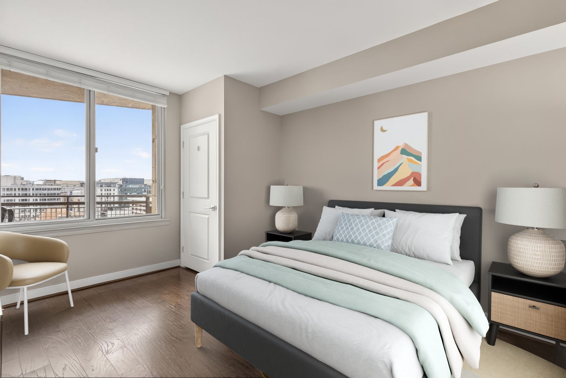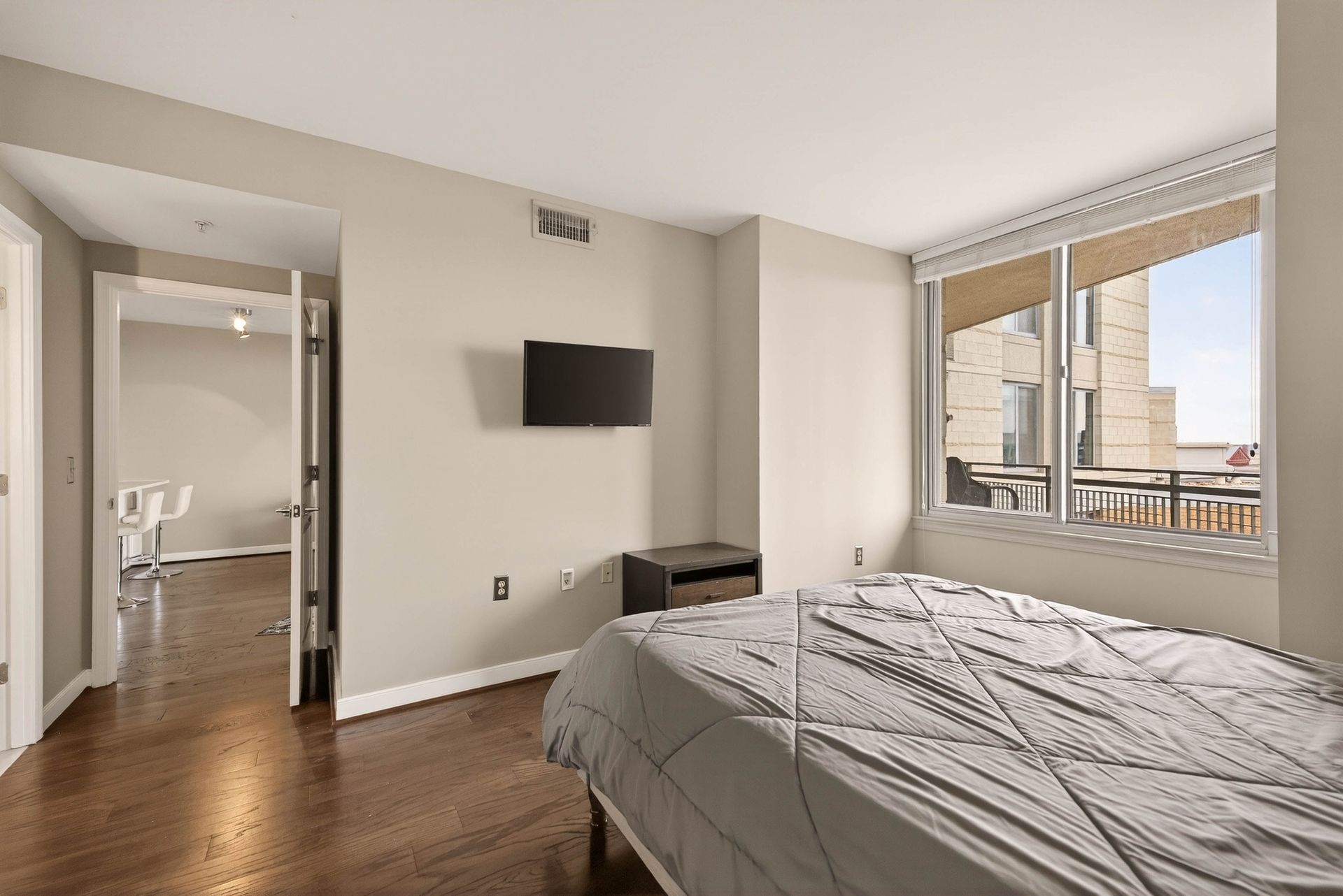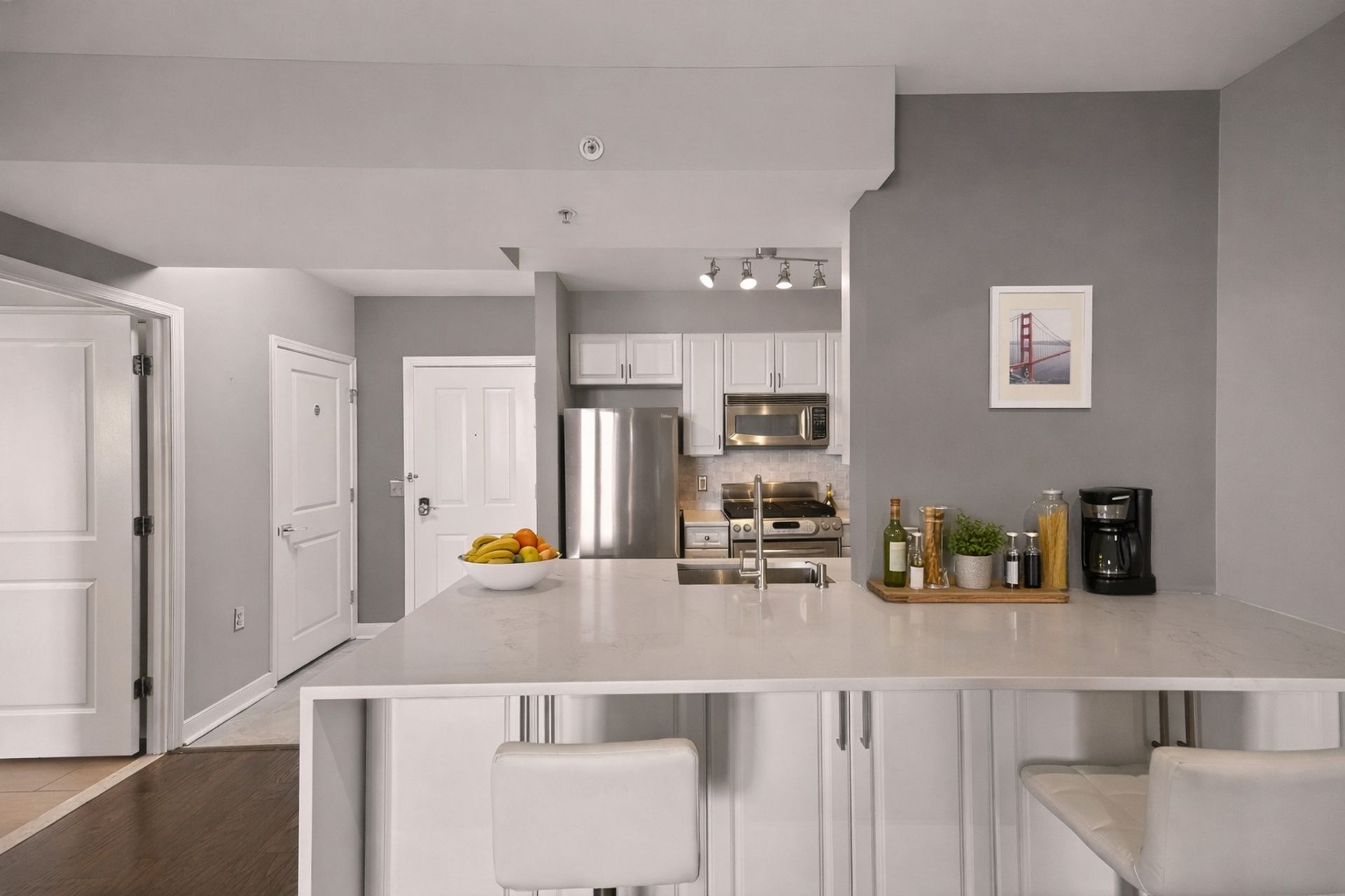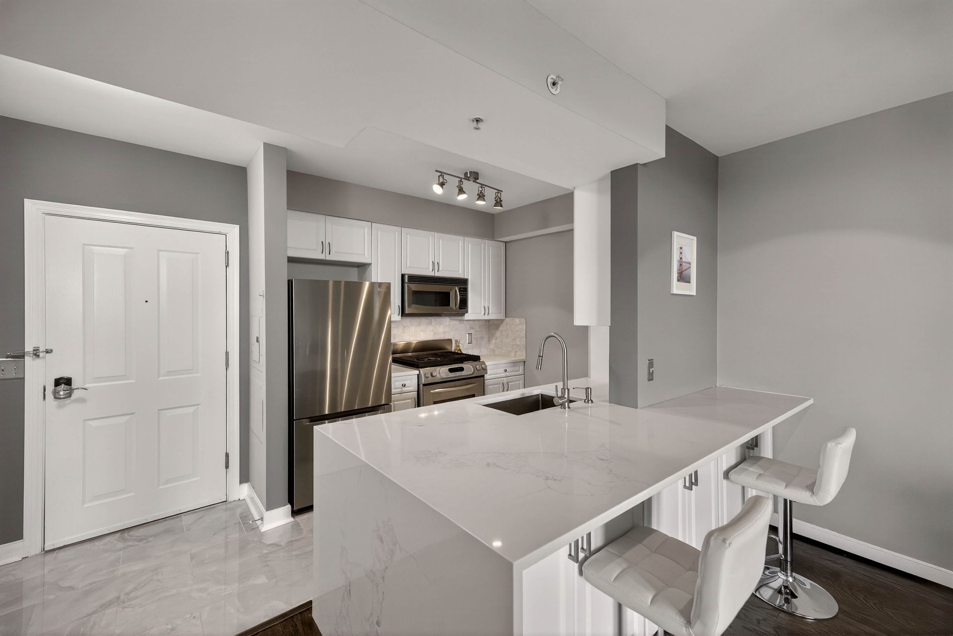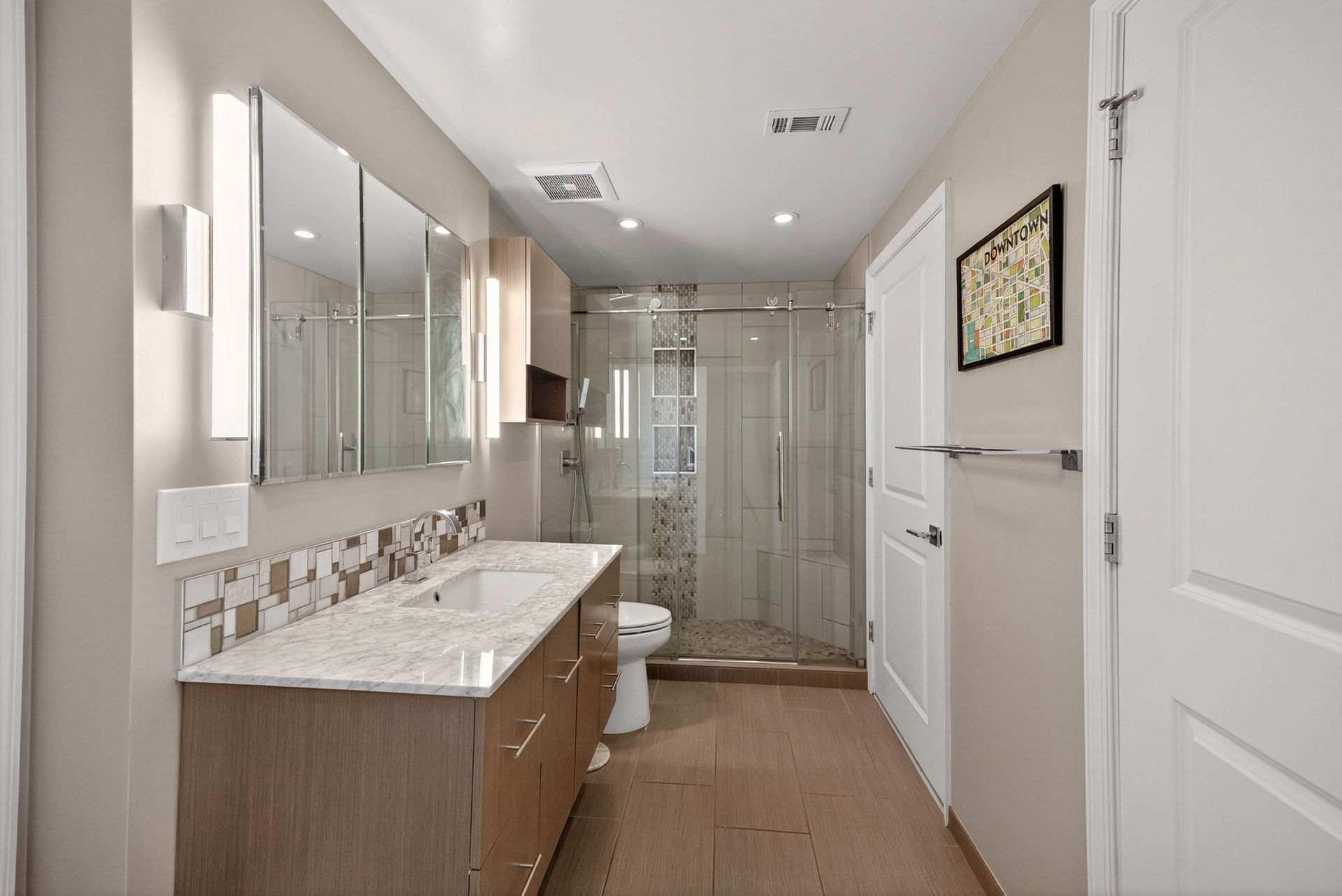 Nicely remodeled 1BR, 1BA home with over 700 square ft, that includes private storage and separately deeded underground garage parking. The Kitchen has gorgeous cascading white quartz counters, stainless steel appliances, gas cooking, and an open floor plan, overlooking the living room and your own private balcony with city views. The beautifully updated bath includes a walk-in shower with glass door, a full size stack washer-dryer and walk-in closet with Elfa pull out drawers and shoe racks. This professionally managed building has a reception desk with top notch staff, on-site management, community room, party room with kitchen available to rent for larger gatherings, and a fitness center with new equipment. Don't miss the spectacular rooftop terrace offering an outdoor pool, community grills, lounge seating areas and picnic tables. With a 97% walk score, and 5 metro lines within 5 blocks of this building, this location is hard to beat with dining, concerts, coffee shops, Conventions Centers, theatres, grocery stories and Union Station all minutes from your front door. Building is smoke free minus a designate are on the rooftop as well as pet friendly!