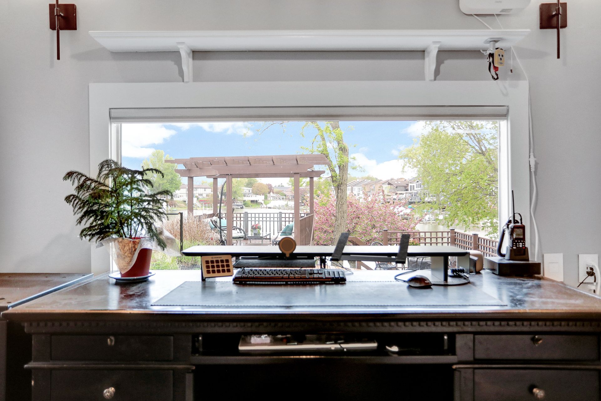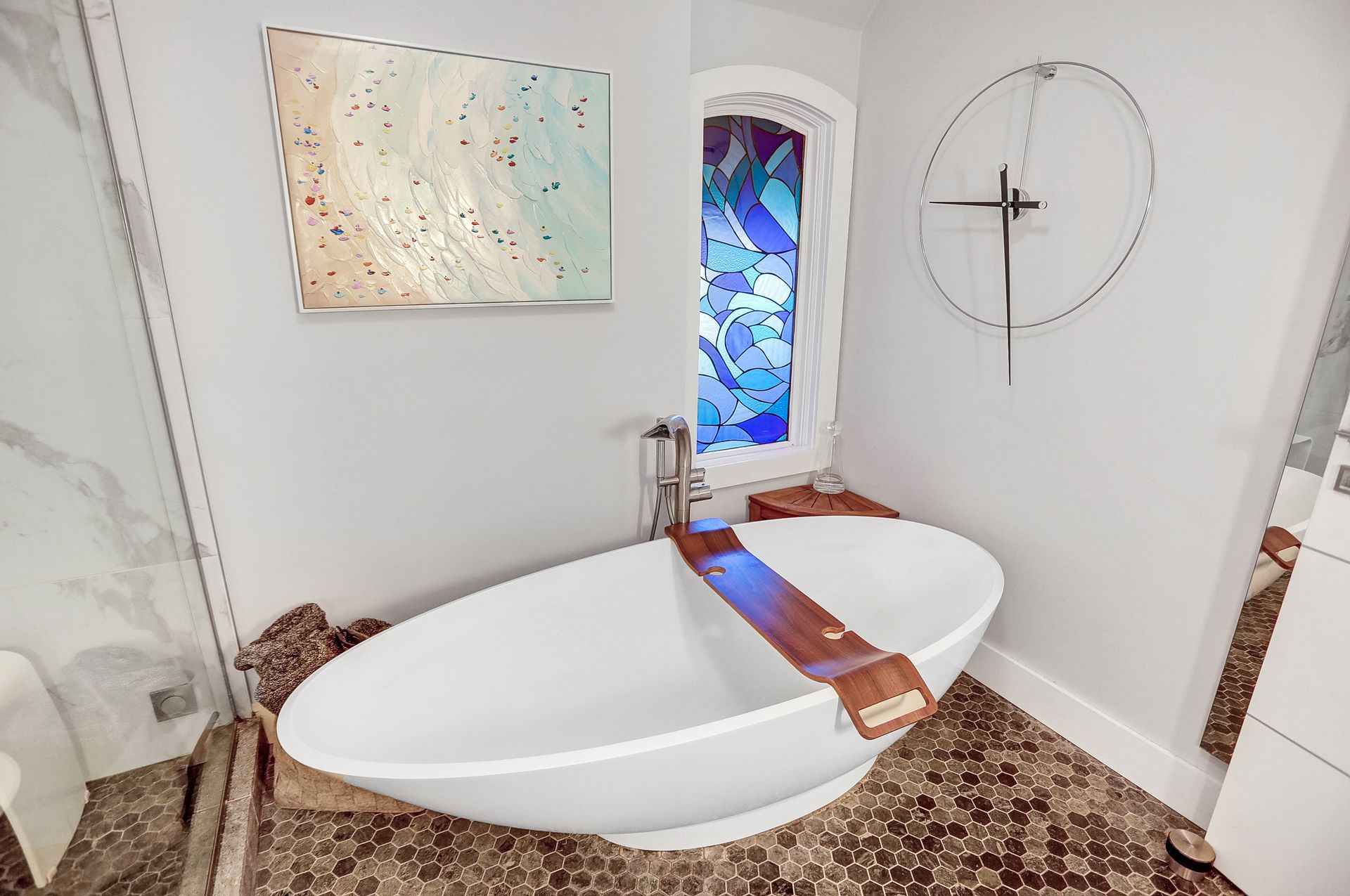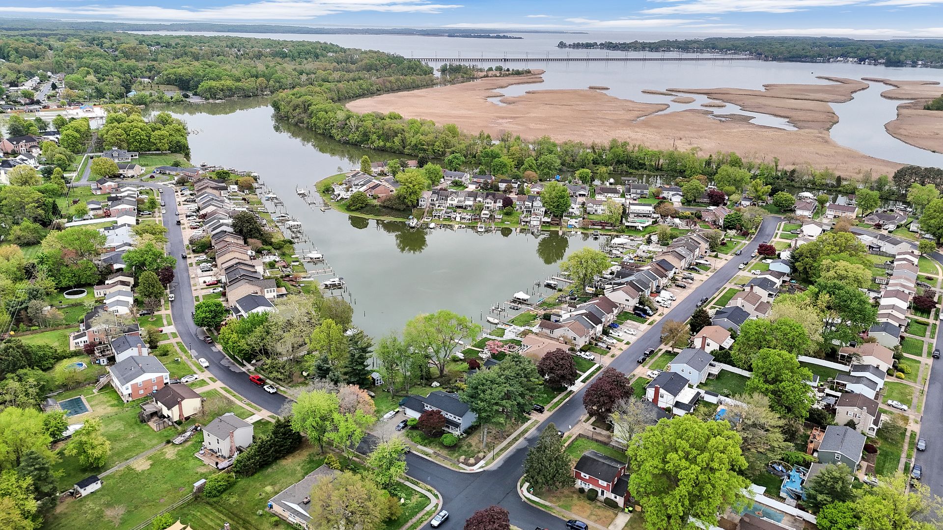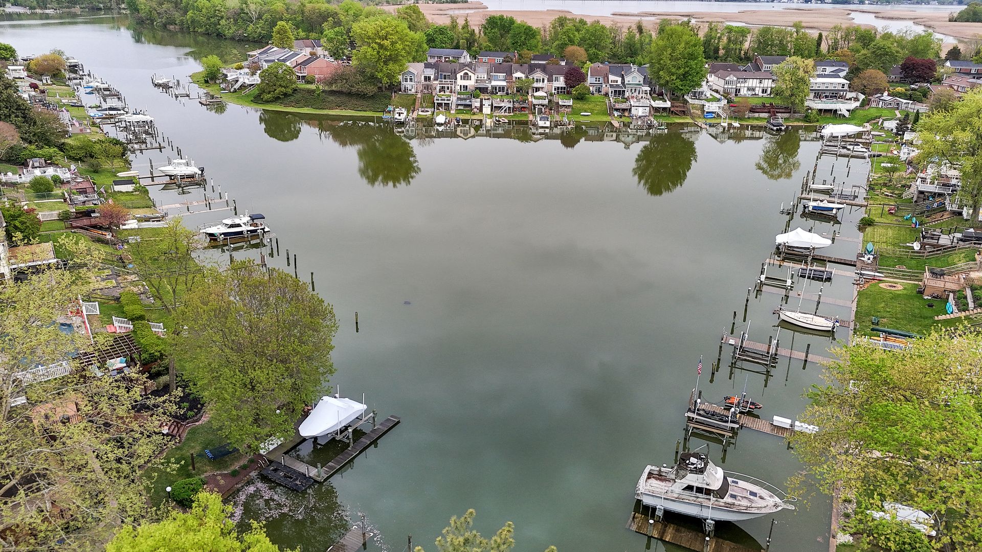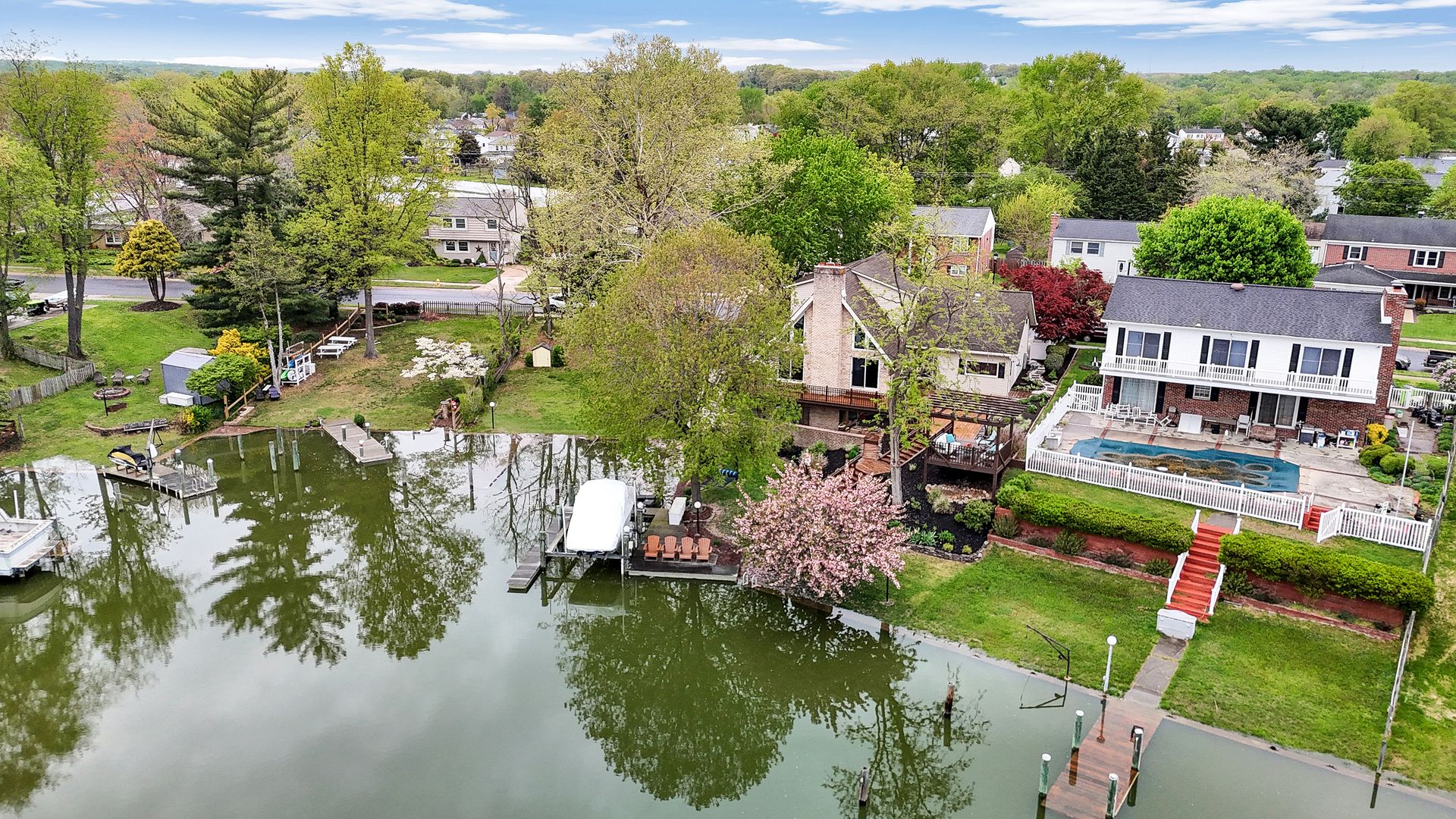 A capturing family room, adorned with a perfect waterfront view, atrium ceiling, industrial fan and a warm pellet stove is open to the gourmet, custom designed kitchen, with soapstone countertops, hand-made tile from Morocco, chef-grade appliances and countless custom finishes and conveniences. The dining room creates a quaint, sun-filled and welcoming atmosphere; enjoy the convenient main level office space with an inspiring view and near silent laundry area with adjacent half bath. This waterfront home affords four bedrooms; on the main level, a luxurious primary suite complete with a walk-in closet and the supreme essence of a spa bathroom.