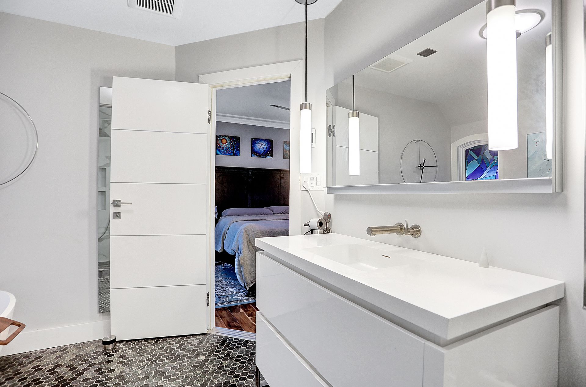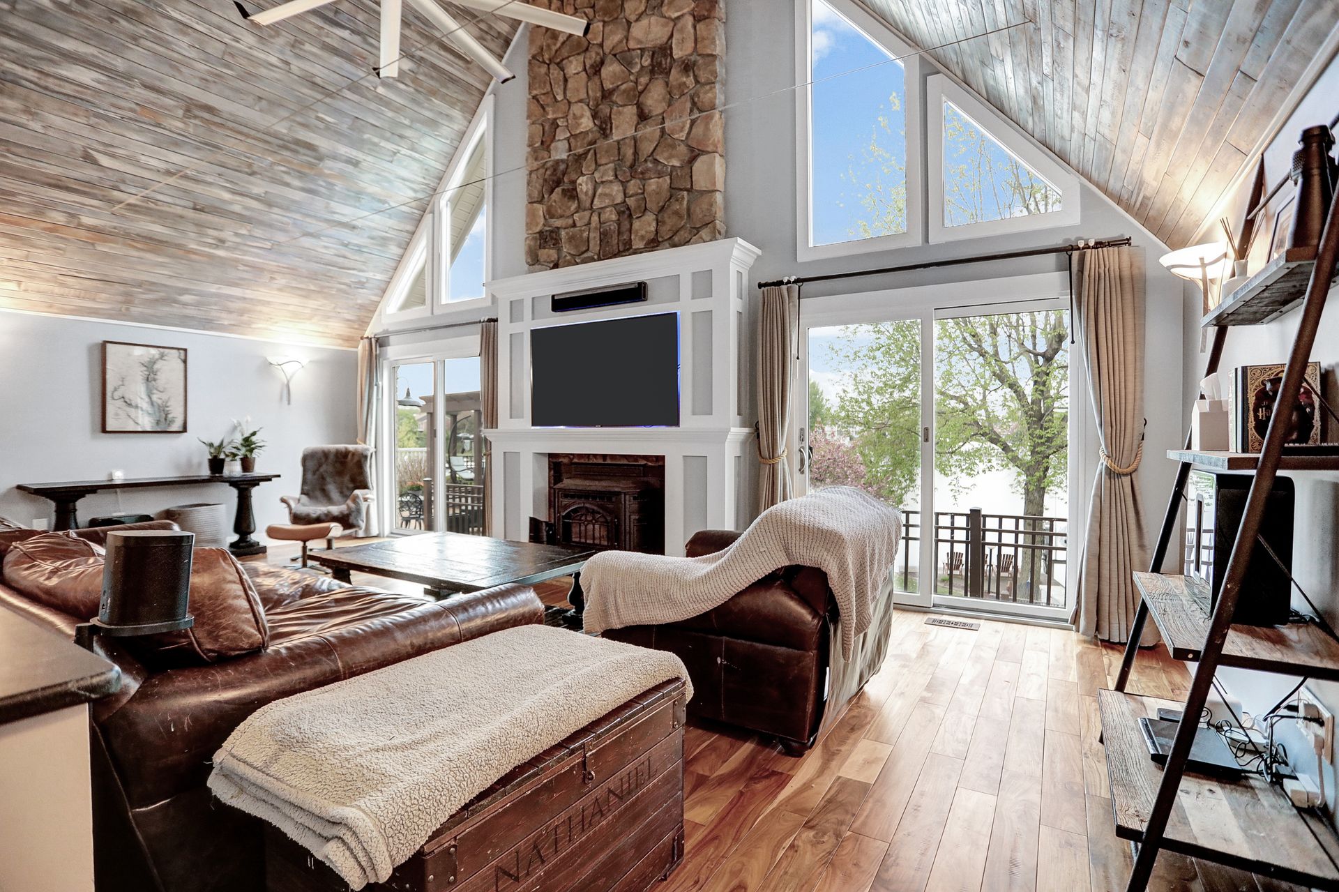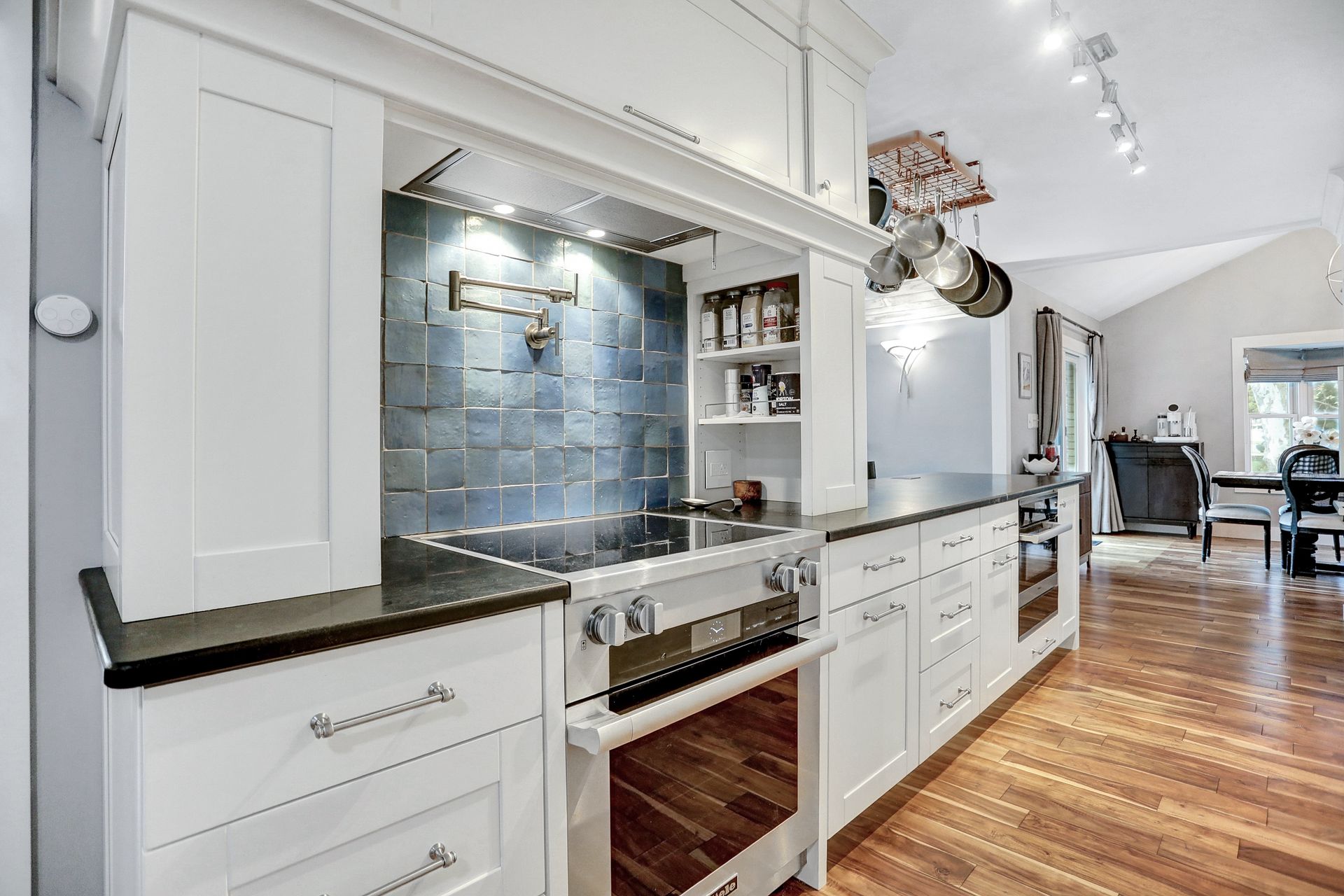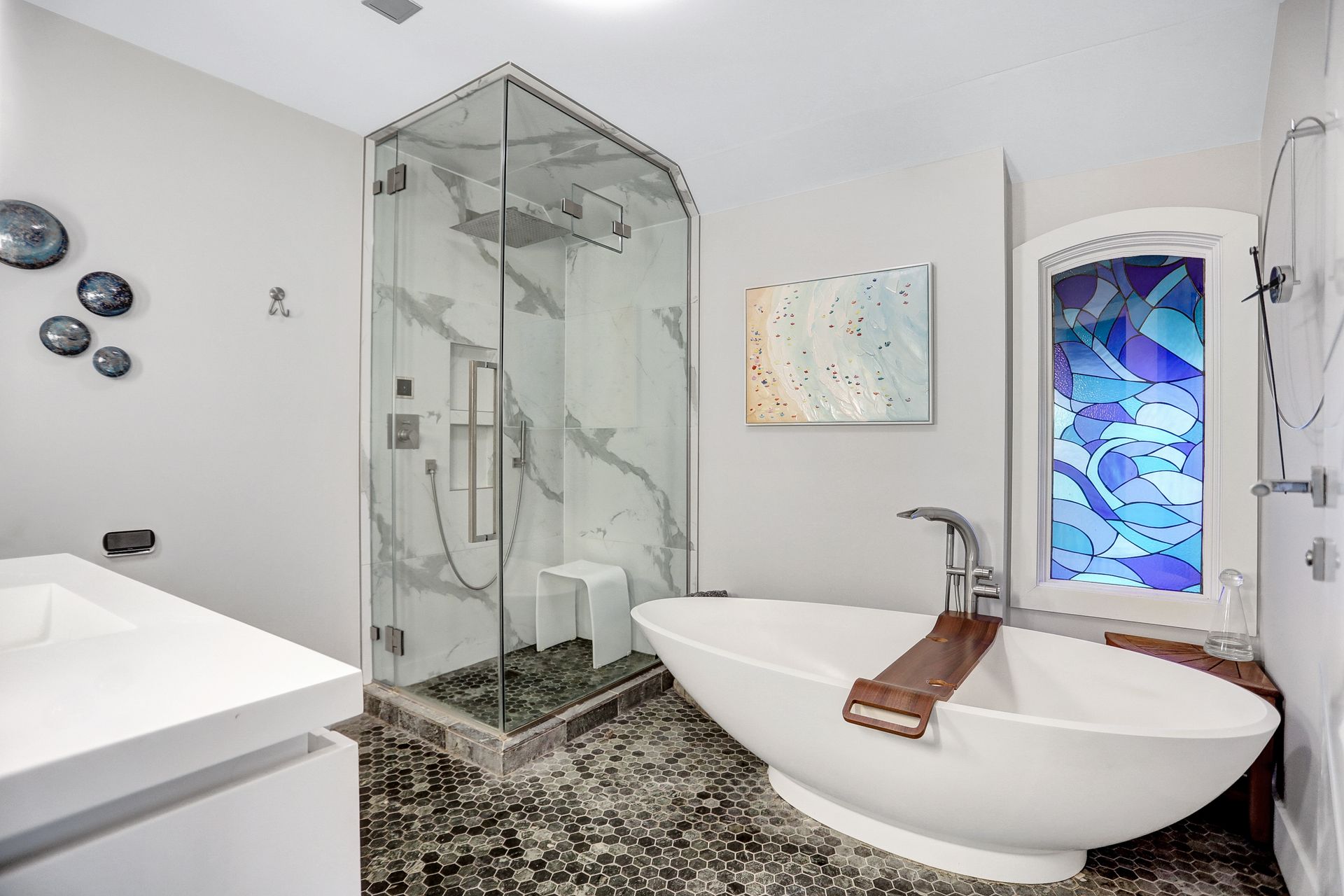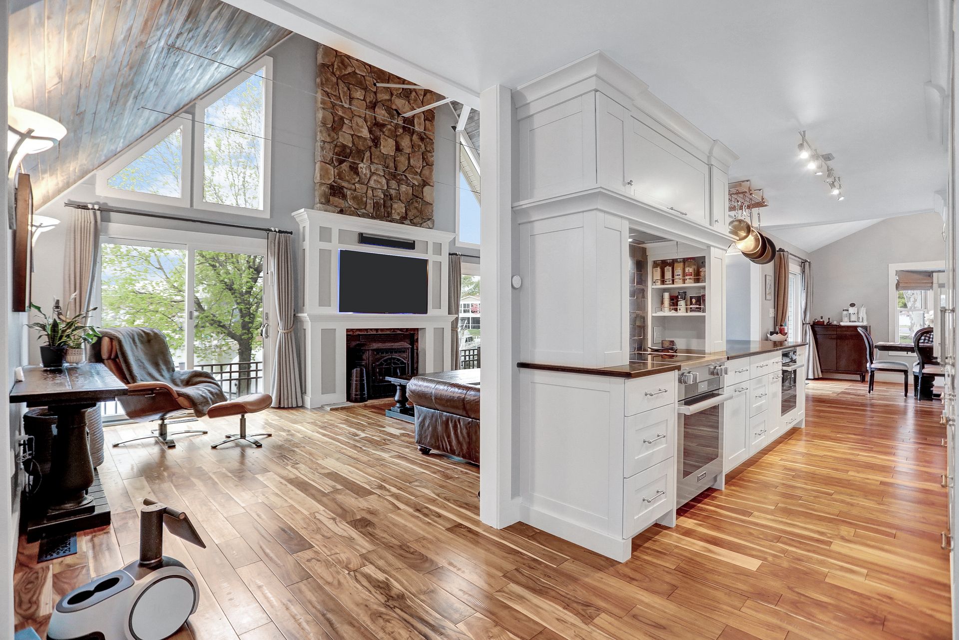 A capturing family room, adorned with a perfect waterfront view, atrium ceiling, industrial fan and a warm pellet stove is open to the gourmet, custom designed kitchen, with soapstone countertops, hand-made tile from Morocco, chef-grade appliances and countless custom finishes and conveniences. The dining room creates a quaint, sun-filled and welcoming atmosphere; enjoy the convenient main level office space with an inspiring view and near silent laundry area with adjacent half bath. This waterfront home affords four bedrooms; on the main level, a luxurious primary suite complete with a walk-in closet and the supreme essence of a spa bathroom.