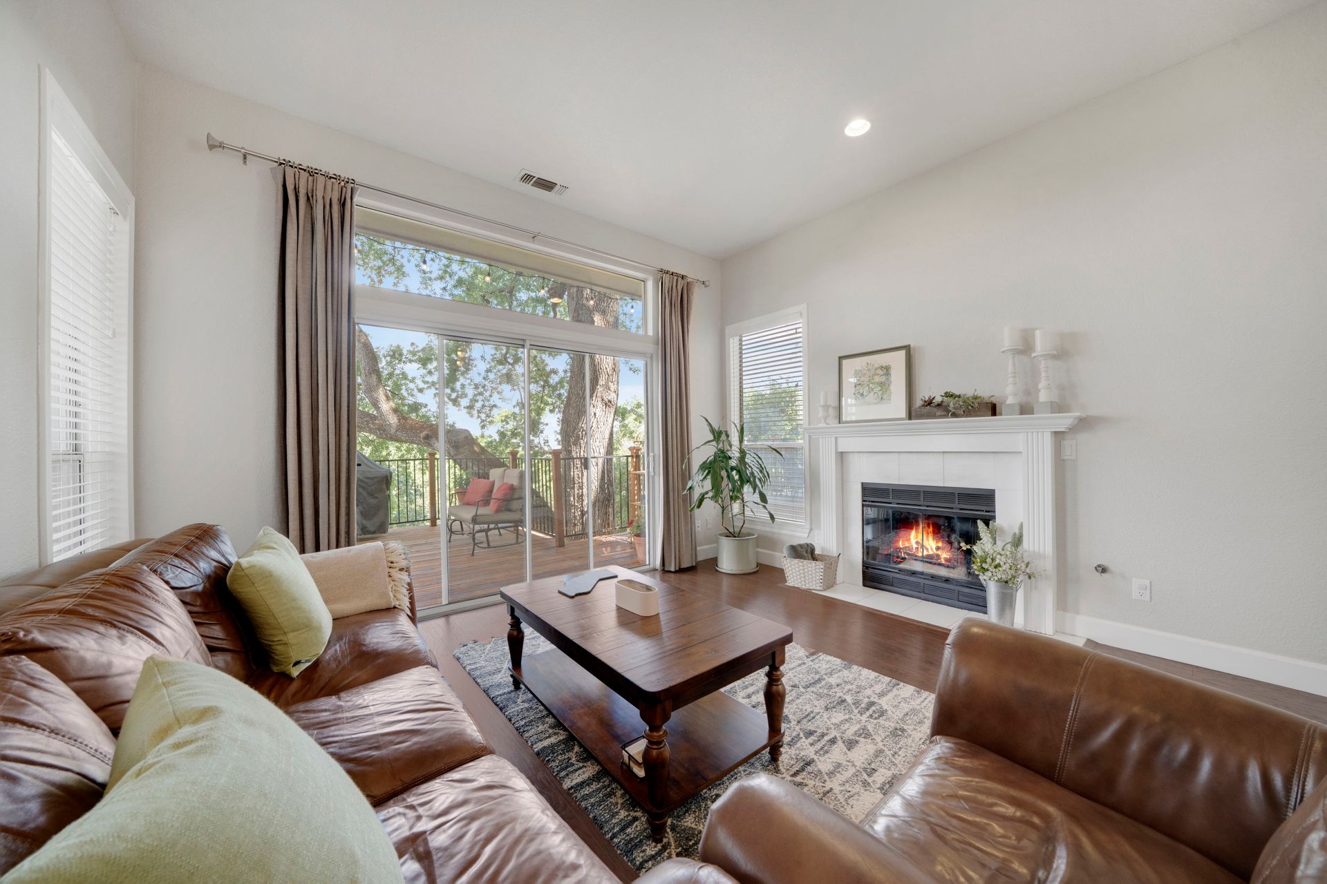 Enjoy expansive views of majestic oak trees and the distant valley from this beautifully maintained three bedroom, two and one-half bath home with approximately 1,900 square feet of livable space. Nestled in a peaceful gated cul-de-sac within the desirable Stanford Village community, this home offers the ideal blend of comfort, energy efficiency, and style. Features include owned solar (with a true-up of $0), a whole-house fan, ceiling fans, and numerous thoughtful updates throughout. The open-concept kitchen is outfitted with granite countertops, stainless steel appliances, and ample cabinetry, ideal for cooking, hosting, or everyday living. The dining area and spacious main balcony both showcase serene, tree-filled views, while the primary suite includes a private balcony for added tranquility. Additional highlights include abundant storage, a location that backs to open space for privacy, and access to outstanding community amenities including a pool, spa, and clubhouse. Enjoy low traffic, a low HOA, no Mello Roos, and proximity to top-rated schools, shopping, dining, parks, and freeway access. Come and See!