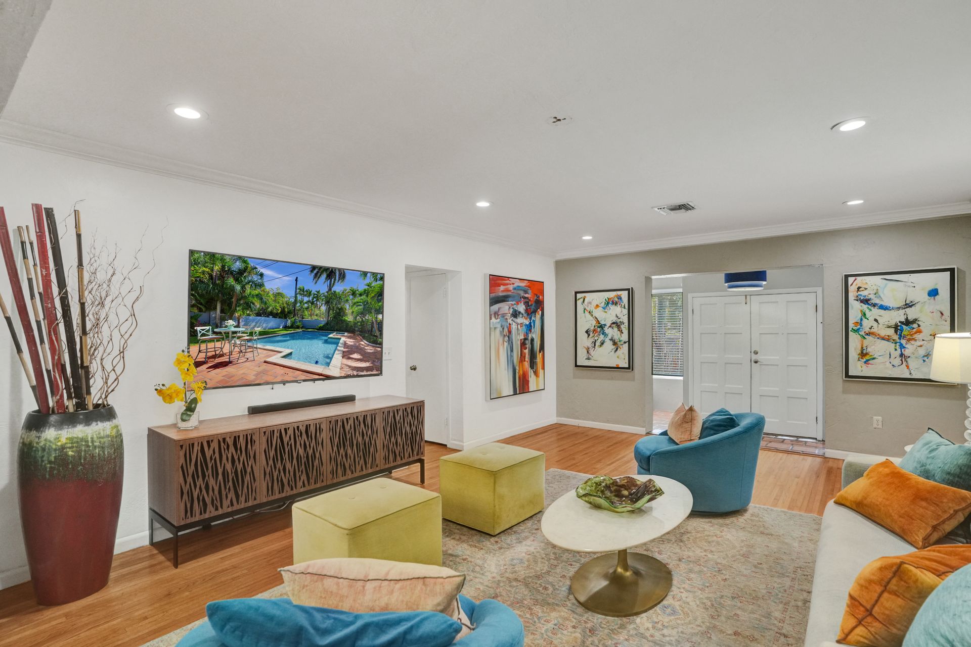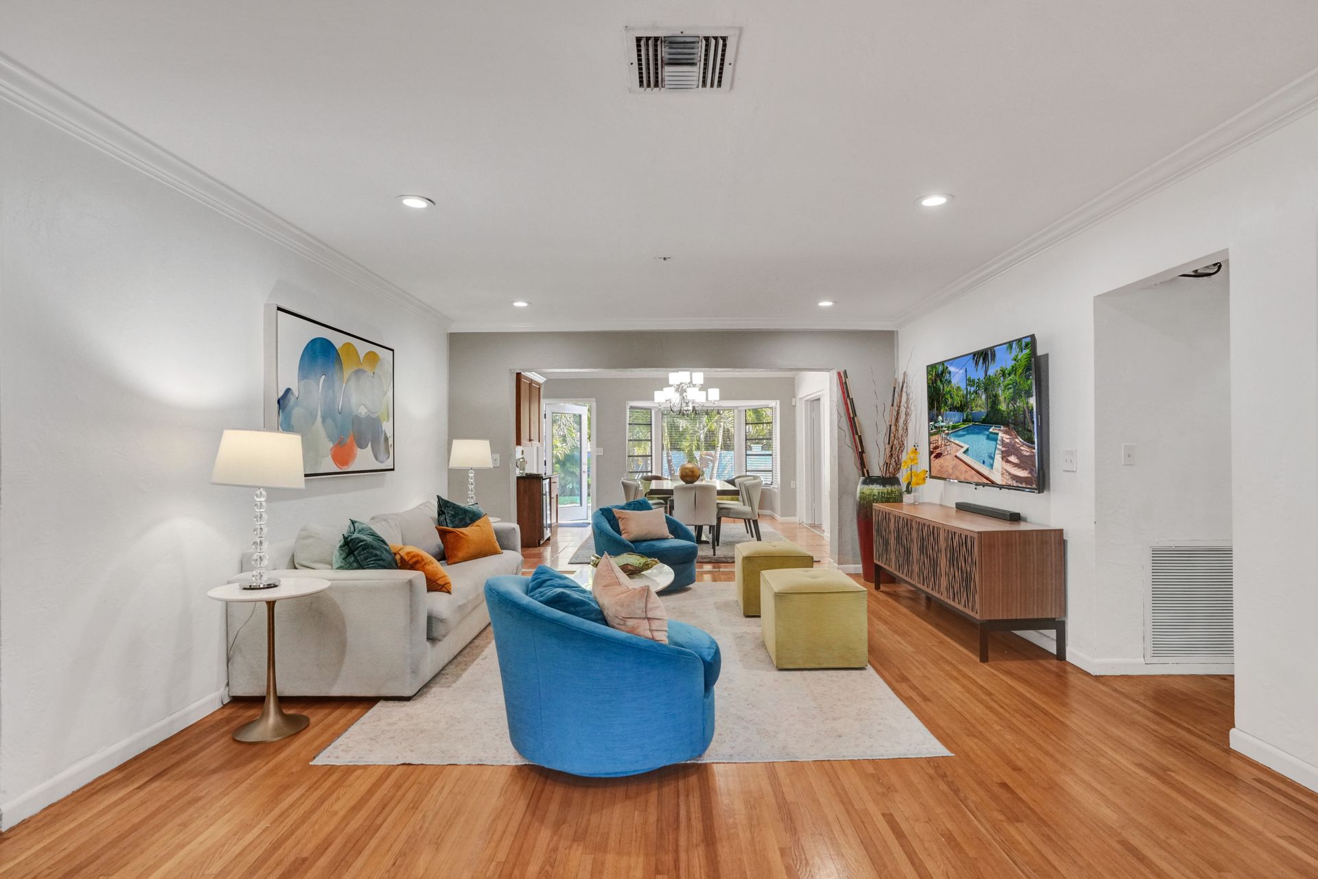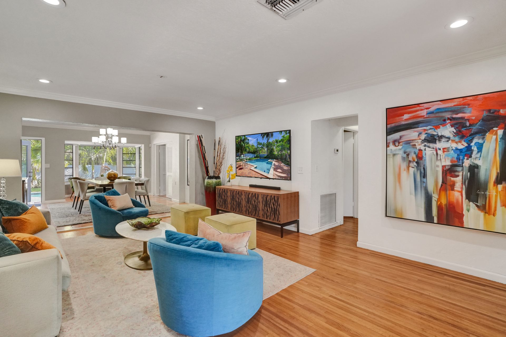 The updated kitchen is equipped with modern amenities, while the outdoor living area provides a perfect setting for dining and entertaining, complete with a brick patio and a fence. The inviting pool area offers a refreshing retreat, making it ideal for enjoying the Florida climate. This well-maintained property is an excellent opportunity to experience a perfect indoor and outdoor living balance.