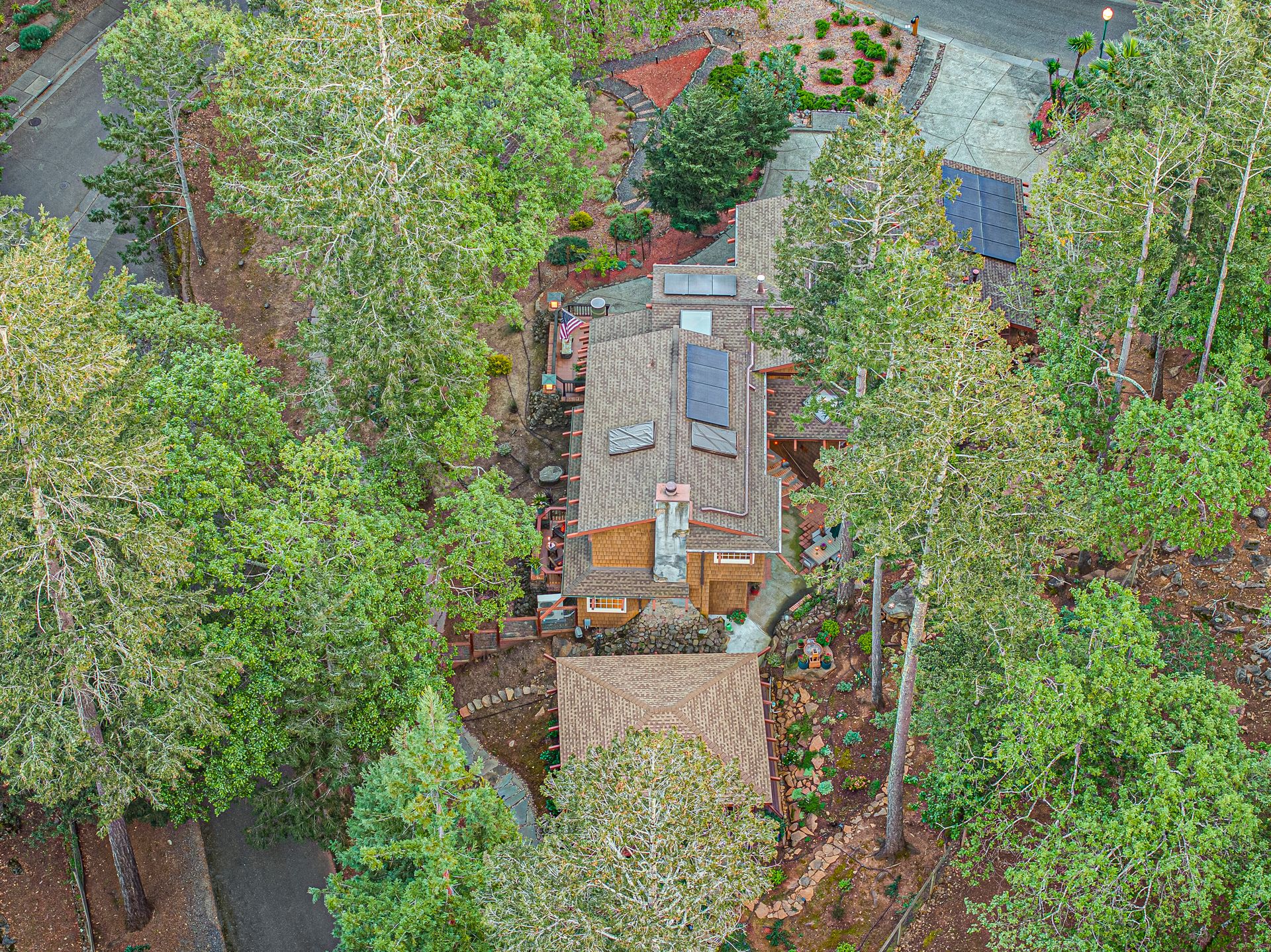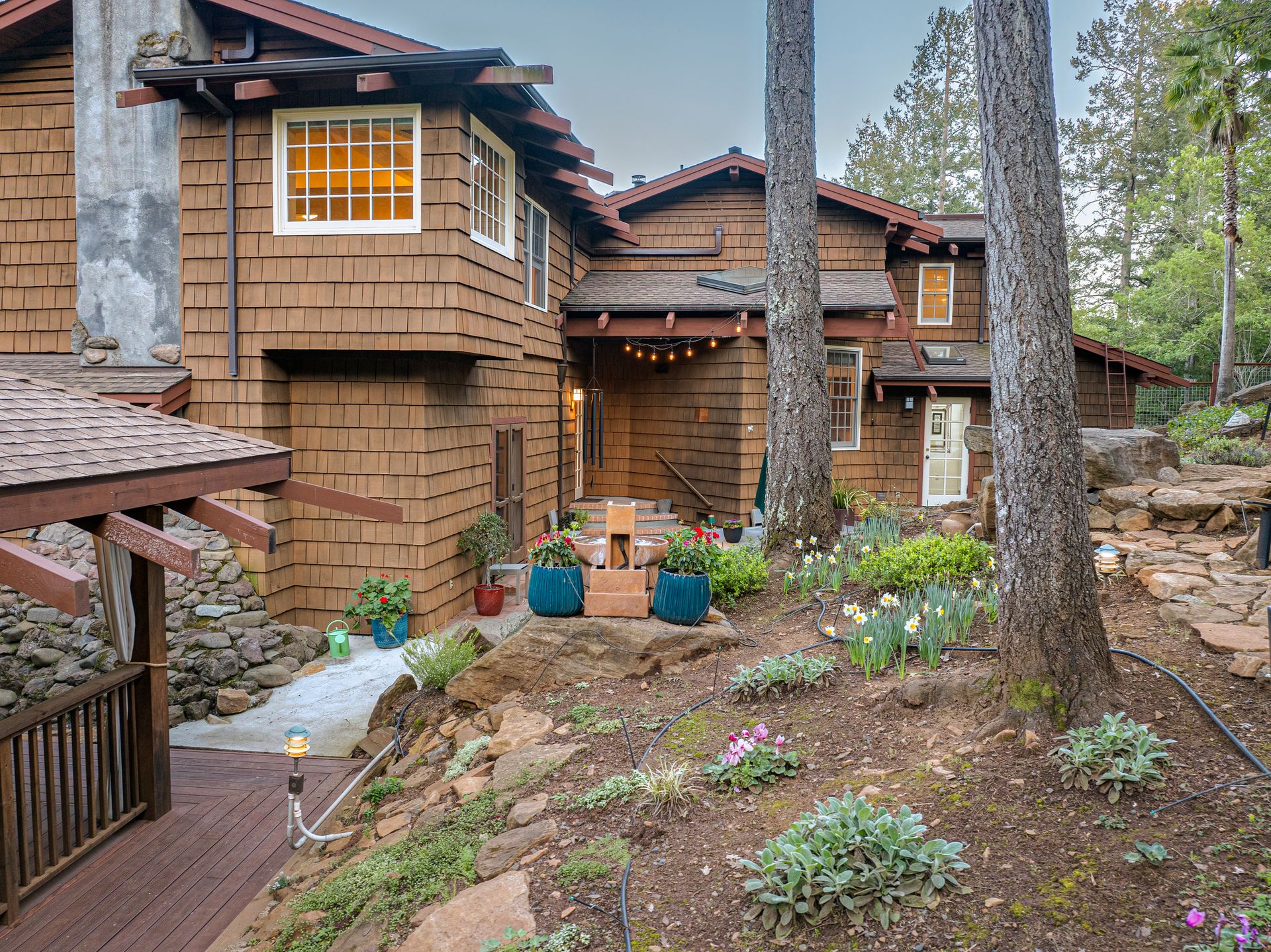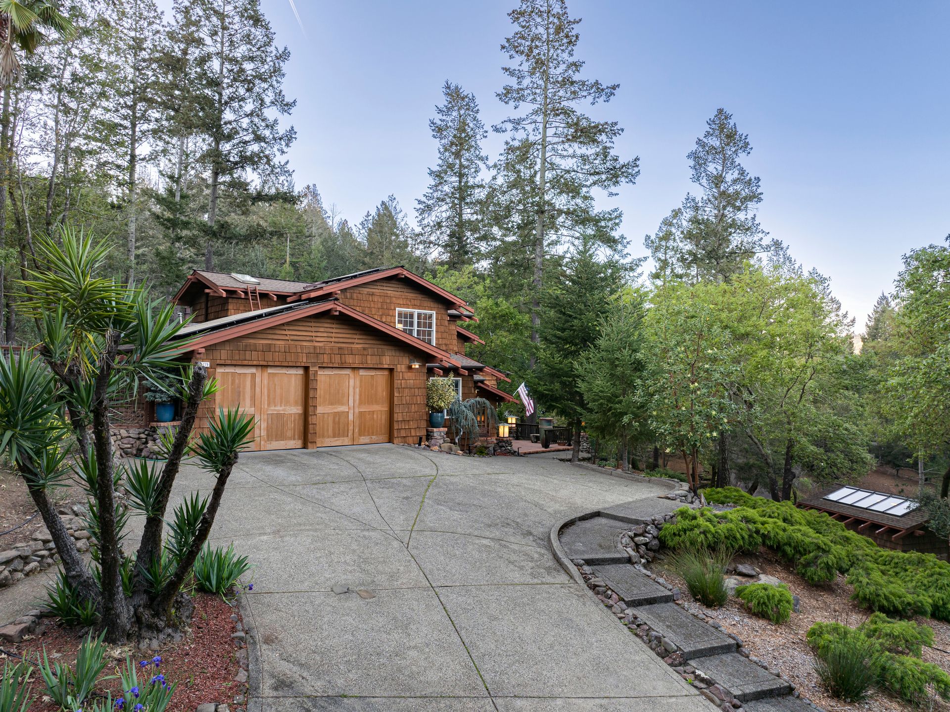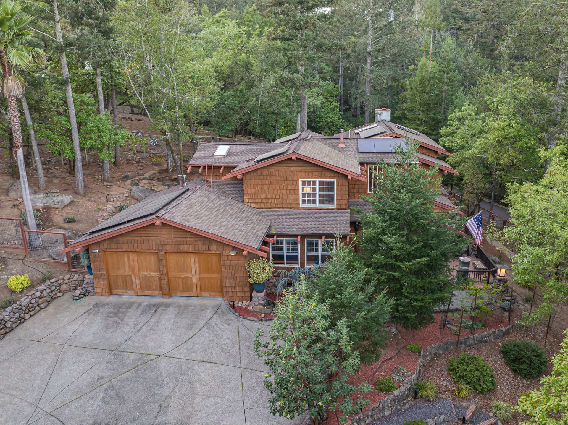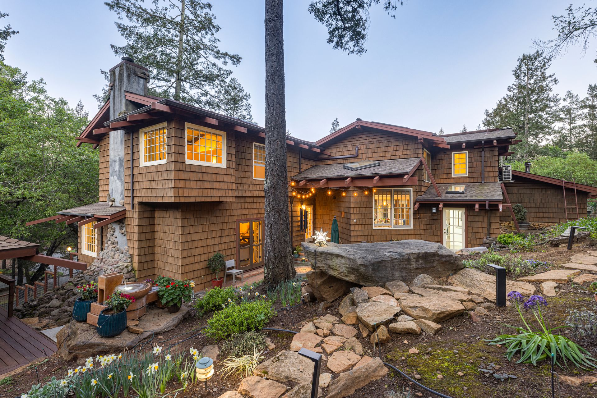 Nestled in Brush Creek’s Woodside Hills neighborhood, this timeless masterpiece is architecturally captivating and flooded w/natural light. Originally designed/built by a local architect, this home exudes quality craftsmanship and handsome woodwork w/custom themes. The artful interior is wrapped in peaceful surroundings w/3 bedrooms/3 full baths and 3,410 sq ft of living space. This stunning home includes a separate office cottage, renovated laundry room w/storage, high-end appliances, newer A/C/heating/owned solar system. Designed for entertaining, the inviting floor plan features a formal entry w/tile floor inlays that complement hardwood floors w/adjacent study/library. The renovated gourmet chef kitchen features high-end appliances: Thermador 6-burner gas cooktop w/stunning Italian Bertazzoni hood, custom cabinets w/soft pulls, two upper cabinets featuring glass w/copper inlays, wine cooler, Quartz counters, island w/storage drawers w/wood columns and bar seating. Complementing this impressive design is a wood-burning HearthStone stove w/brick tile floors, oversized windows above the sink w/pendant lighting and picturesque views of the forest-like backyard. Adjacent to the kitchen is a living area for relaxation w/built-in cabinets. The gorgeous living room features a tile-surround fireplace, concrete flooring, beautiful accent tiles and built-in cabinets lend a sense of elegance and comfort. French doors in the living room open to a balcony and give access to the back patio/garden. The mature landscape features irrigation, citrus trees, deer fences, stone/slate walkways w/lighting, fountain and 20’x20’ pergola w/hot tub. Enjoy outdoor entertainment in the tranquil park-like setting offered by this once-in-a-lifetime legacy property. This artfully crafted home is conveniently located near Oliver’s Market, Montgomery Village shopping, parks and schools. Enjoy the relaxing lifestyle and natural beauty that a stunning Sonoma County wine country residence provides!